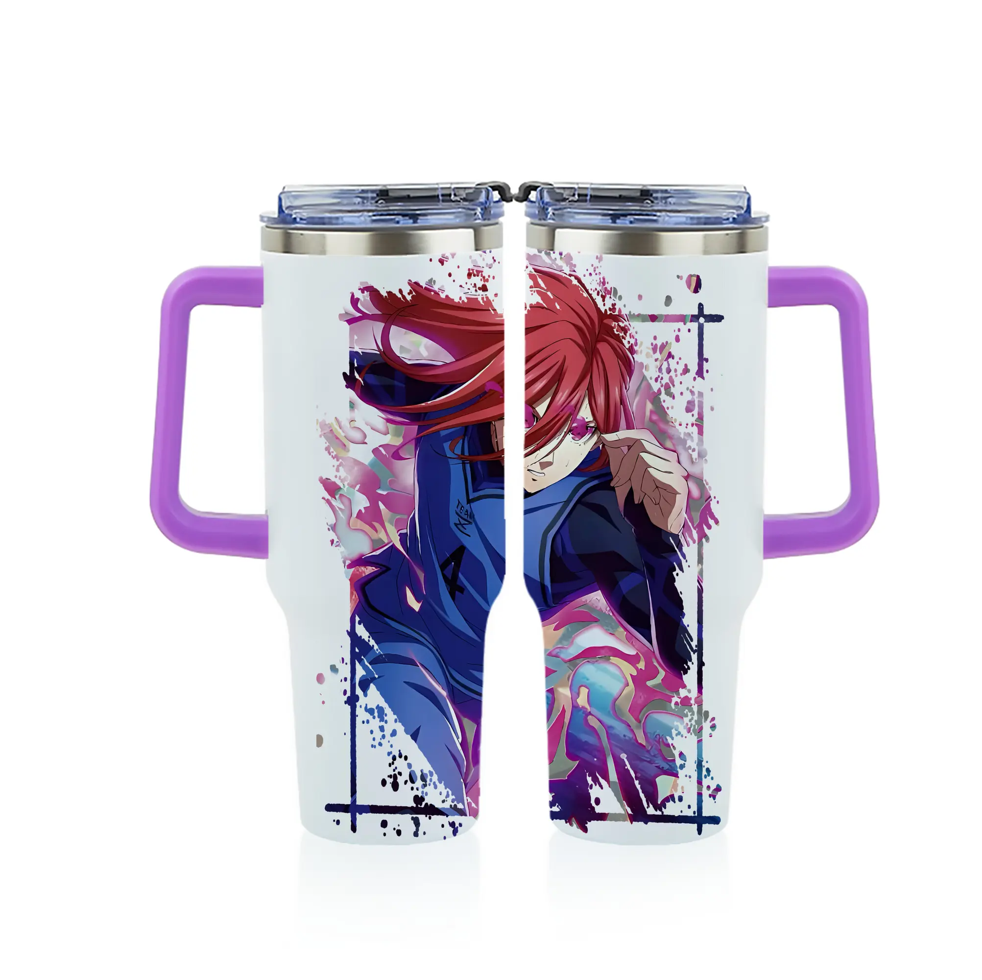 ブルーロック グッズ 千切 豹馬 - 1200mL フルプリント車用タンブラー ・ 304ステンレス 内側 ・ 201ステンレス 外側 ・ 保温 保冷 ・ 通勤 ドライブ アウトドア用