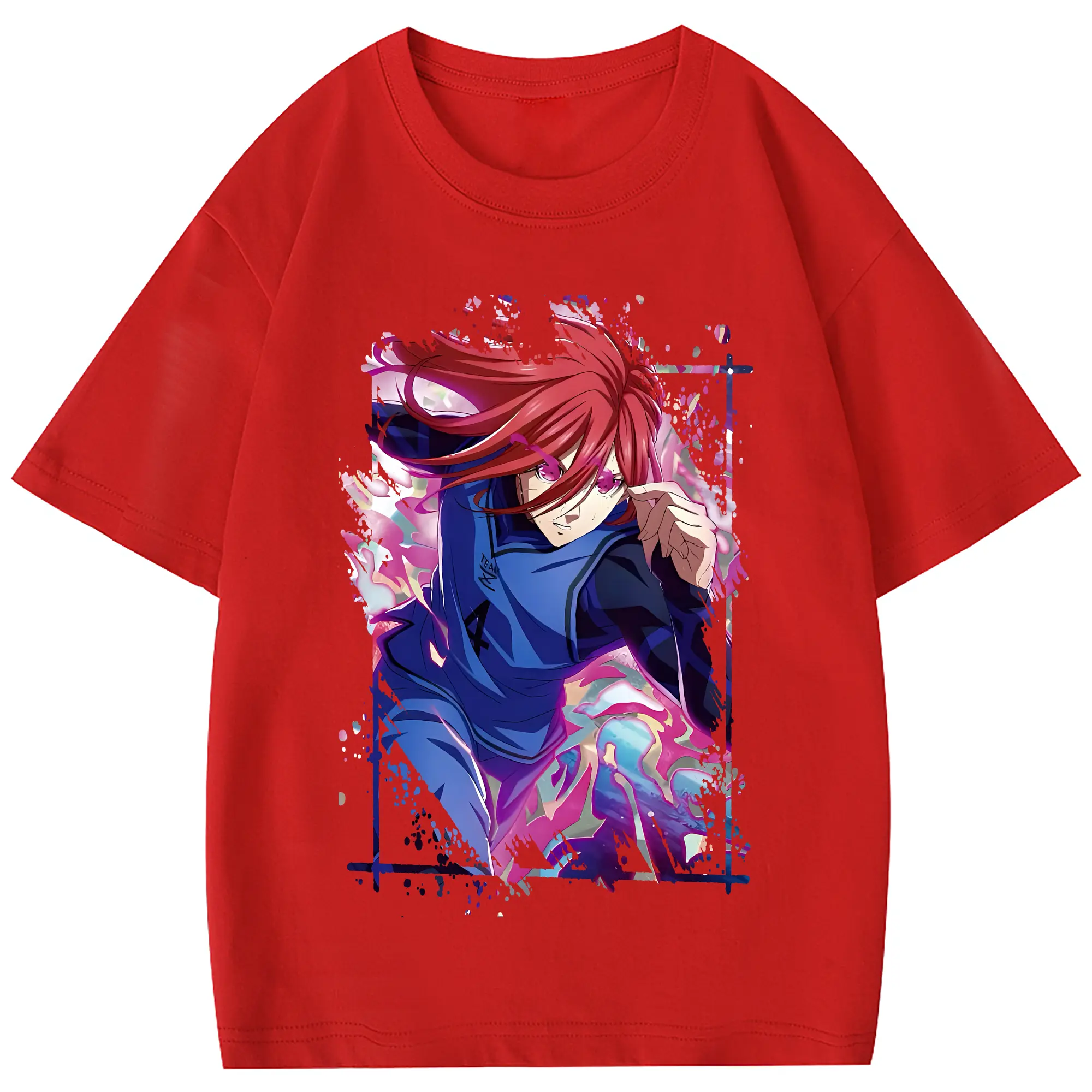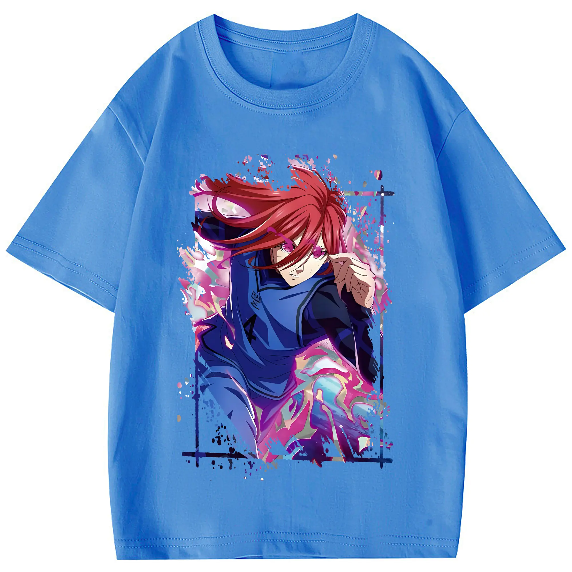 ブルーロック グッズ 千切 豹馬 - 綿100% 半袖Tシャツ ・ フロントプリント ・ 快適 通気性 ・ 日常使い 散歩 スポーツ用