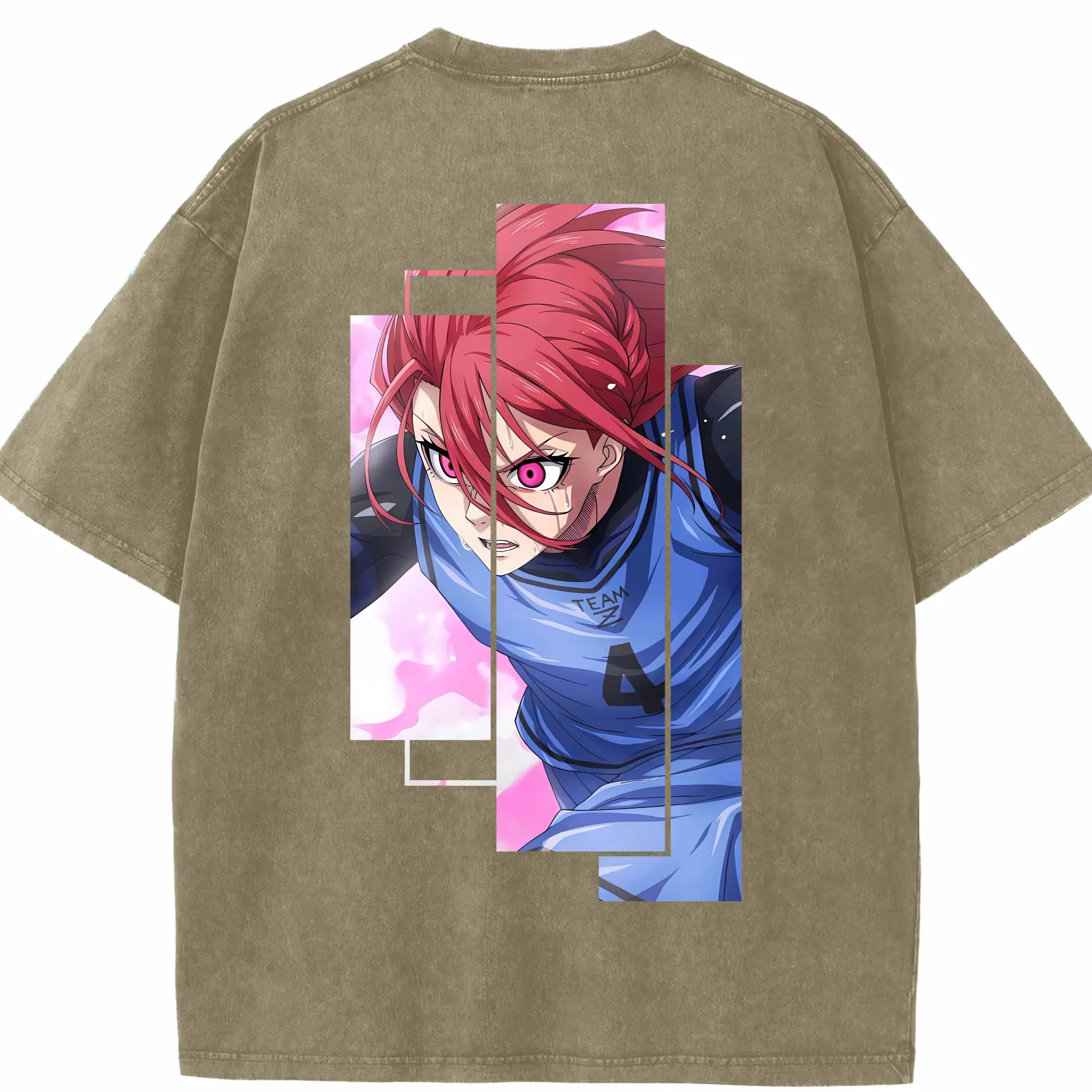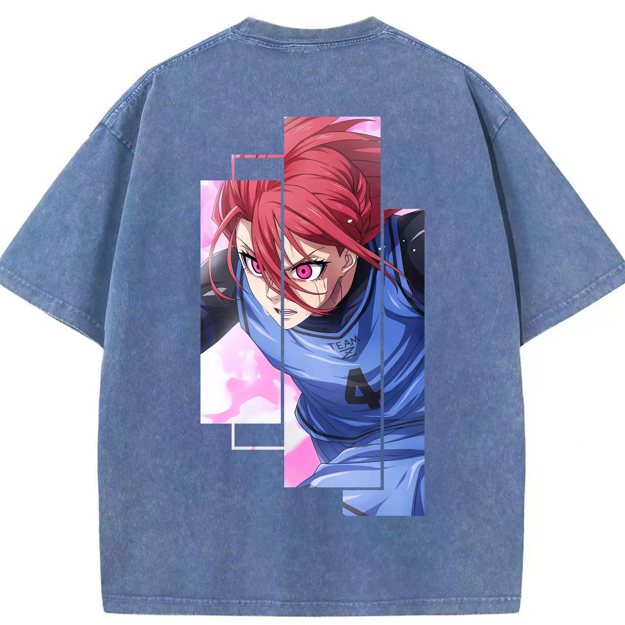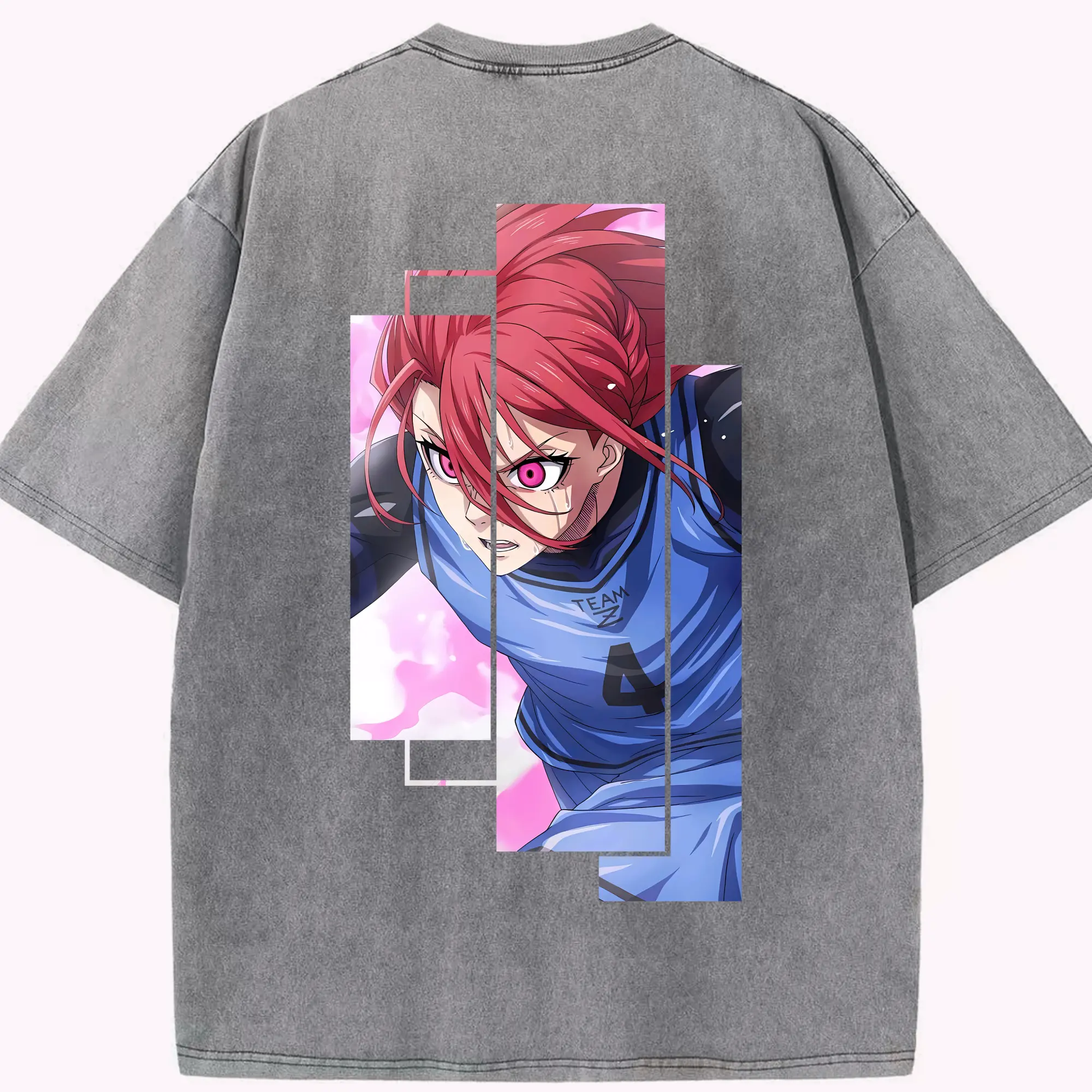 ブルーロック グッズ 千切 豹馬 - 綿100% ヴィンテージ風 半袖Tシャツ ・ フロントプリント ・ 柔らか肌触り ・ 通気性 快適 ・ スポーツ カジュアル 外出用