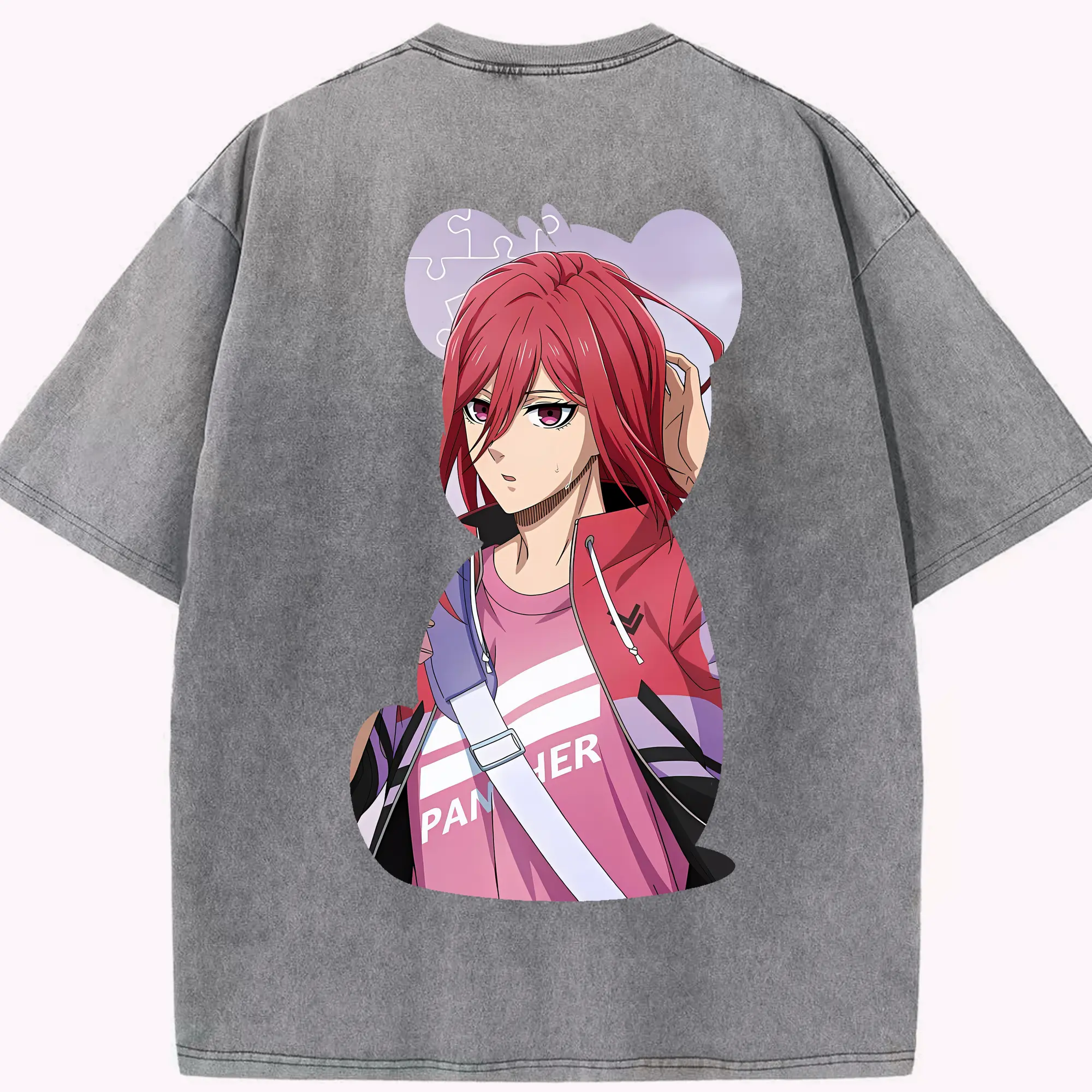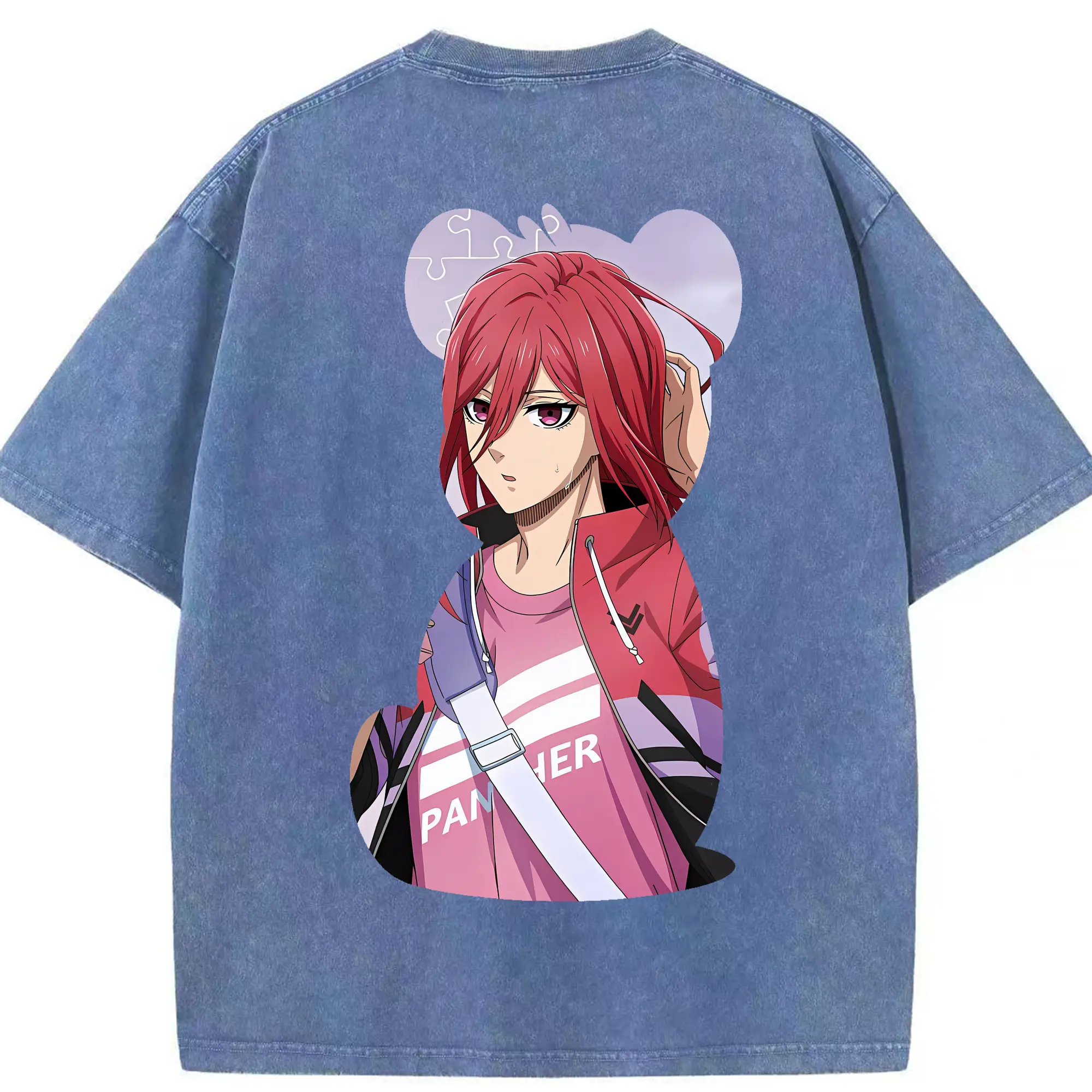 ブルーロック グッズ 千切 豹馬 - 綿100% ヴィンテージ風 半袖Tシャツ ・ フロントプリント ・ 柔らか肌触り ・ 通気性 快適 ・ スポーツ カジュアル 外出用