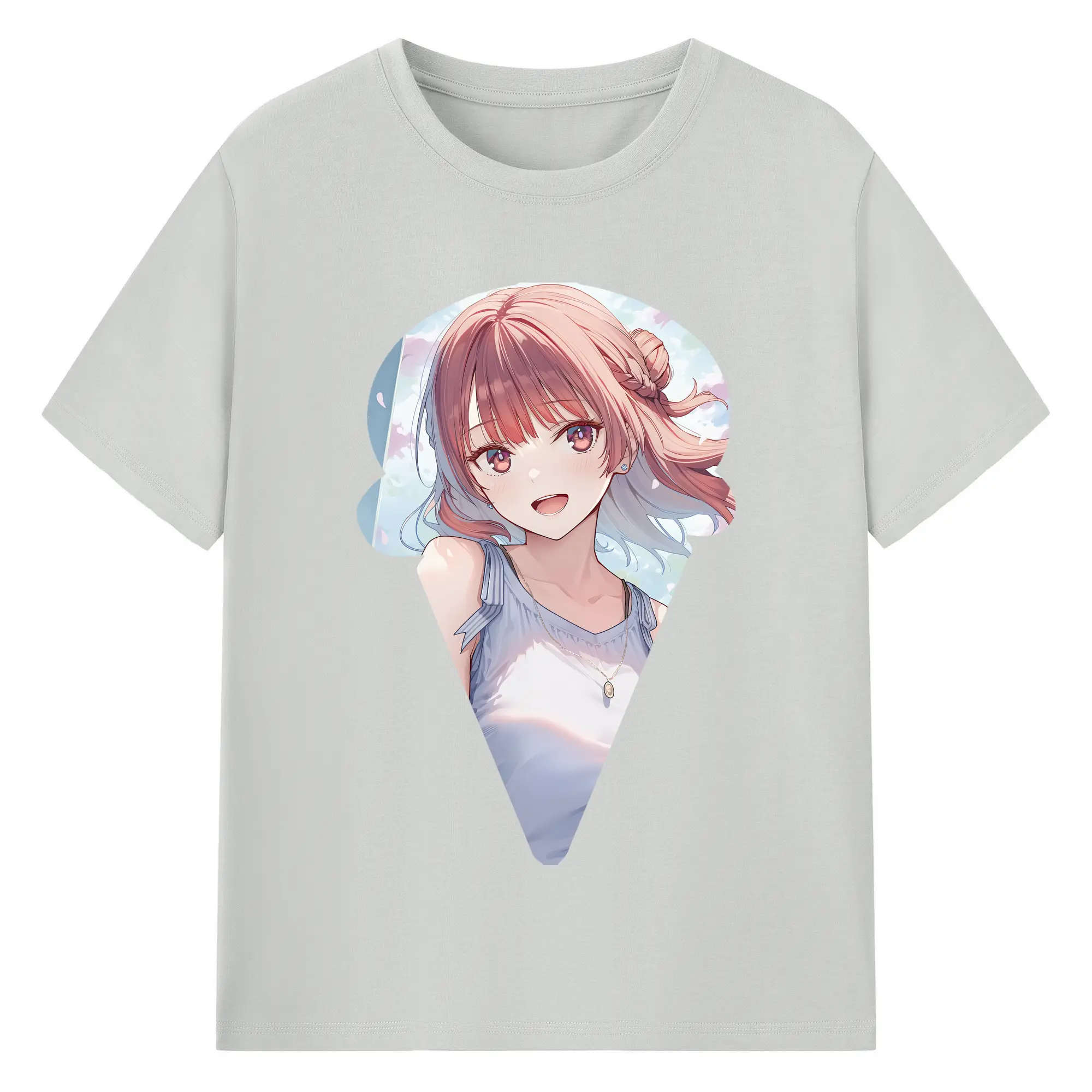 崩壊:スターレイル グッズ 白露 - 綿100% 半袖Tシャツ ・ フロントプリント ・ 快適 通気性 ・ 日常使い 散歩 スポーツ用
