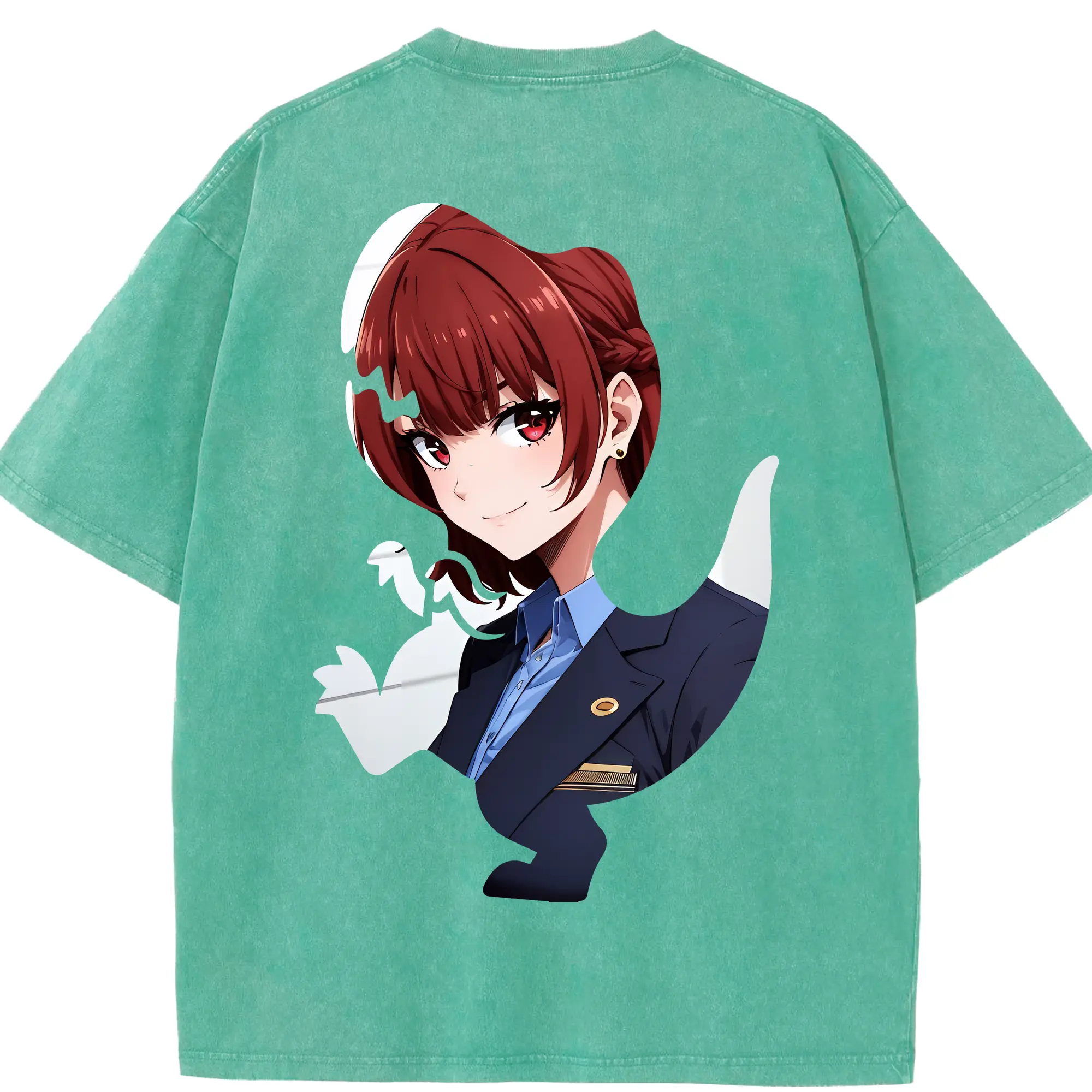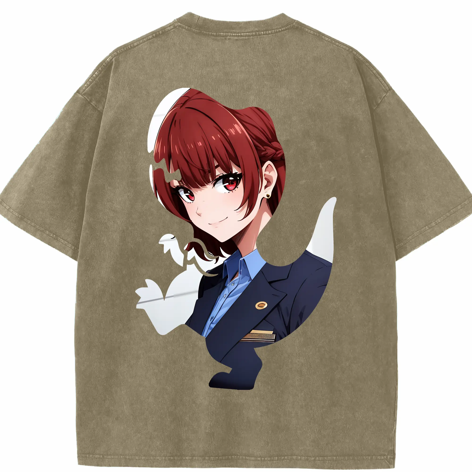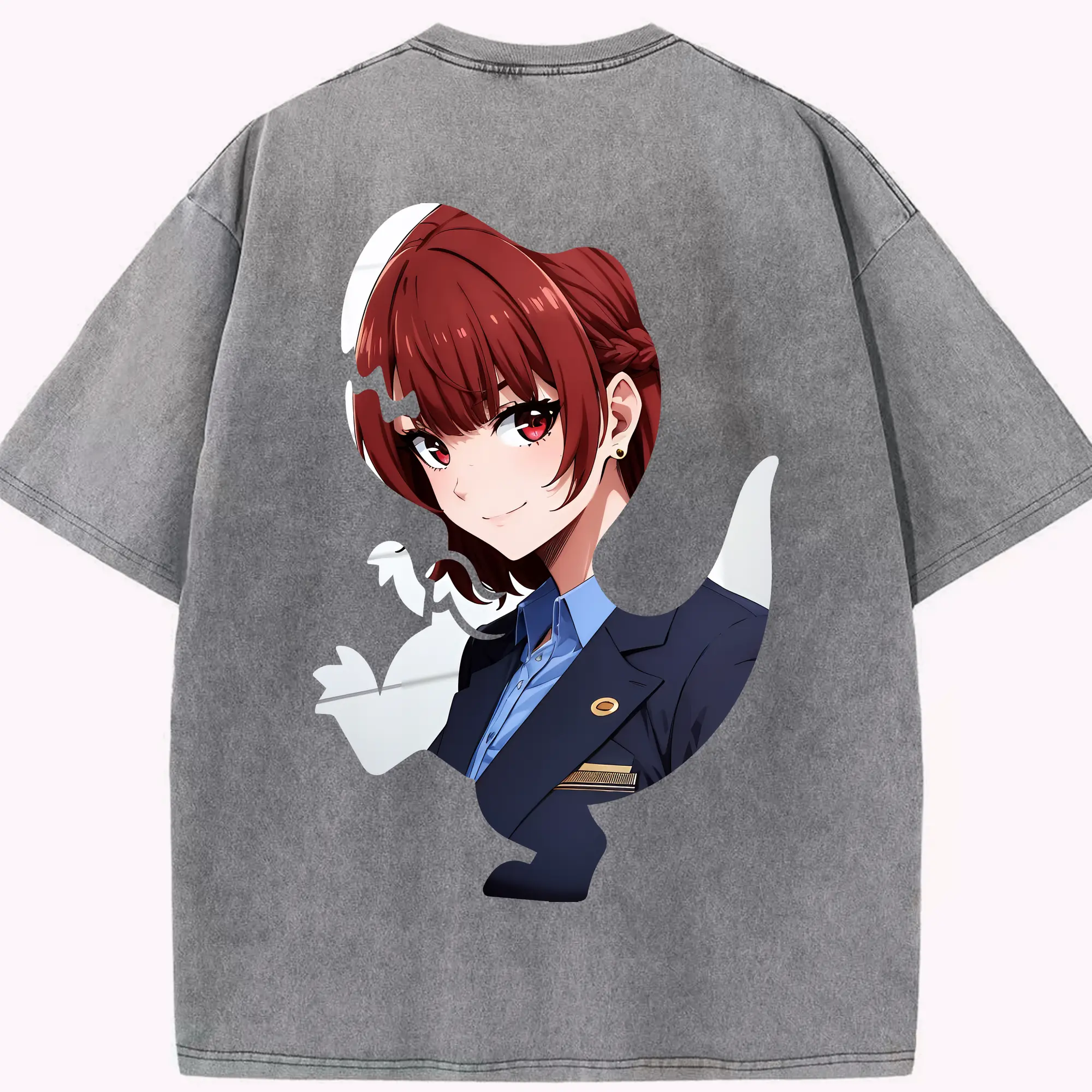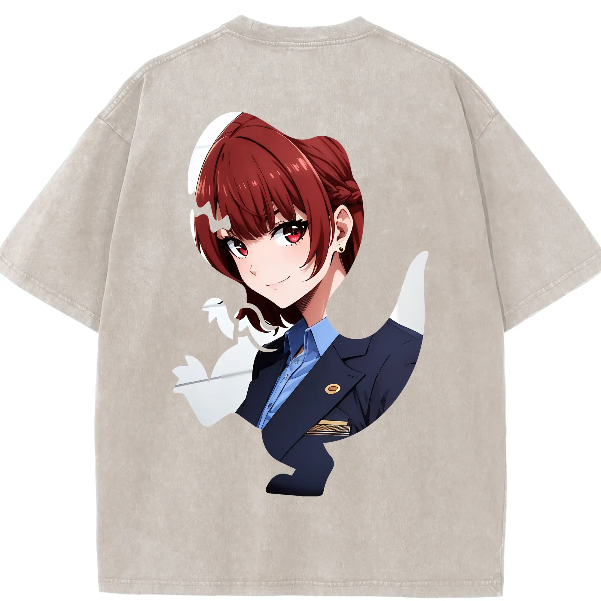 怪獣8号 グッズ,亜白ミナ - 綿100% ヴィンテージ風 半袖Tシャツ ・ 背面プリント ・ 柔らか肌触り ・ 通気性 快適 ・ スポーツ カジュアル 外出用