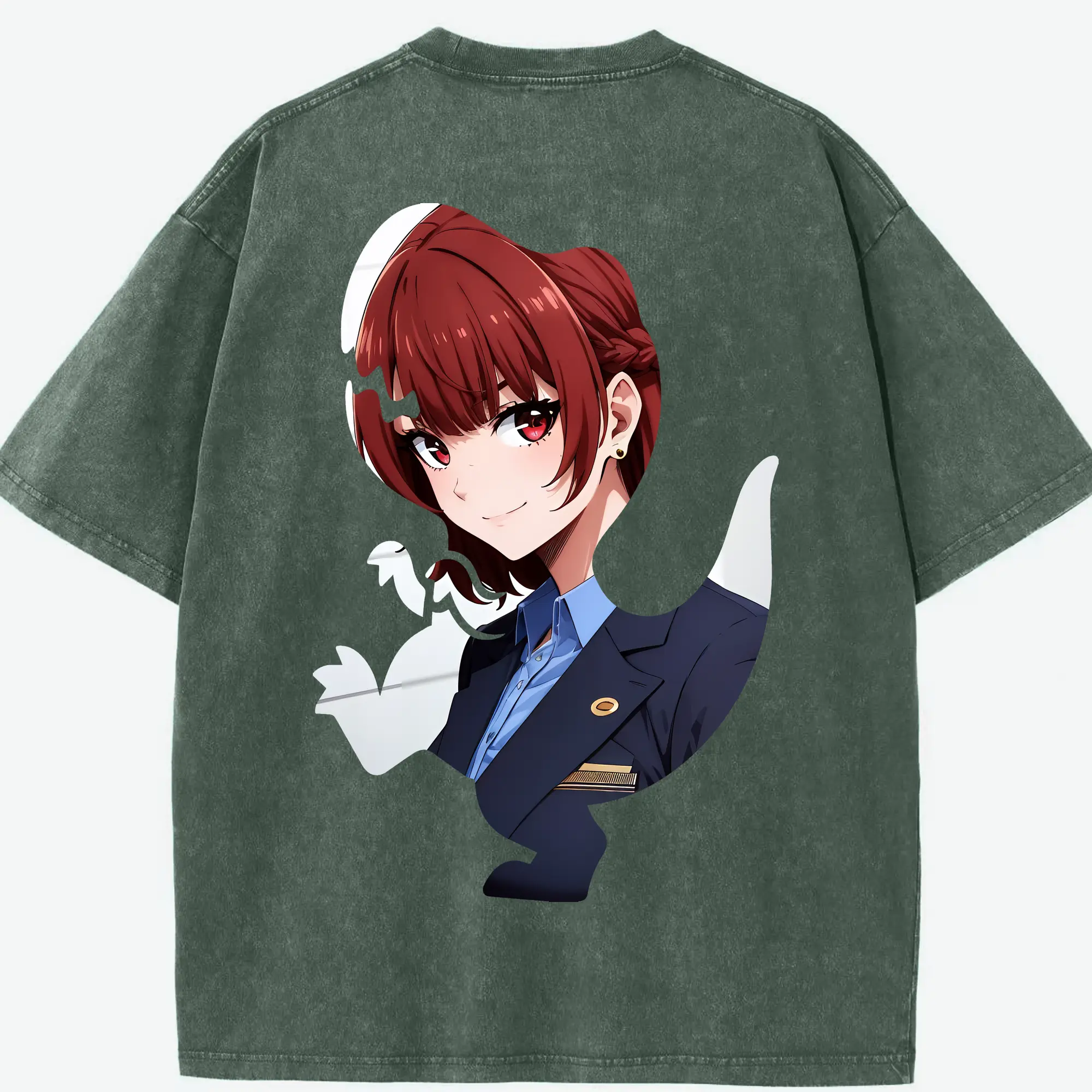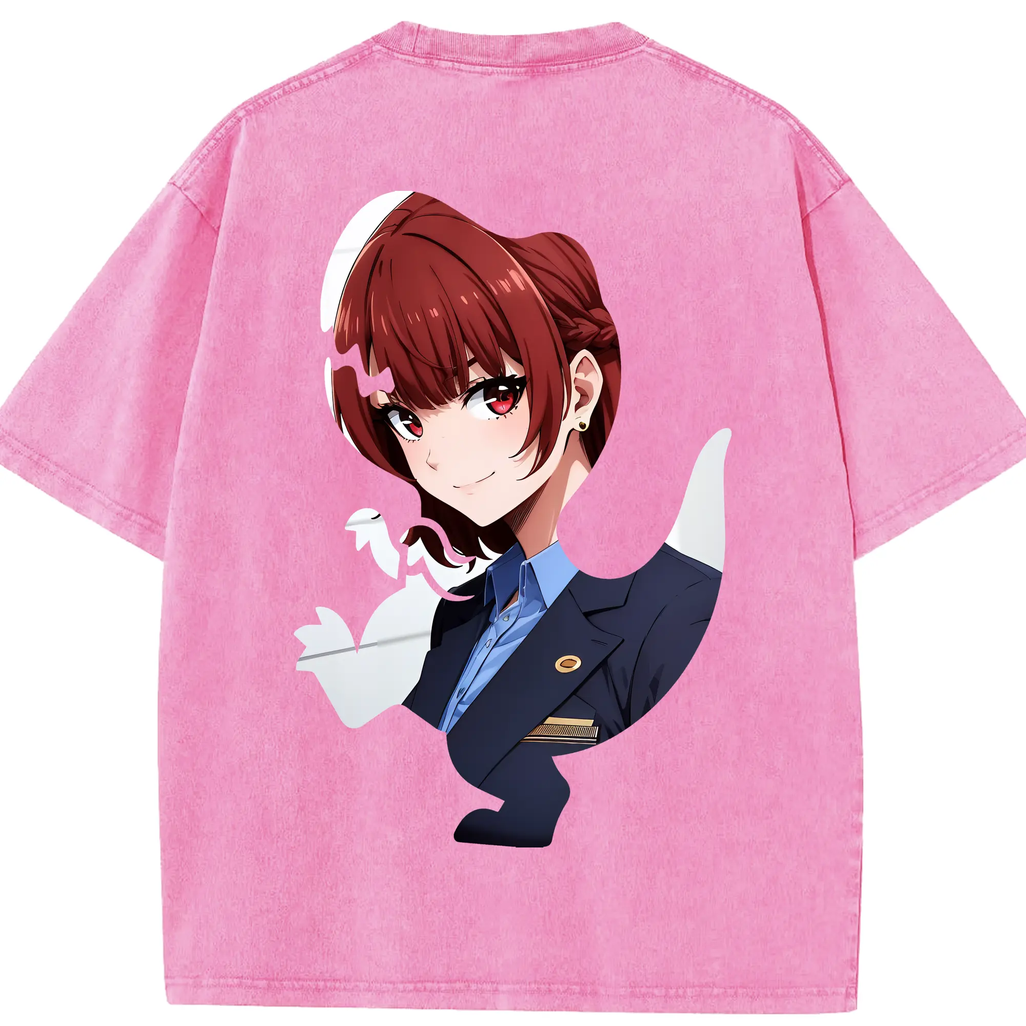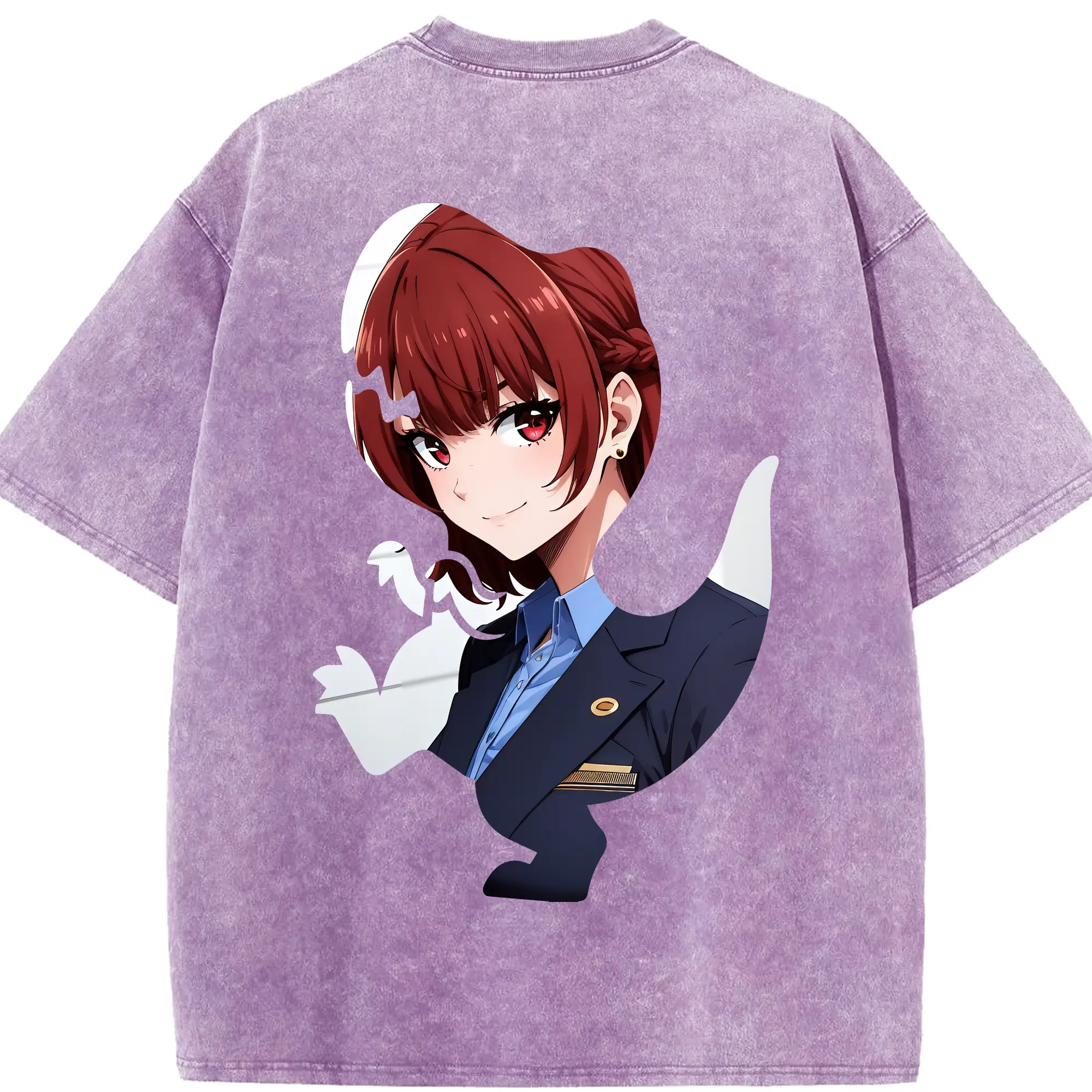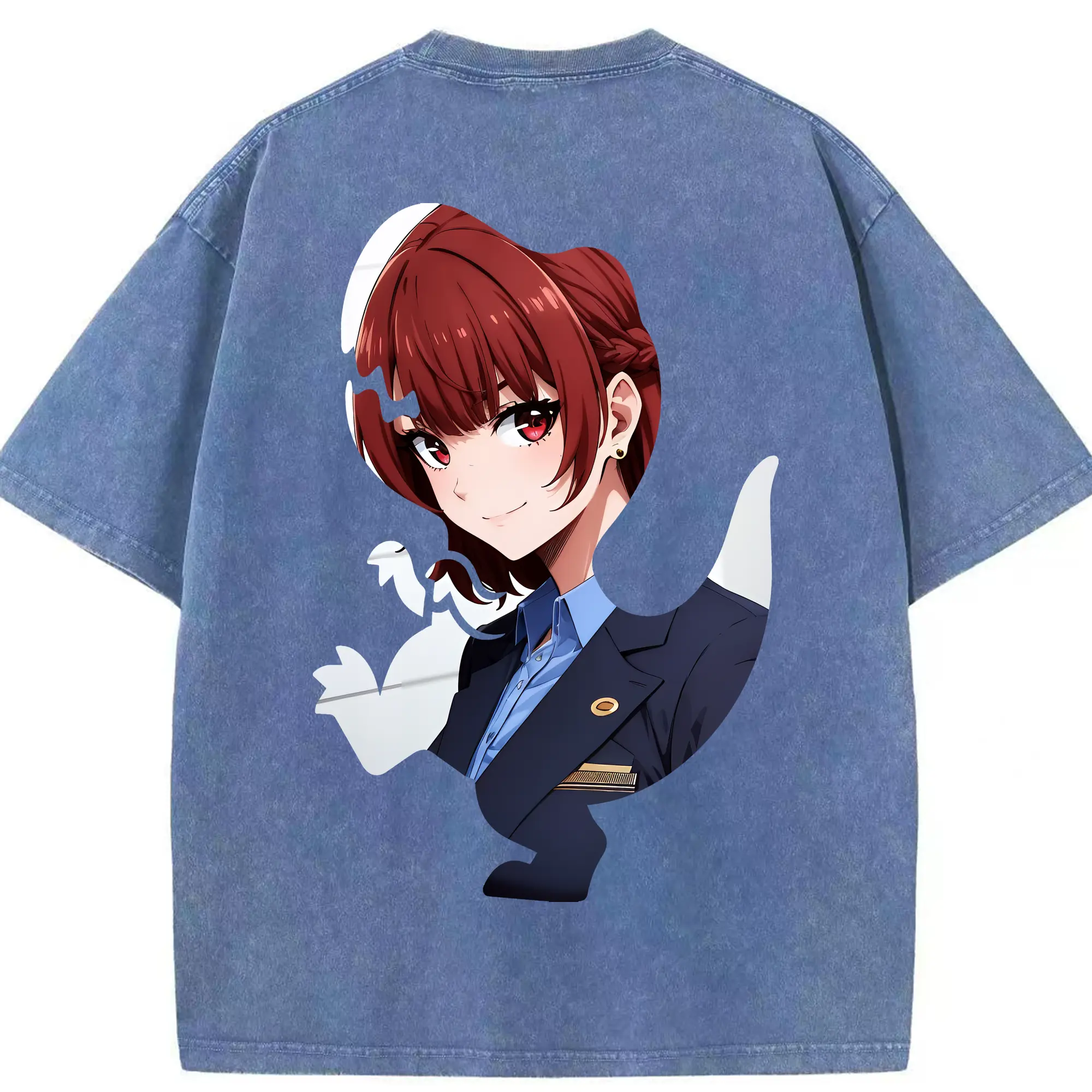 怪獣8号 グッズ,亜白ミナ - 綿100% ヴィンテージ風 半袖Tシャツ ・ 背面プリント ・ 柔らか肌触り ・ 通気性 快適 ・ スポーツ カジュアル 外出用