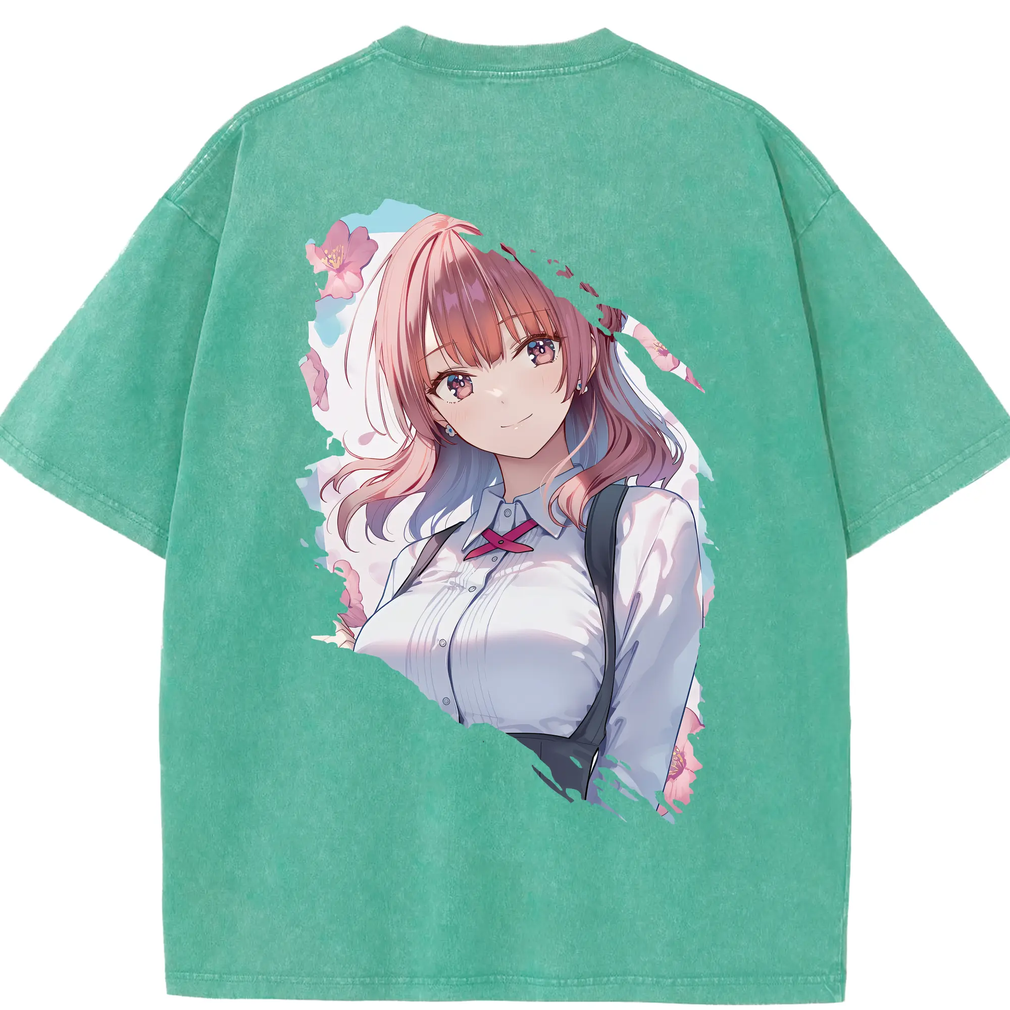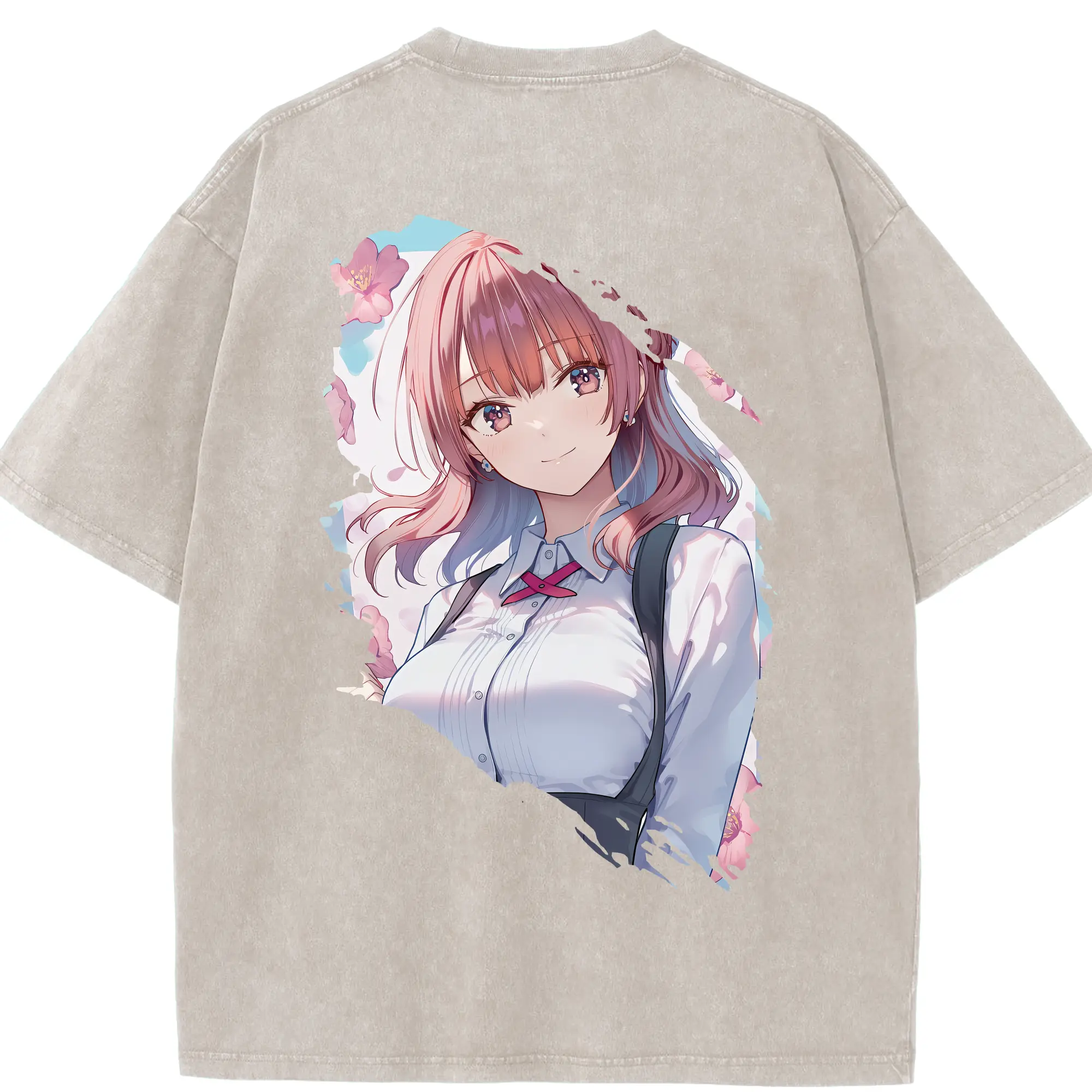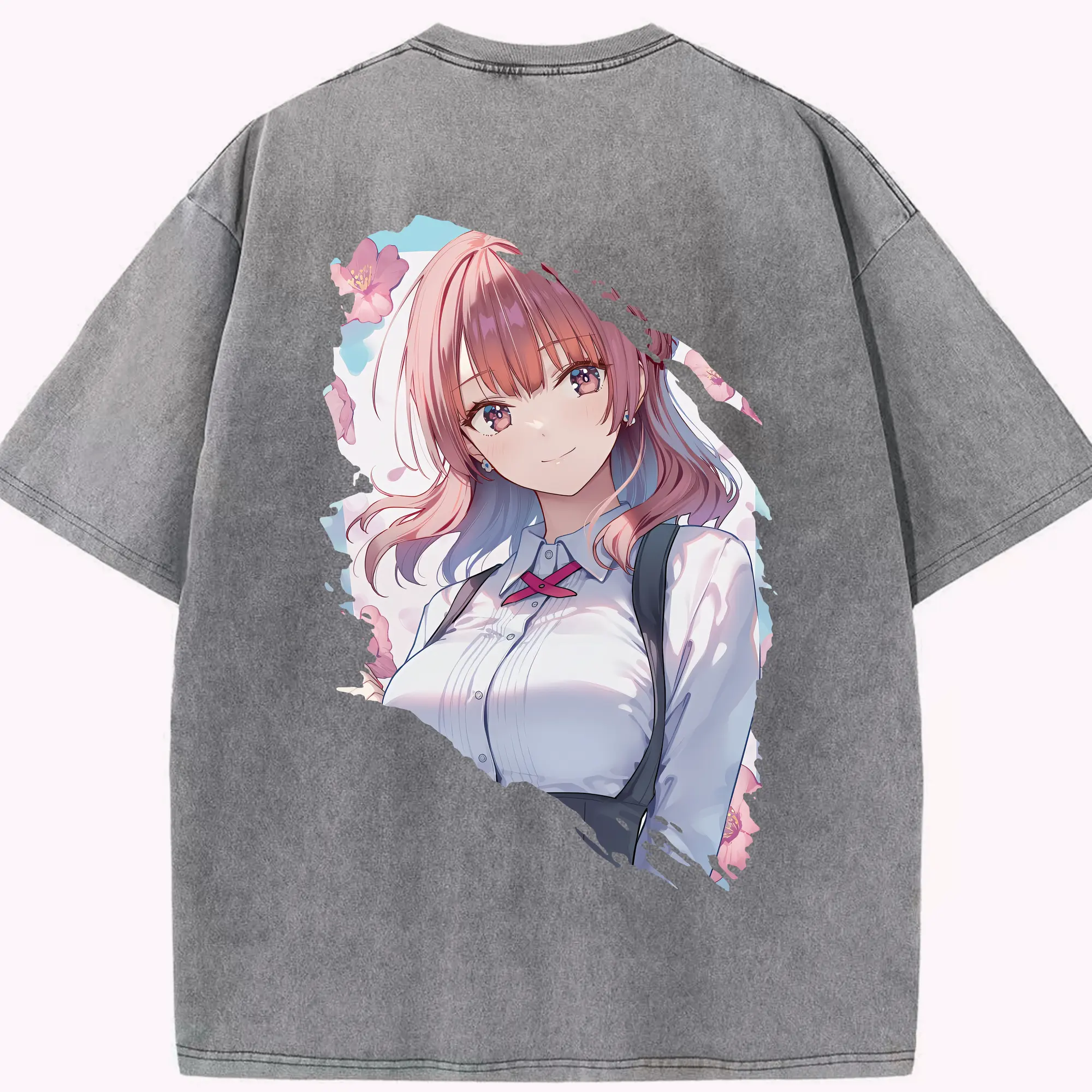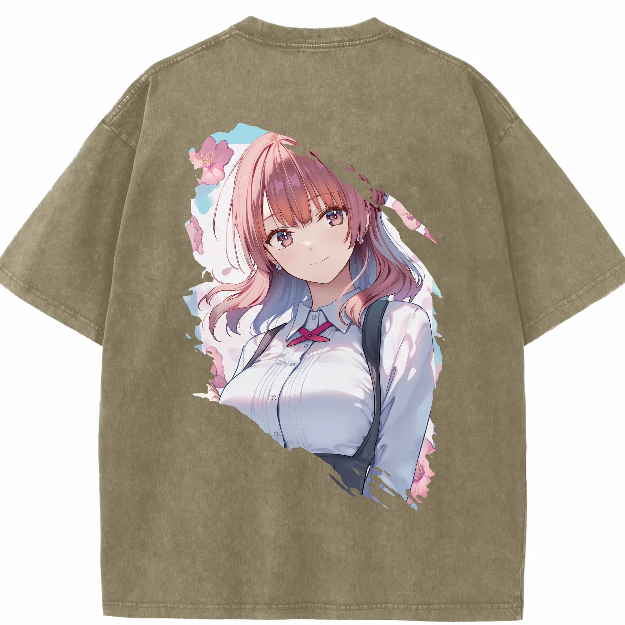 ナルト グッズ 綱手 - 綿100% ヴィンテージ風 半袖Tシャツ ・ 背面プリント ・ 柔らか肌触り ・ 通気性 快適 ・ スポーツ カジュアル 外出用