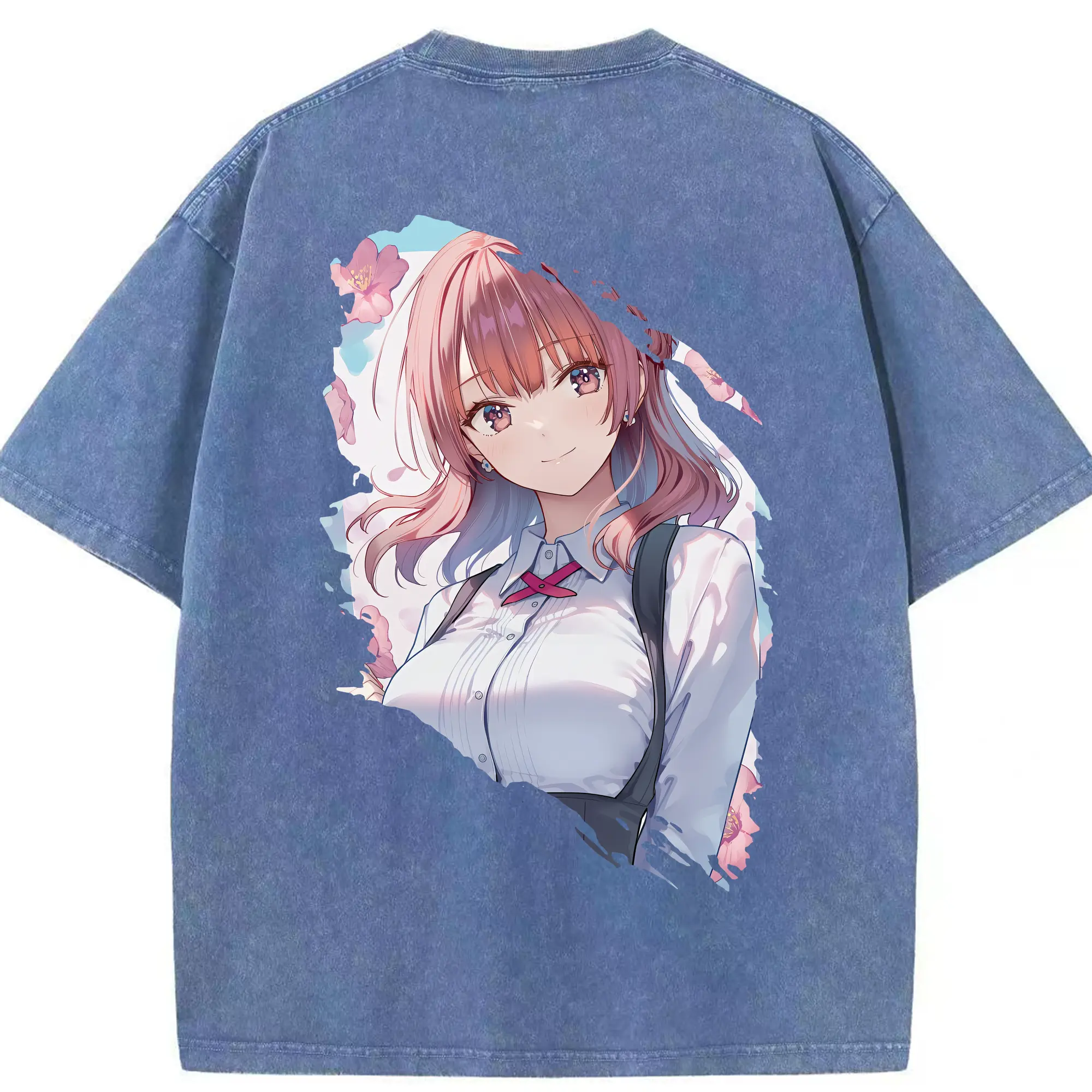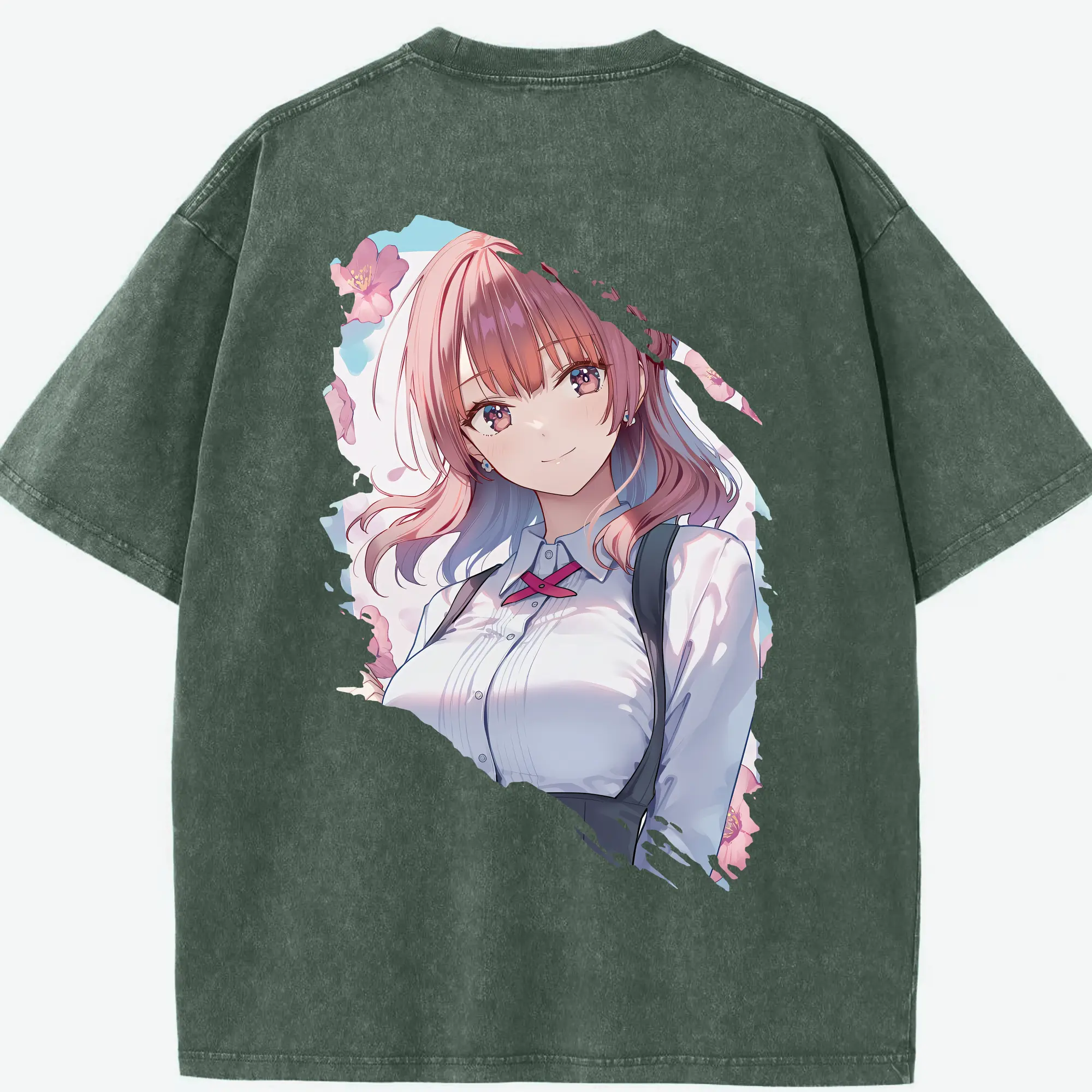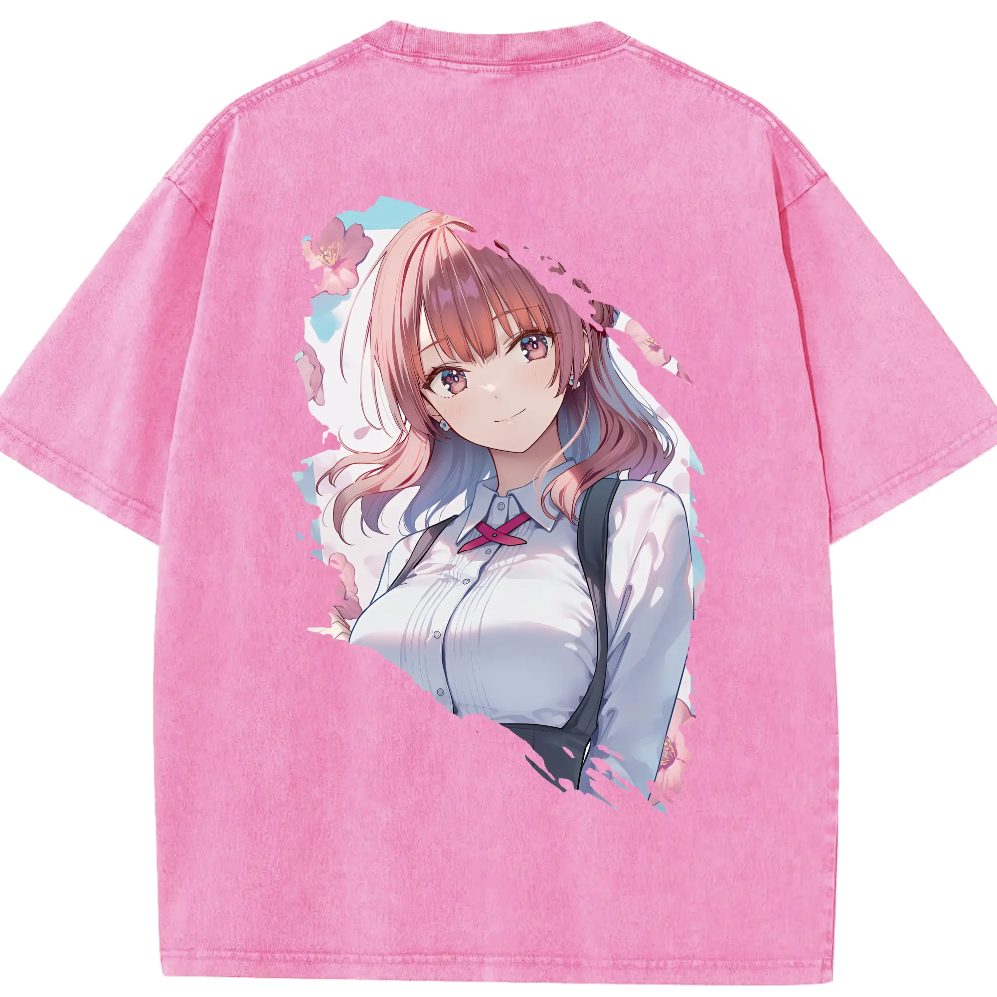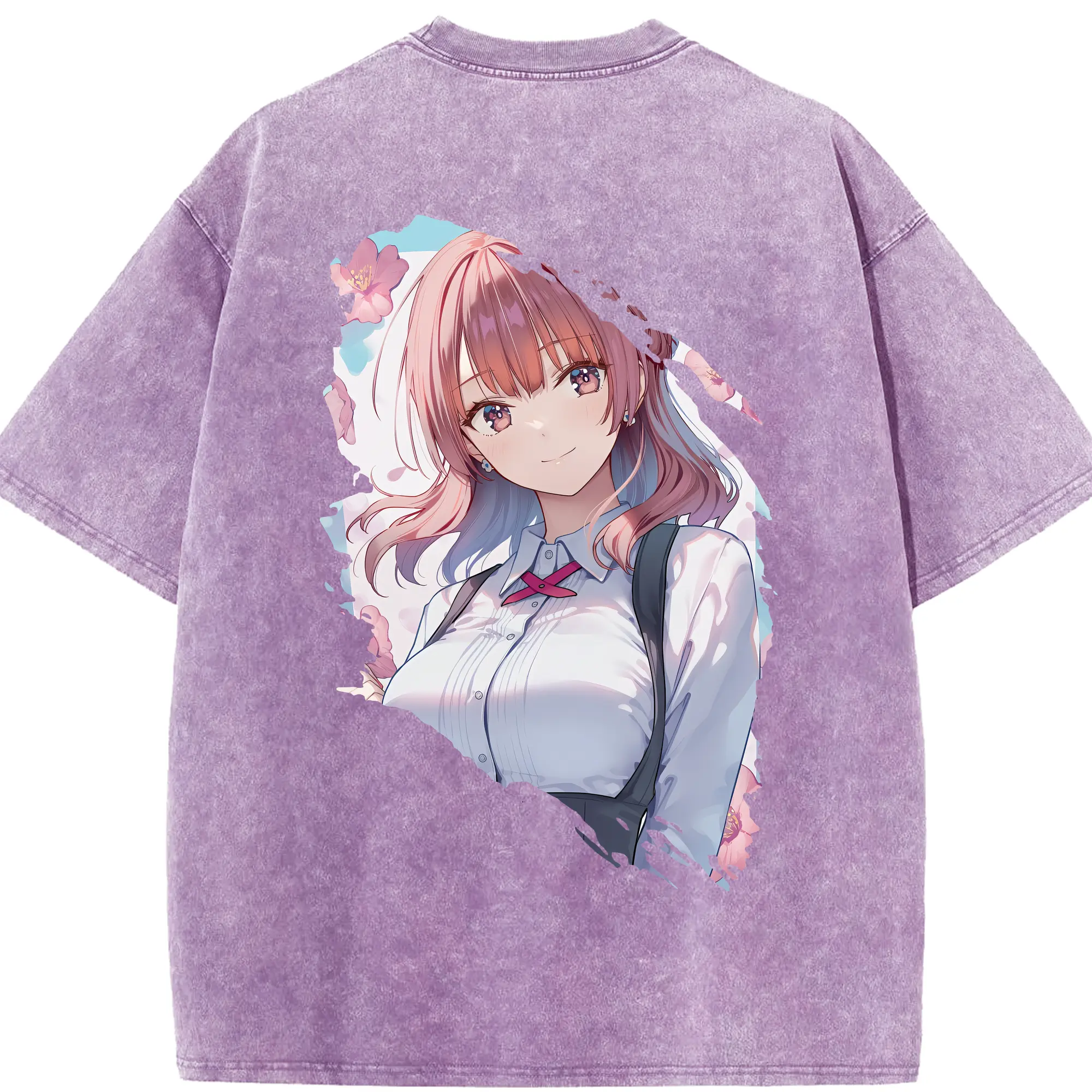 ナルト グッズ 綱手 - 綿100% ヴィンテージ風 半袖Tシャツ ・ 背面プリント ・ 柔らか肌触り ・ 通気性 快適 ・ スポーツ カジュアル 外出用
