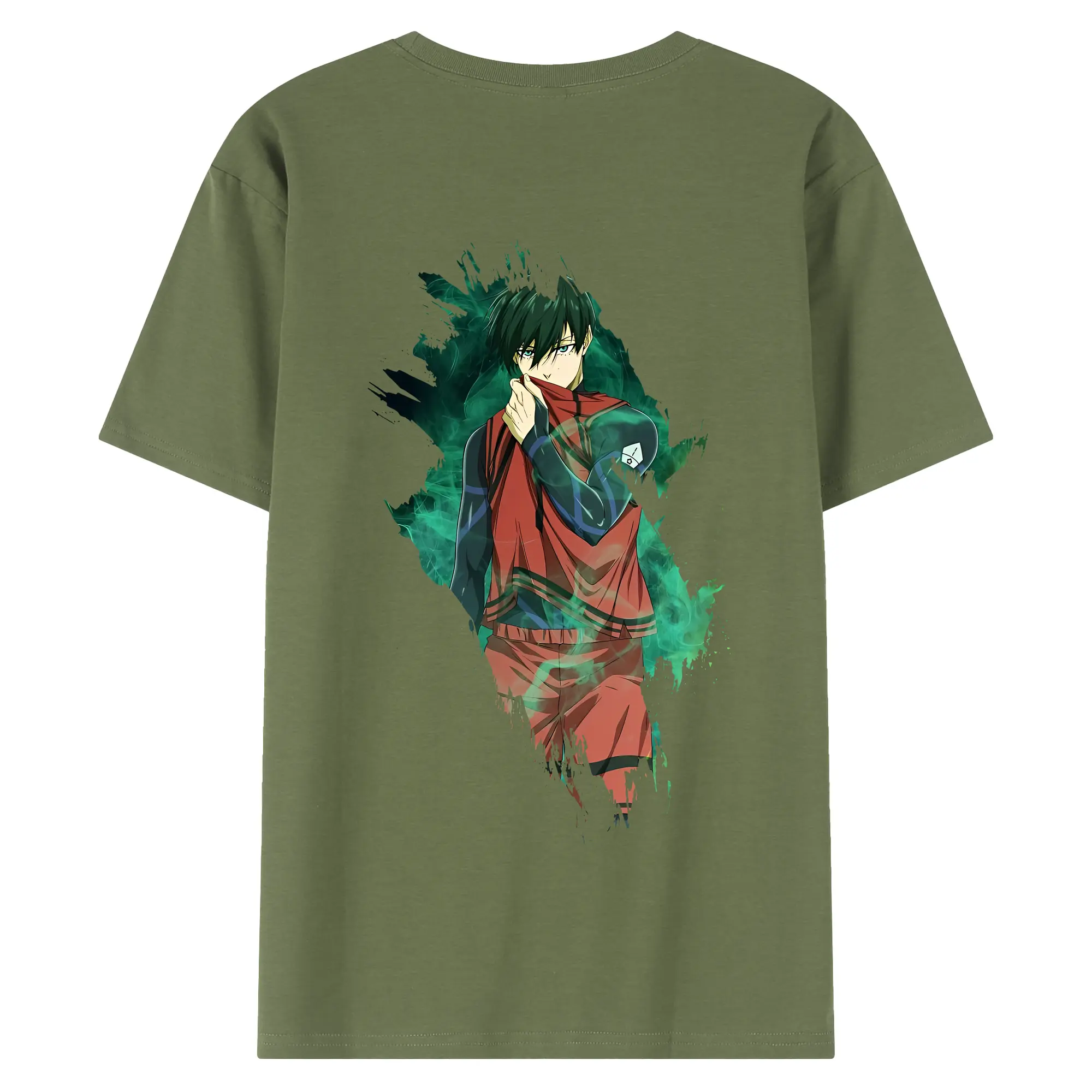 ブルーロック グッズ 糸師凛 - 綿100% ヴィンテージ風 半袖Tシャツ ・ 背面プリント ・ 柔らか肌触り ・ 通気性 快適 ・ スポーツ カジュアル 外出用
