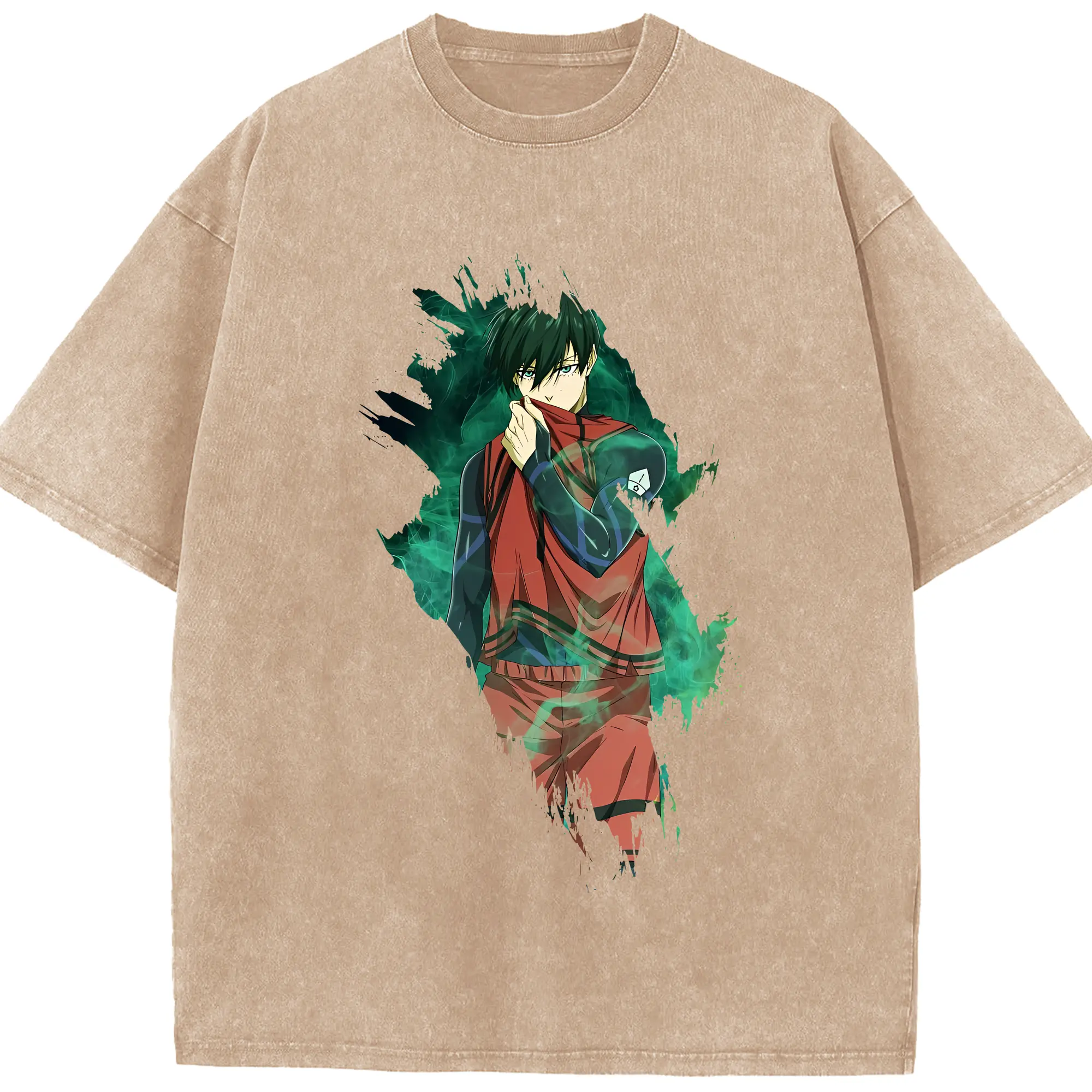 ブルーロック グッズ 糸師凛 - 綿100% ヴィンテージ風 半袖Tシャツ ・ 背面プリント ・ 柔らか肌触り ・ 通気性 快適 ・ スポーツ カジュアル 外出用
