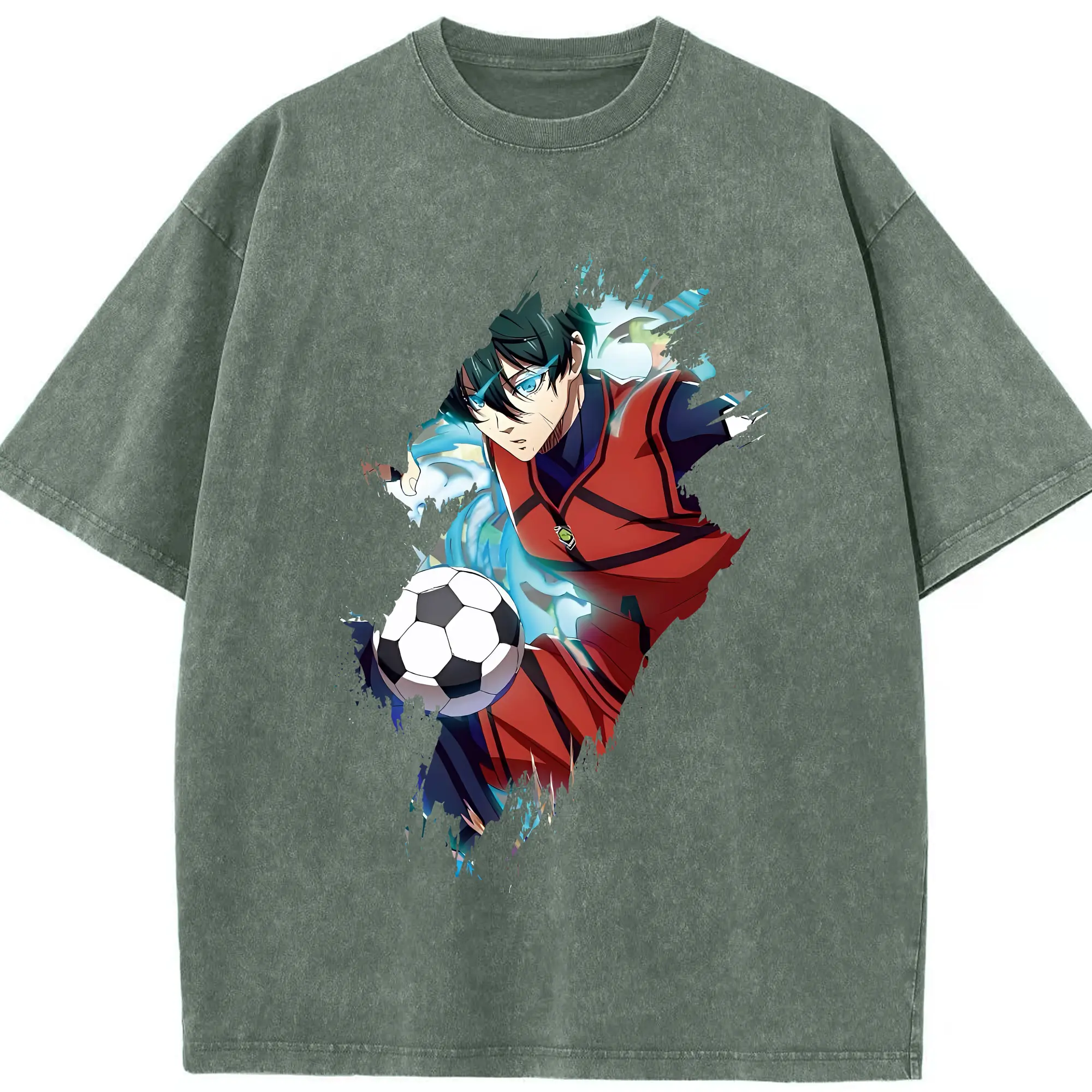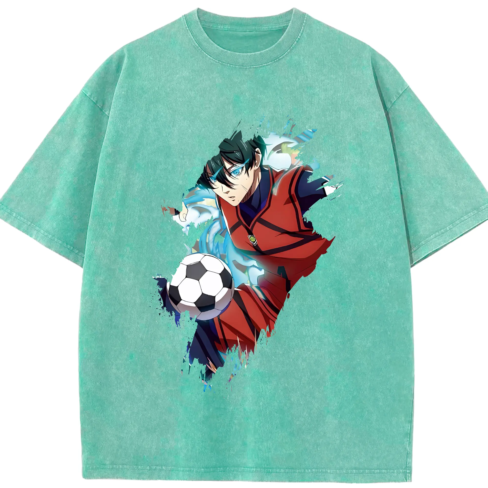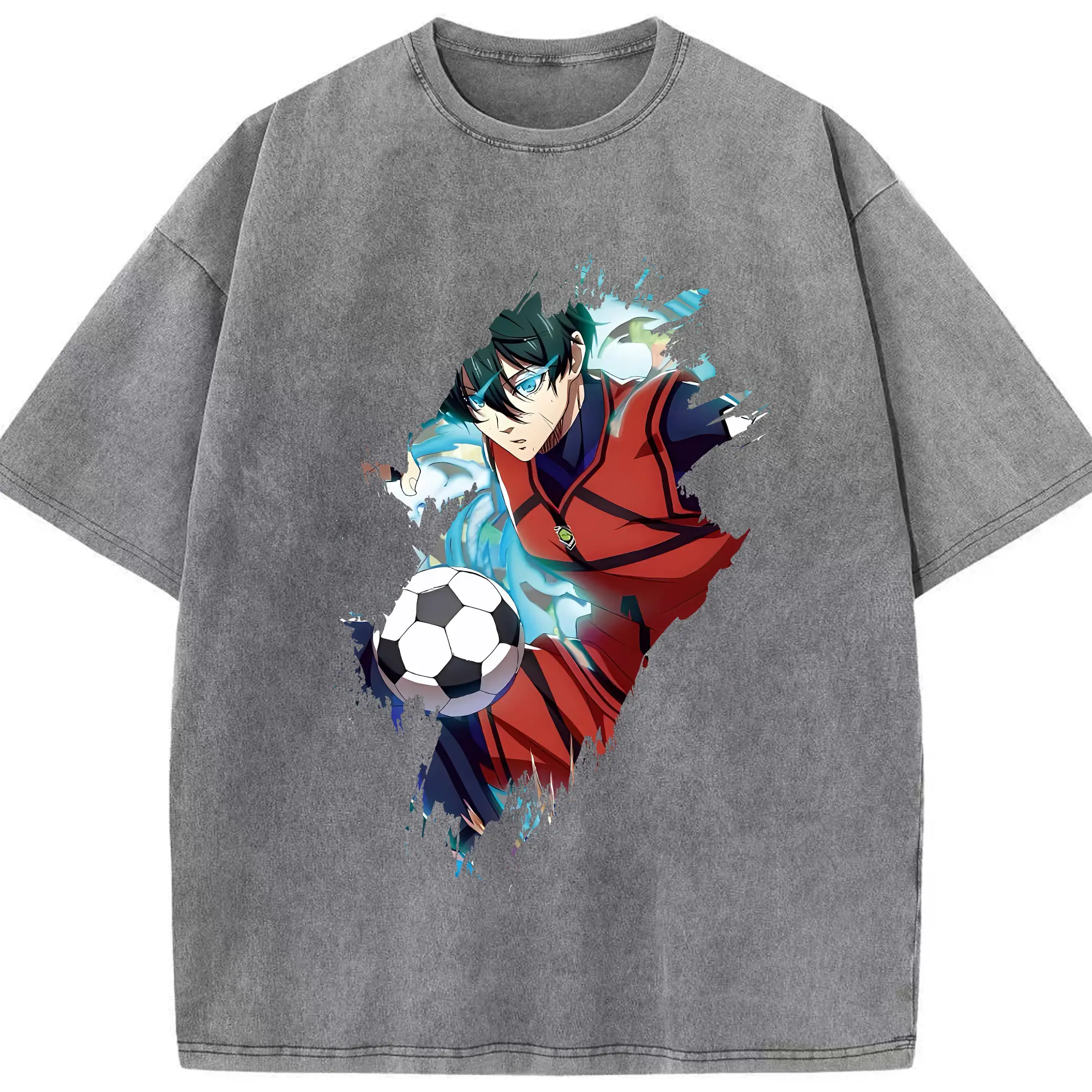 ブルーロック グッズ 糸師凛 - 綿100% ヴィンテージ風 半袖Tシャツ ・ 背面プリント ・ 柔らか肌触り ・ 通気性 快適 ・ スポーツ カジュアル 外出用