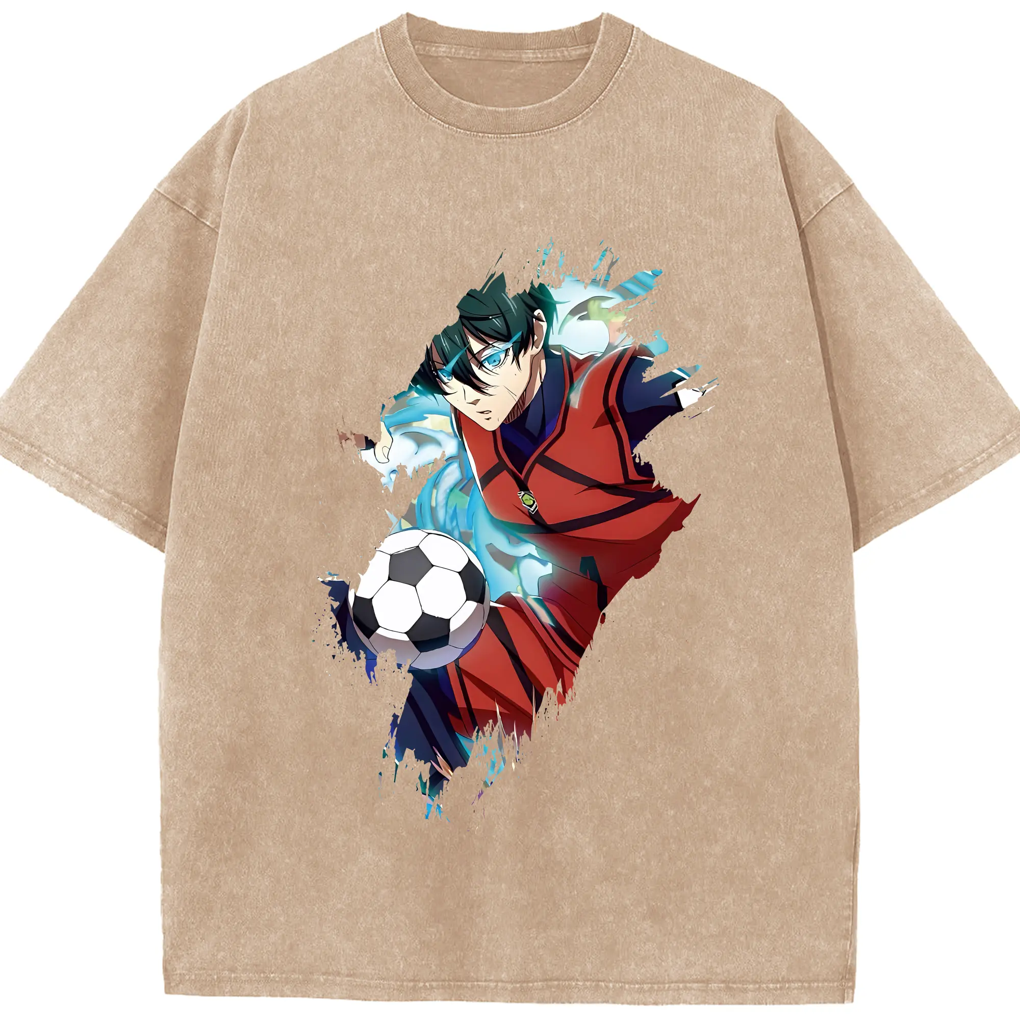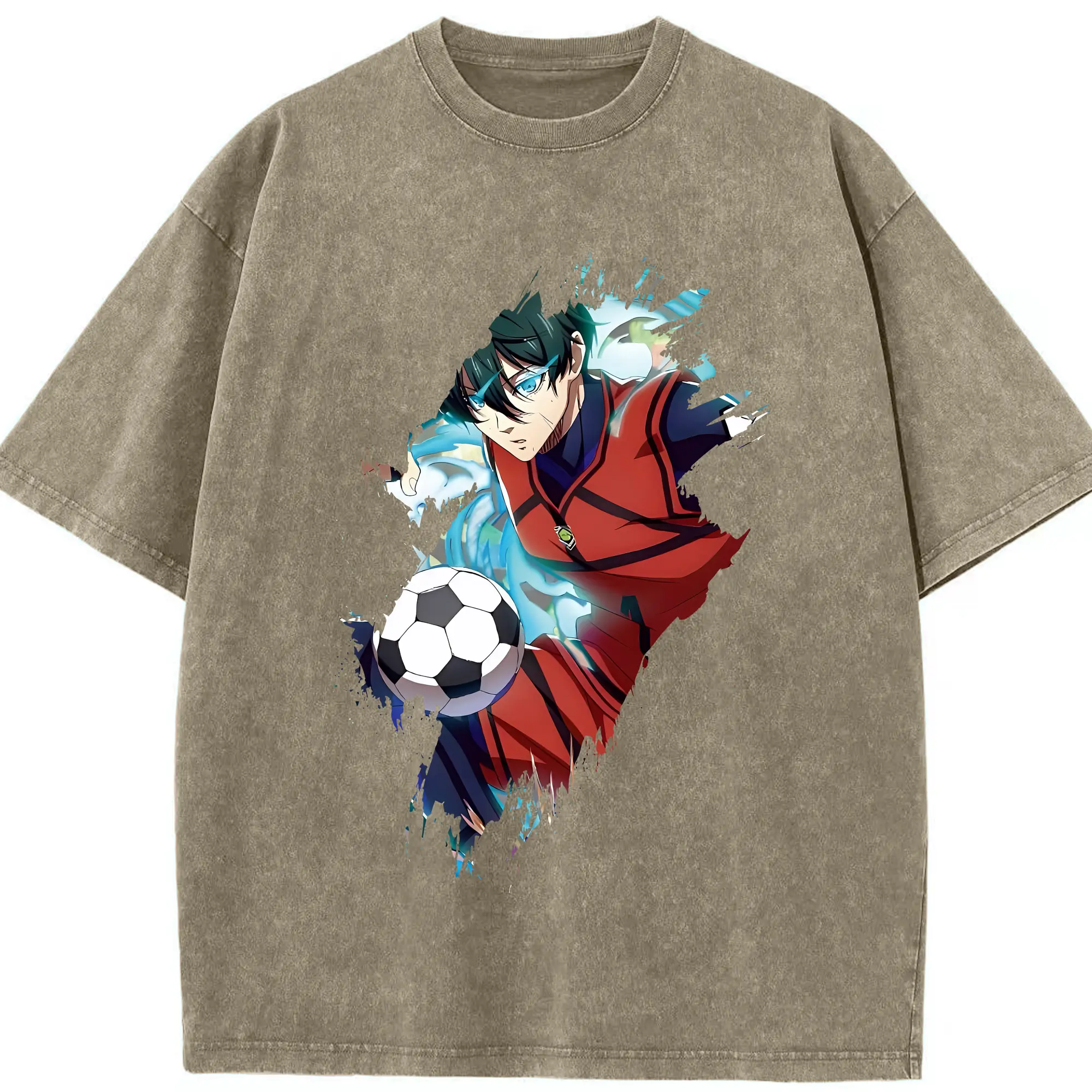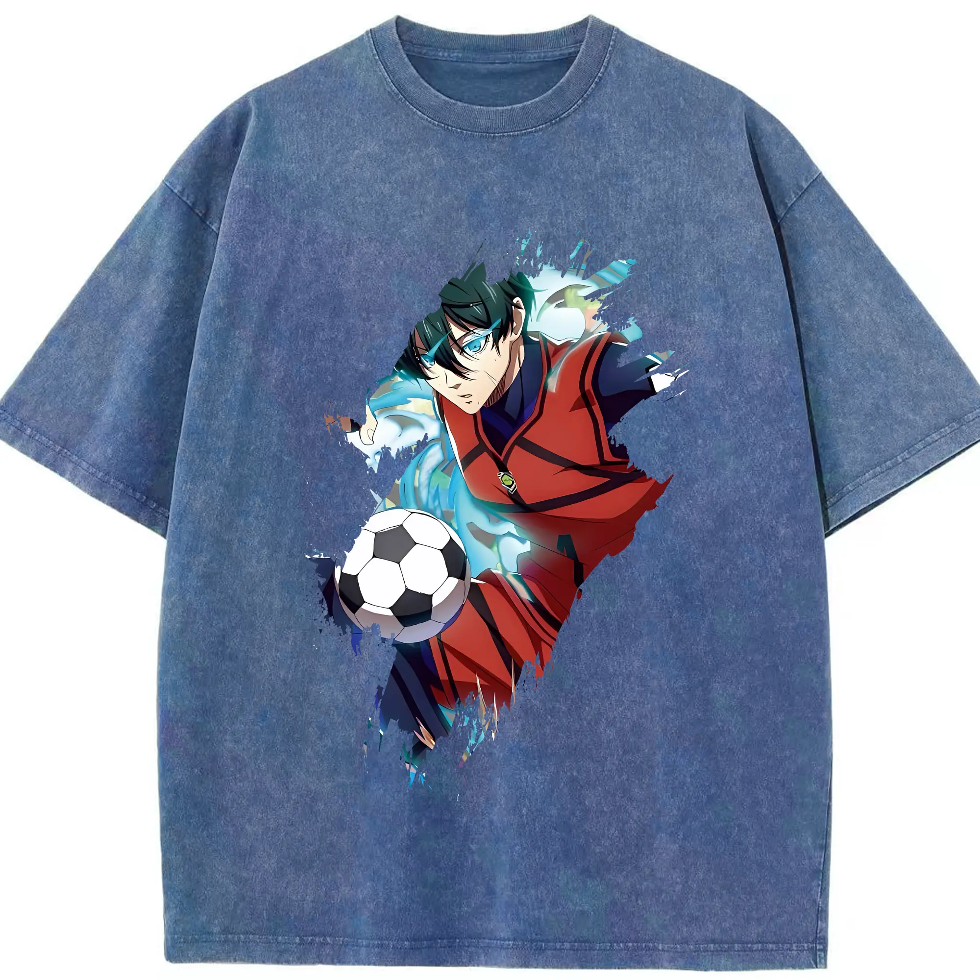 ブルーロック グッズ 糸師凛 - 綿100% ヴィンテージ風 半袖Tシャツ ・ 背面プリント ・ 柔らか肌触り ・ 通気性 快適 ・ スポーツ カジュアル 外出用