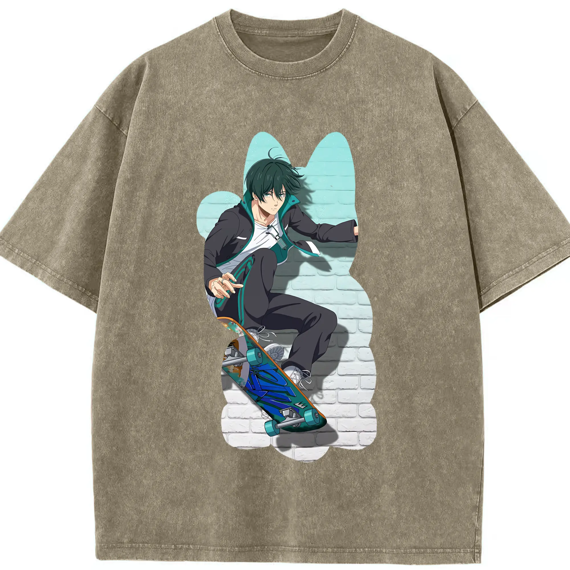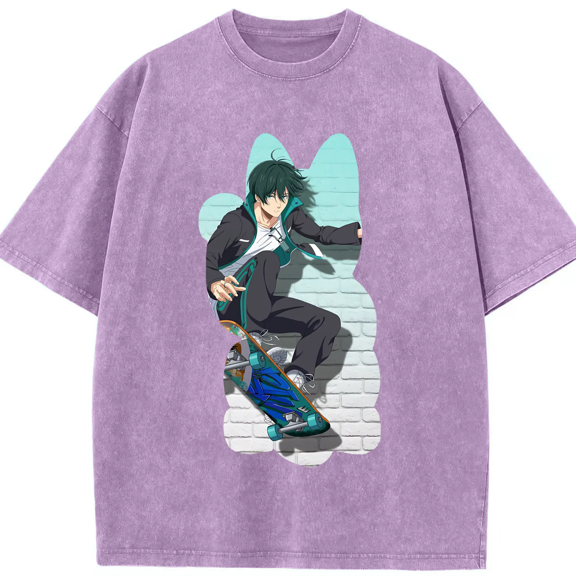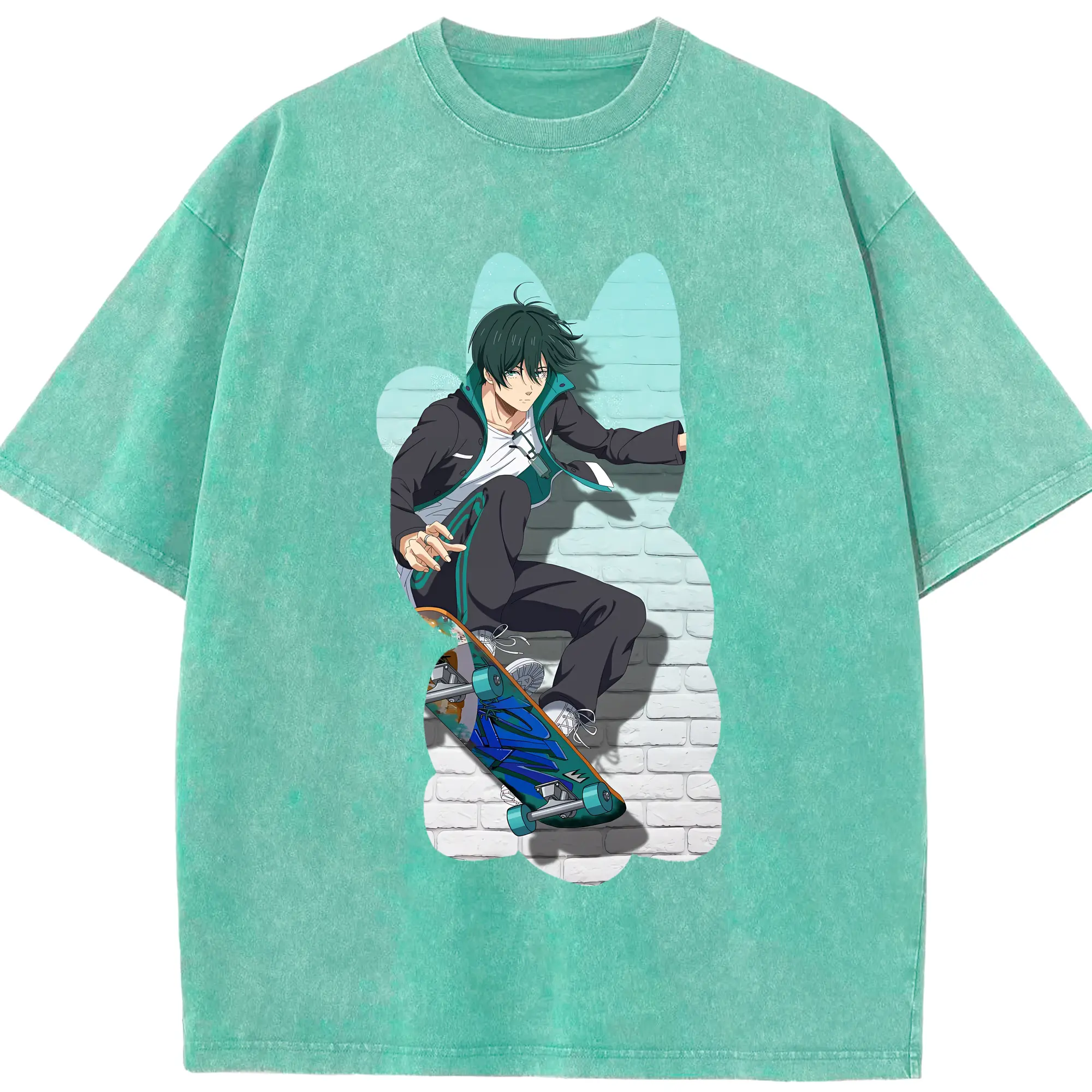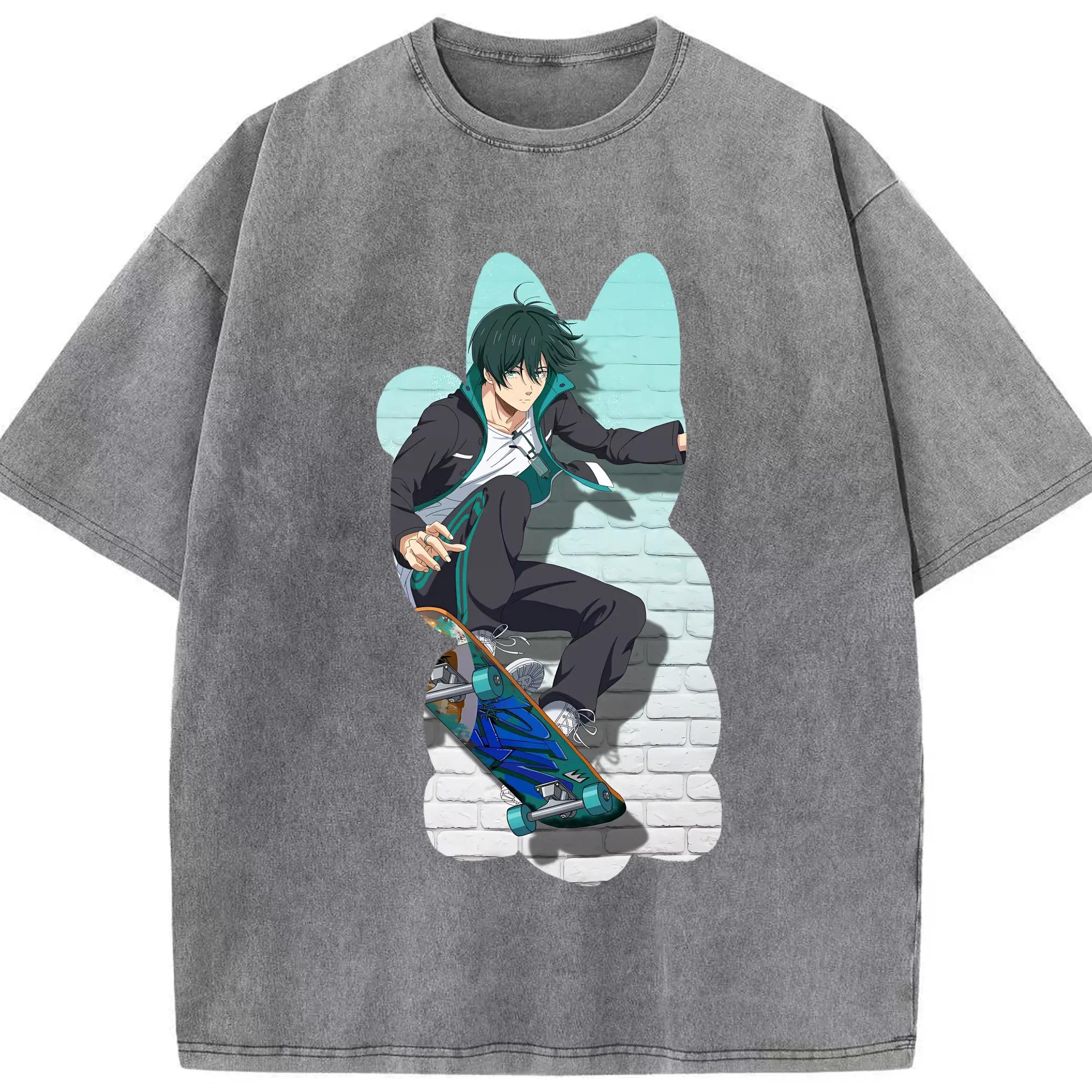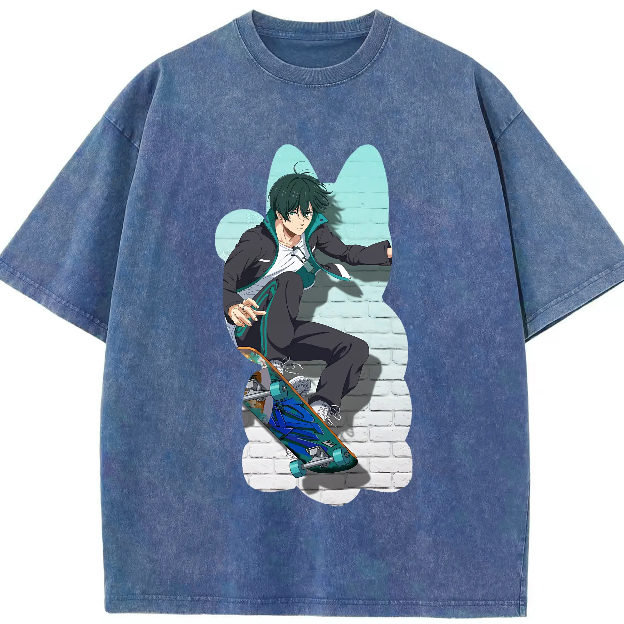 ブルーロック グッズ 糸師凛 - 綿100% ヴィンテージ風 半袖Tシャツ ・ 背面プリント ・ 柔らか肌触り ・ 通気性 快適 ・ スポーツ カジュアル 外出用
