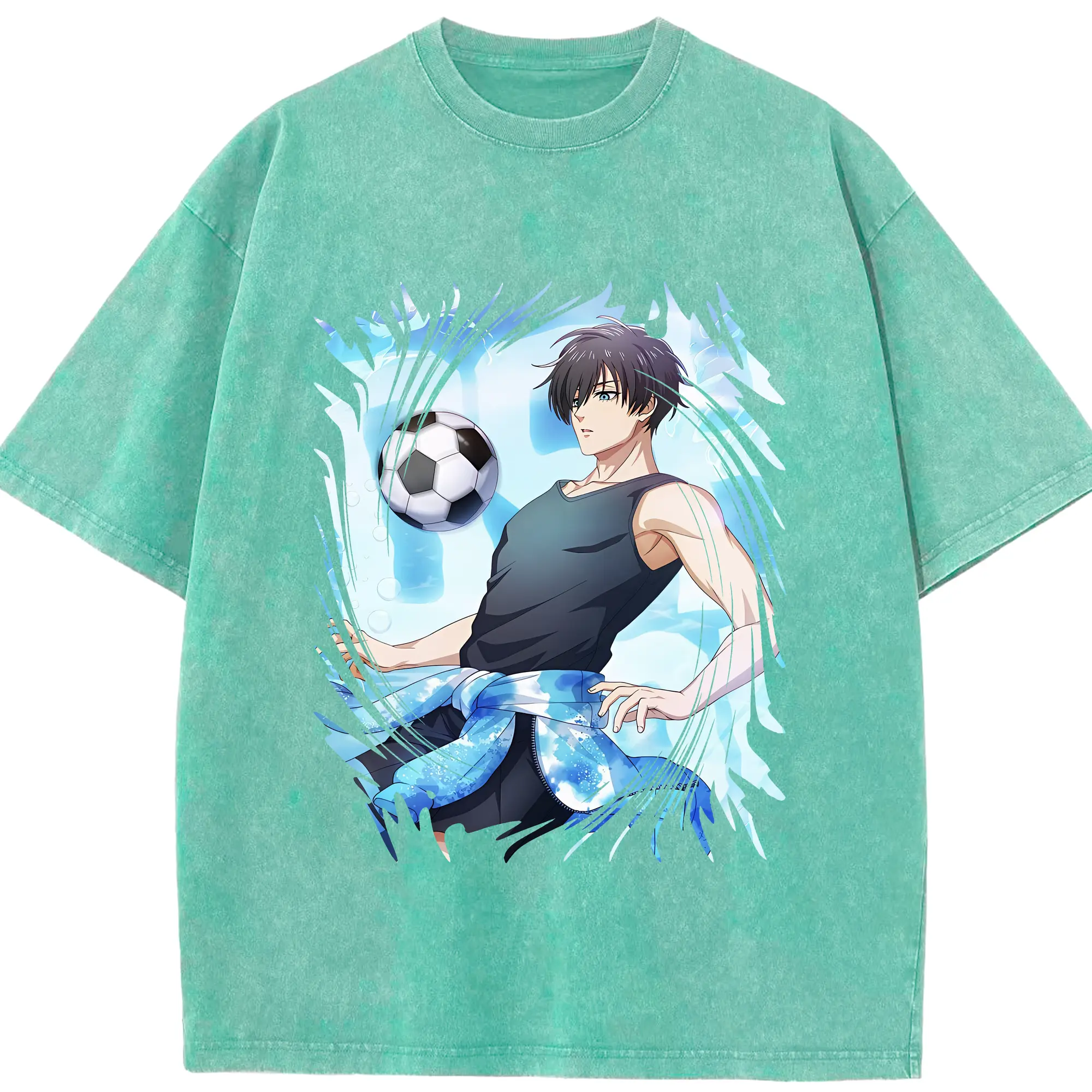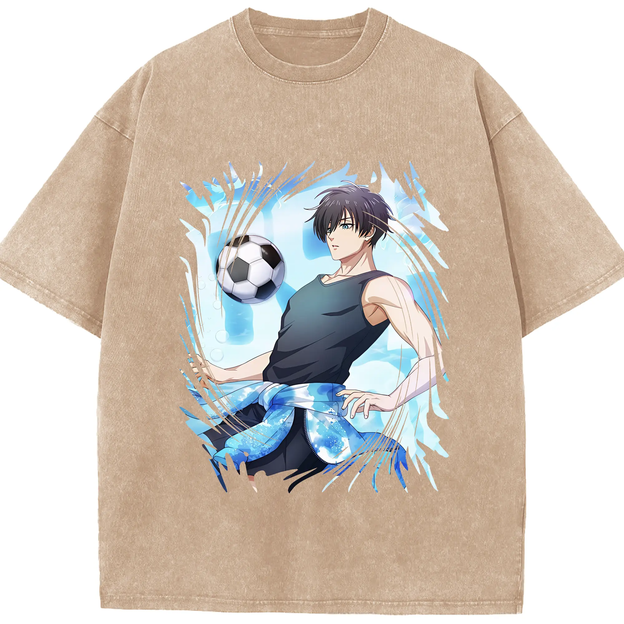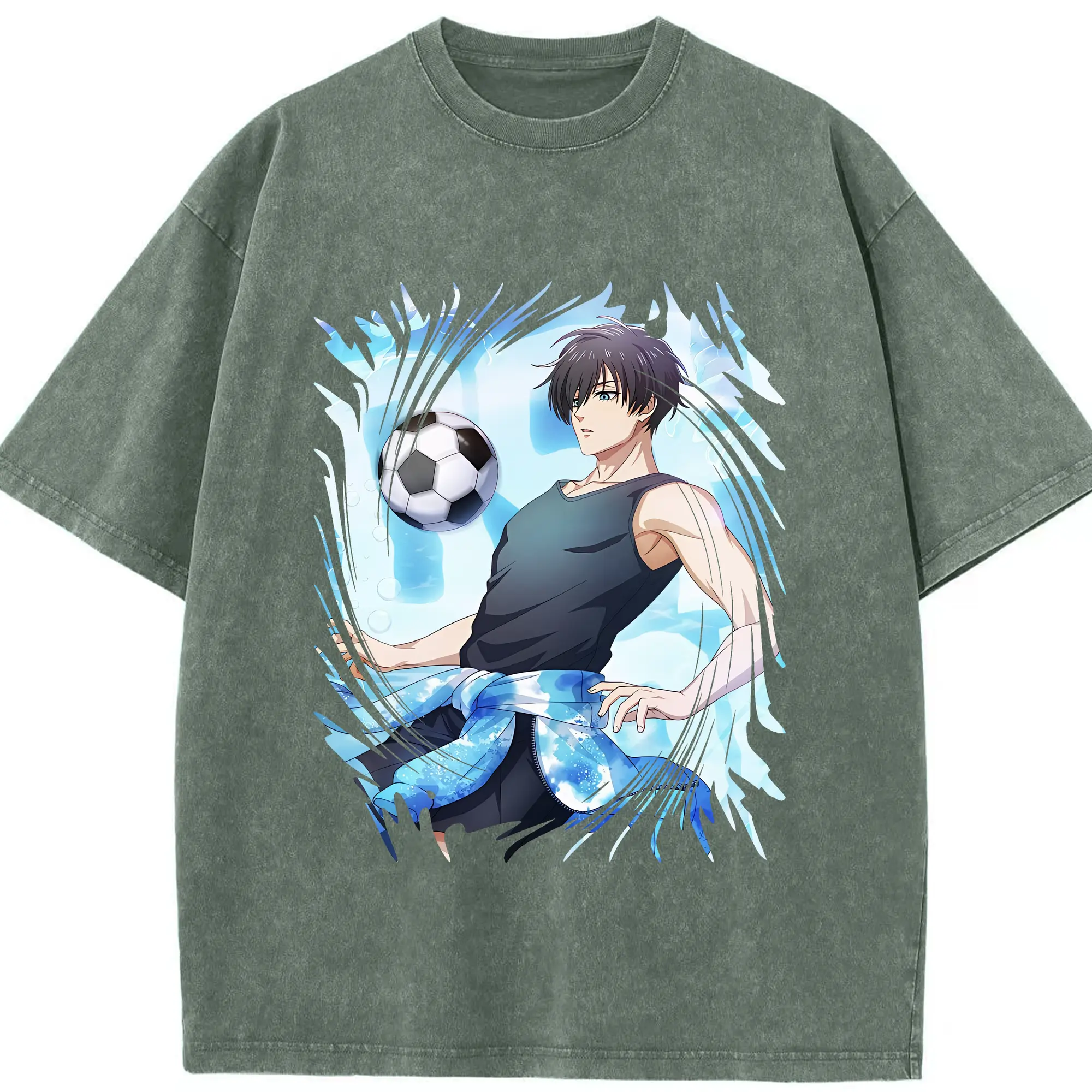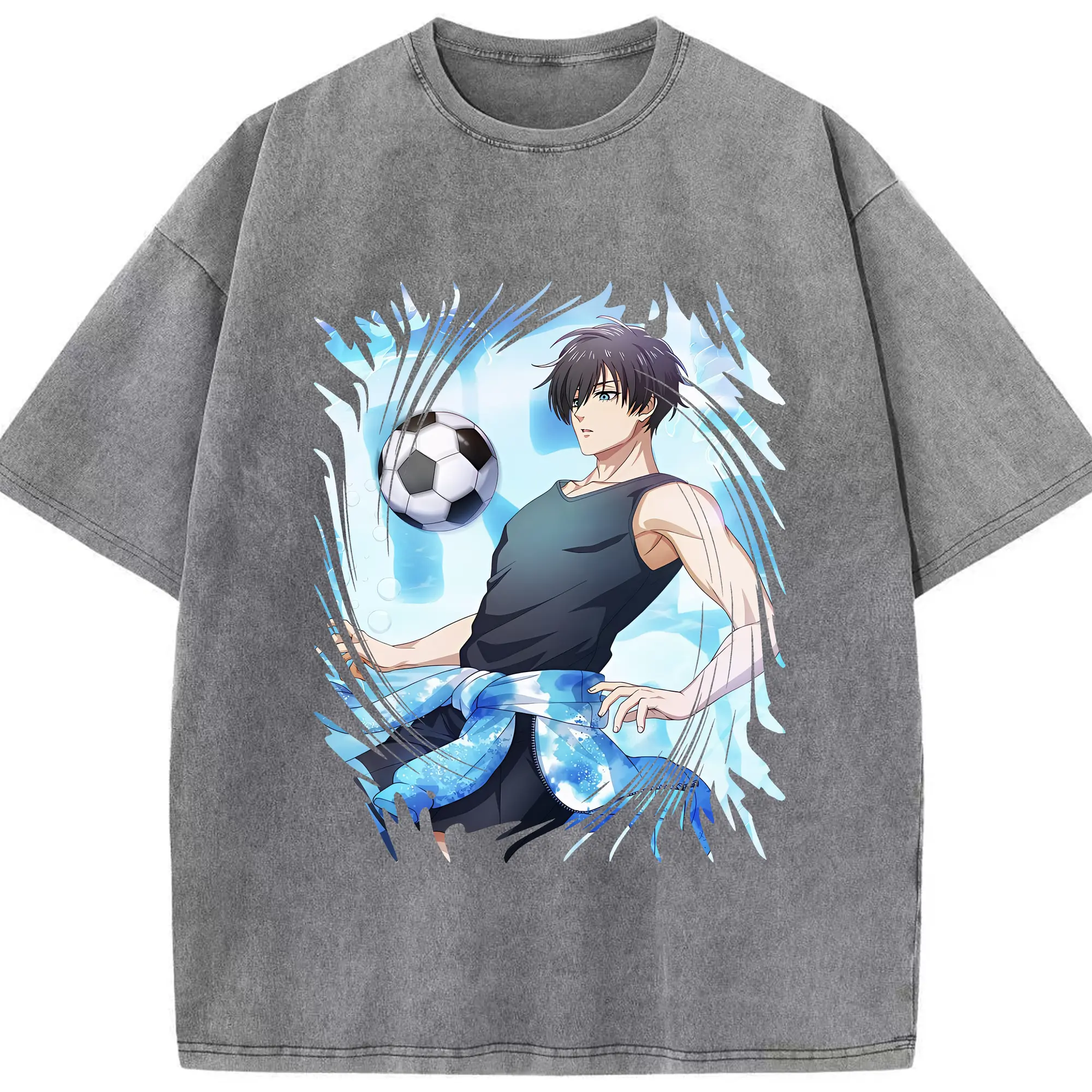 ブルーロック グッズ 糸師凛 - 綿100% ヴィンテージ風 半袖Tシャツ ・ 背面プリント ・ 柔らか肌触り ・ 通気性 快適 ・ スポーツ カジュアル 外出用