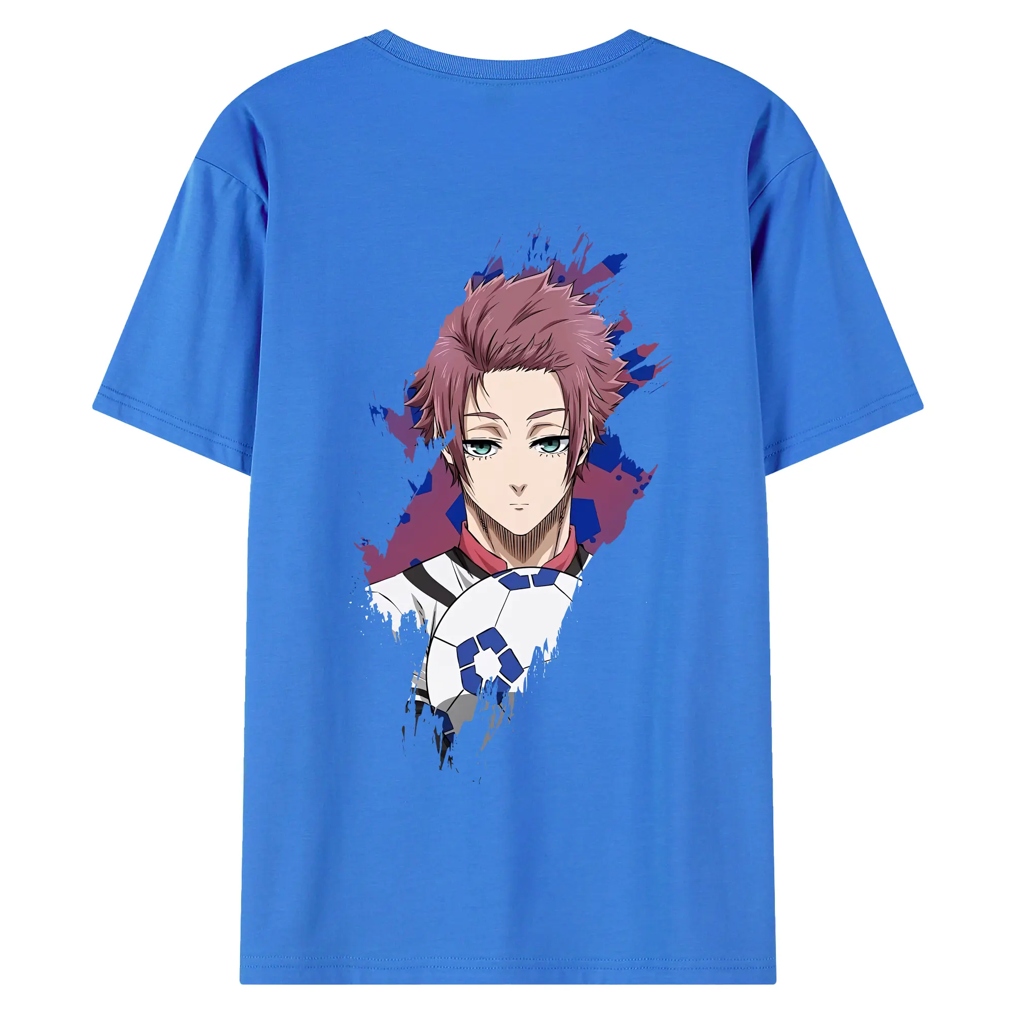 ブルーロック グッズ 蜂楽 廻 - 綿100% 半袖Tシャツ ・ バックプリント ・ 快適 通気性 ・ 日常使い 散歩 スポーツ用