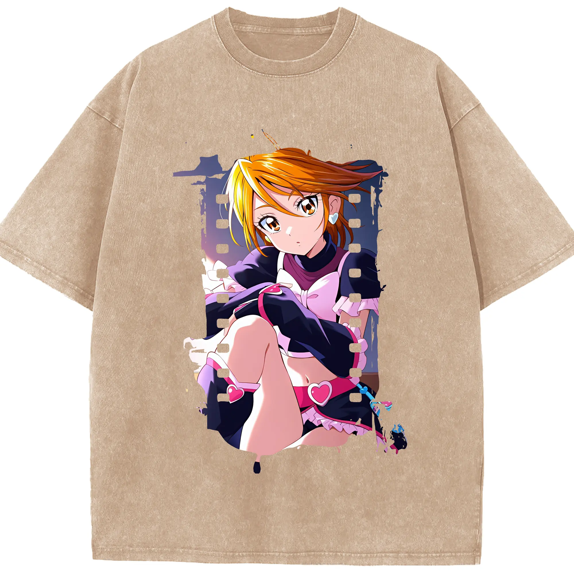 プリキュア グッズ,美墨なぎさ - 綿100% ヴィンテージ風 半袖Tシャツ ・ 背面プリント ・ 柔らか肌触り ・ 通気性 快適 ・ スポーツ カジュアル 外出用