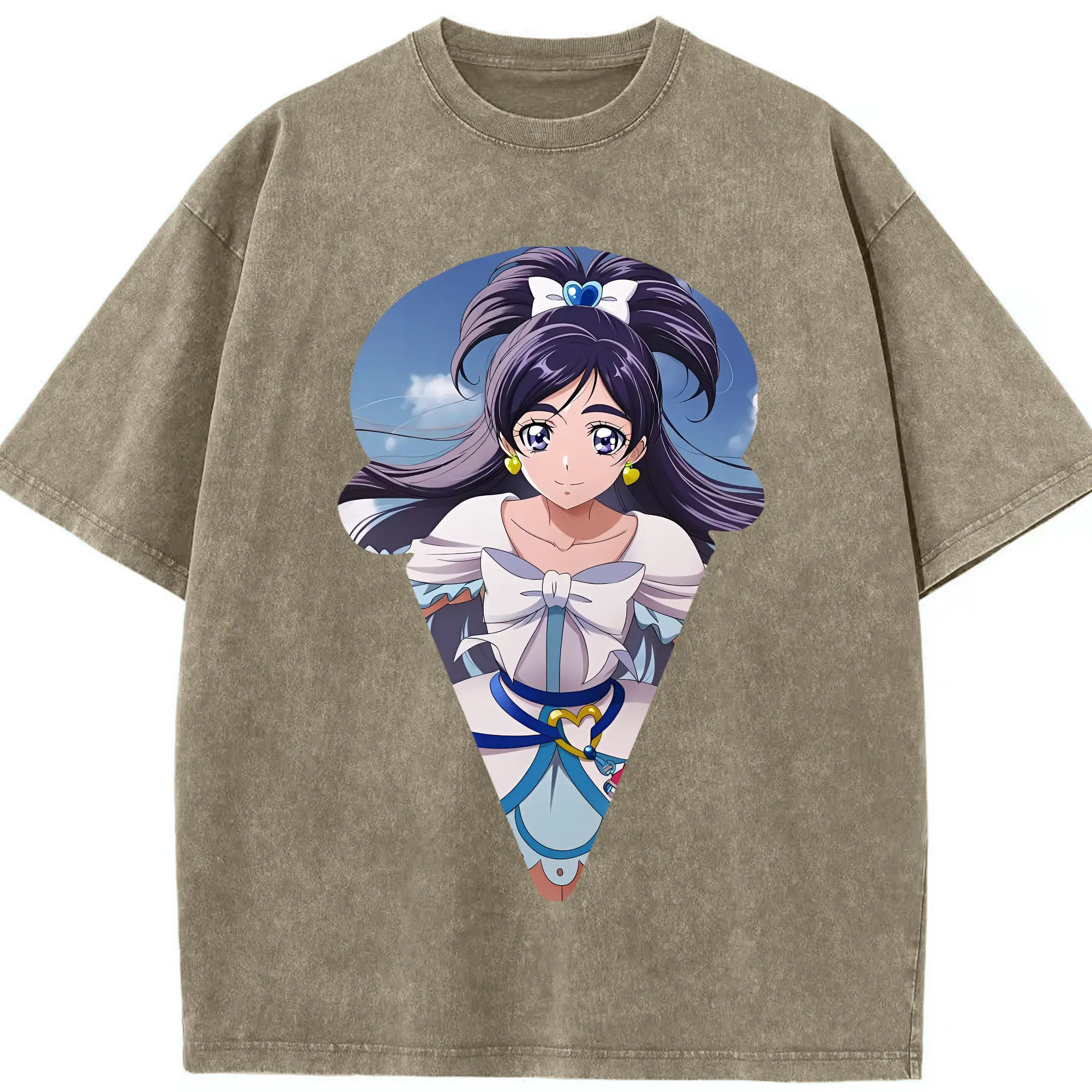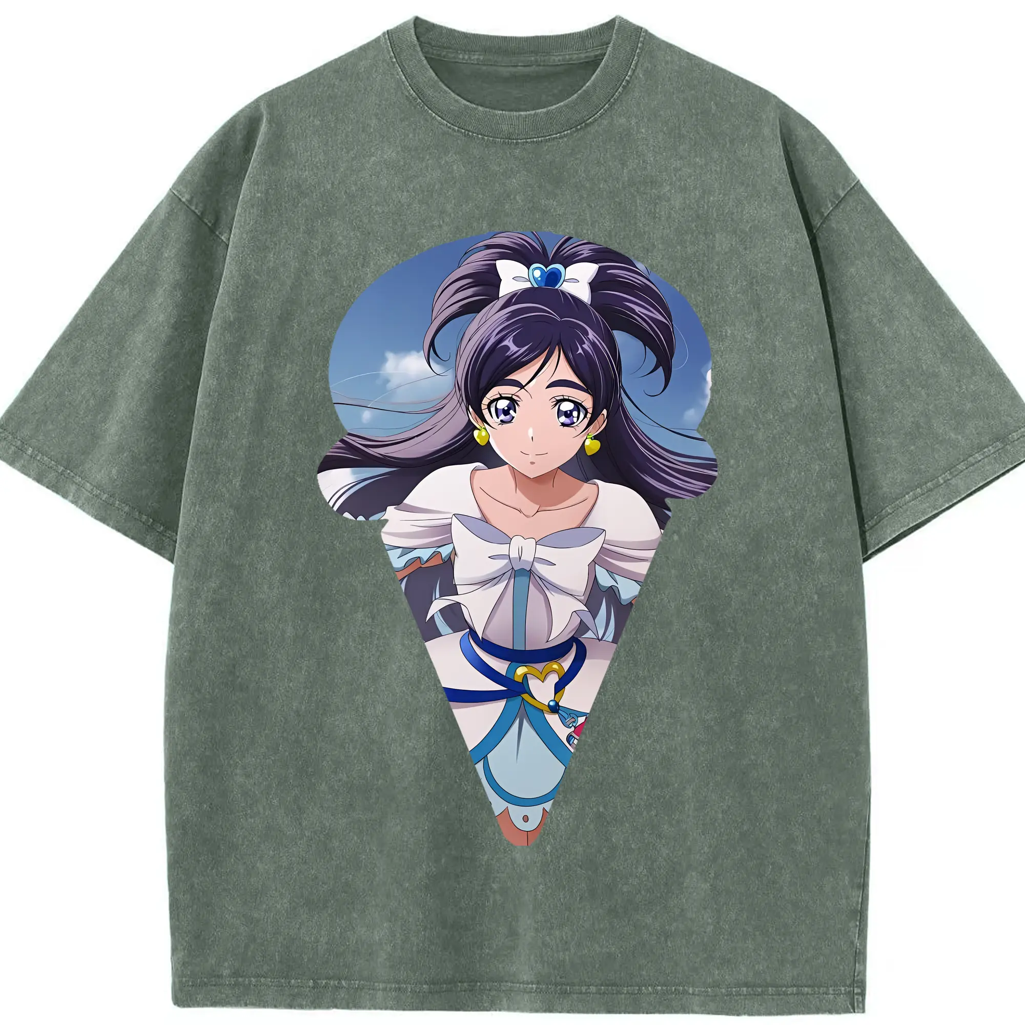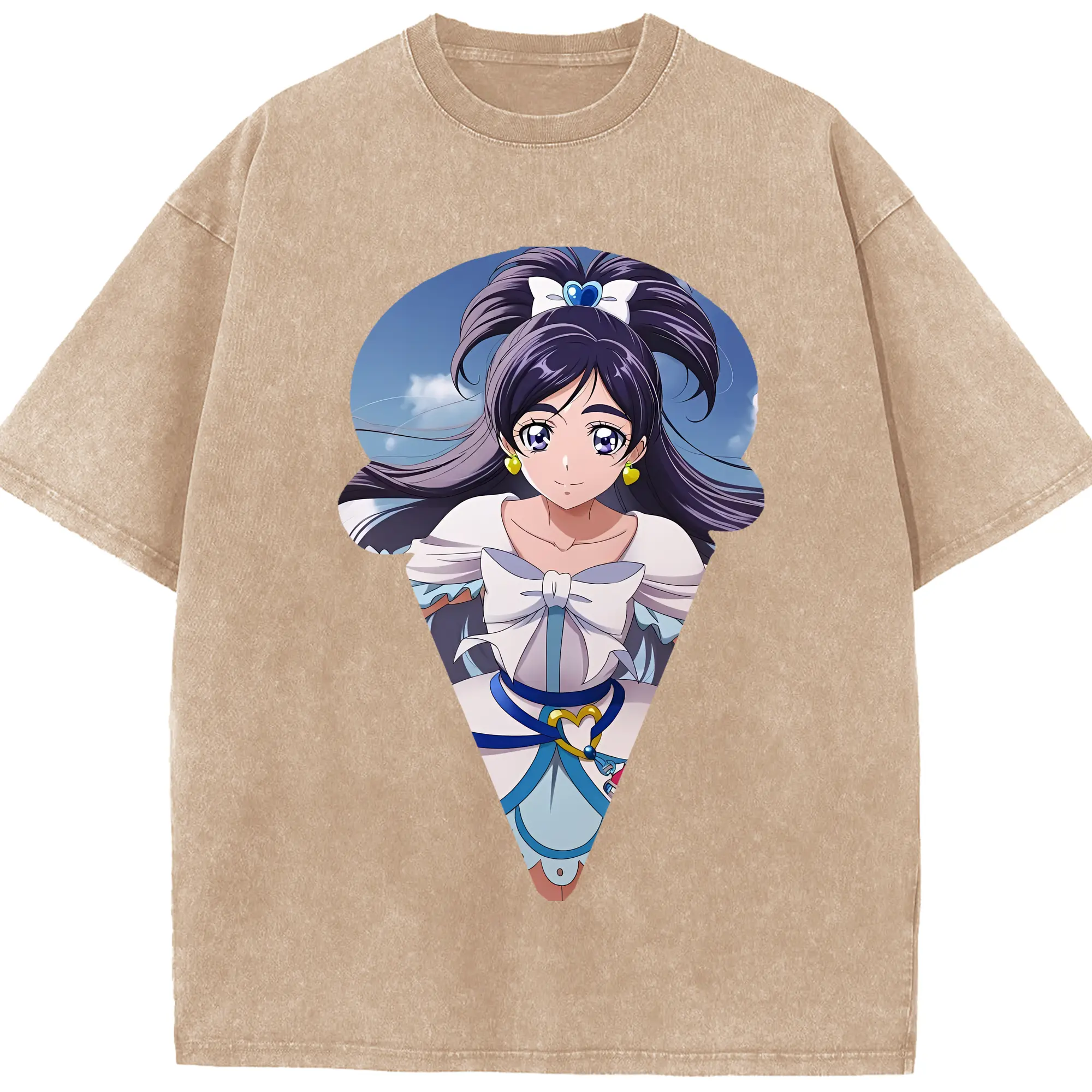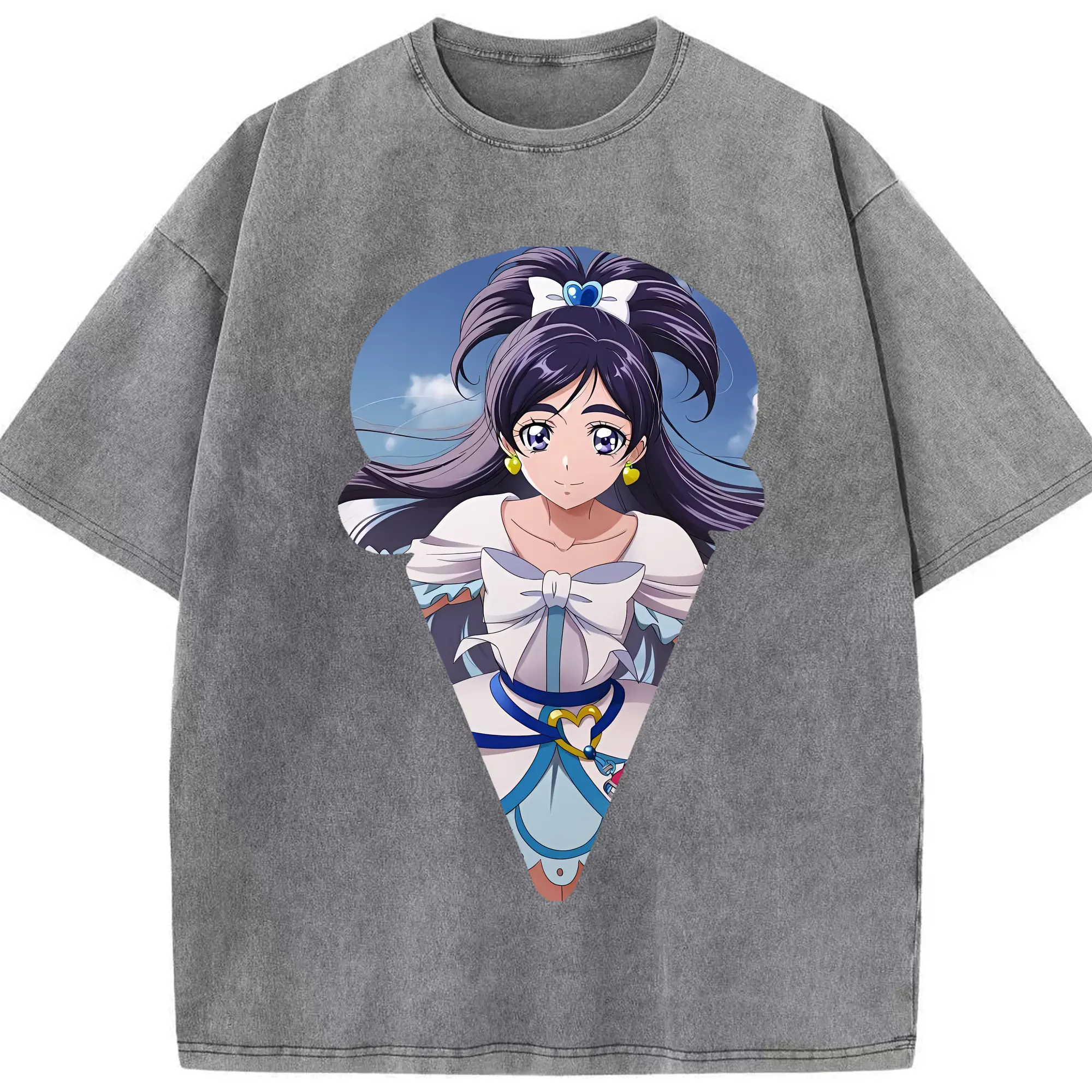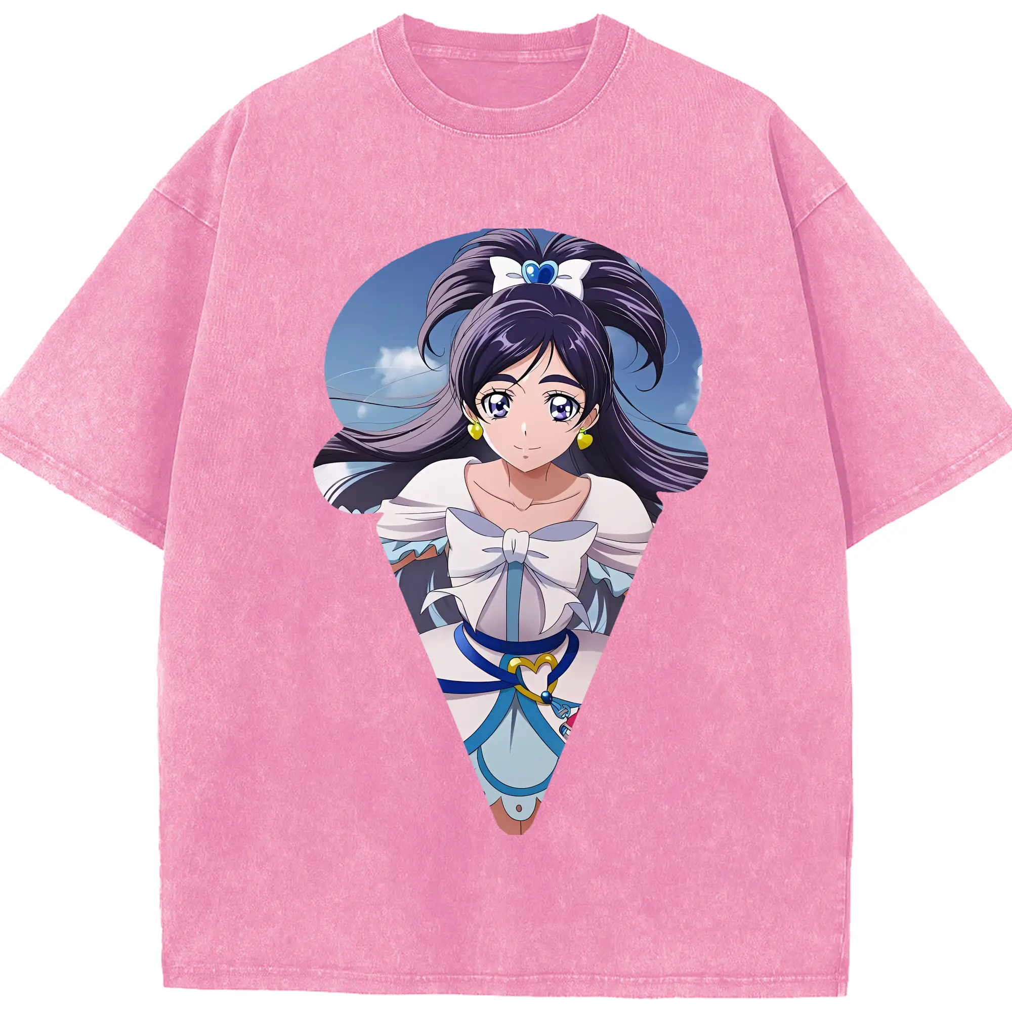 プリキュア グッズ,雪城ほのか - 綿100% ヴィンテージ風 半袖Tシャツ ・ 背面プリント ・ 柔らか肌触り ・ 通気性 快適 ・ スポーツ カジュアル 外出用
