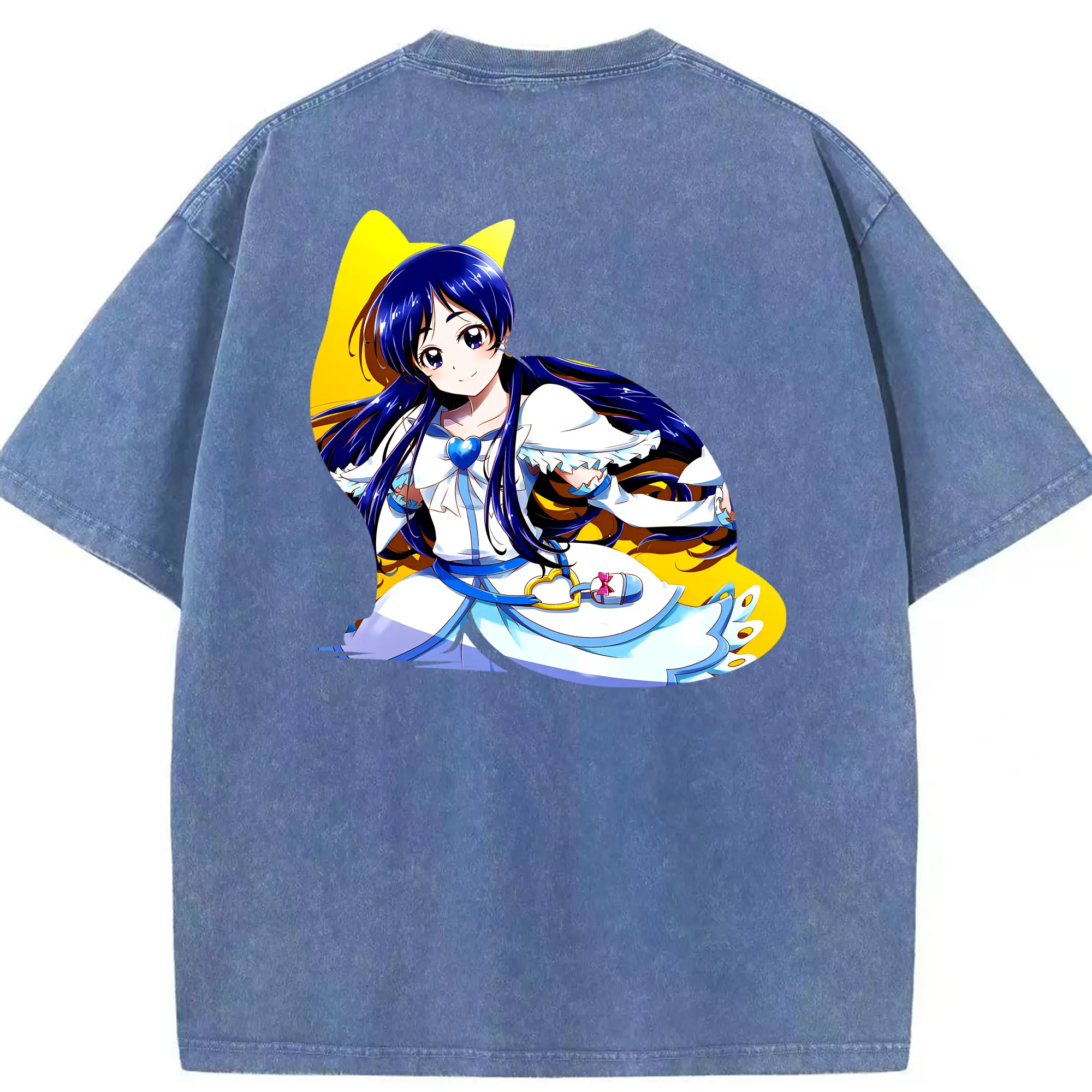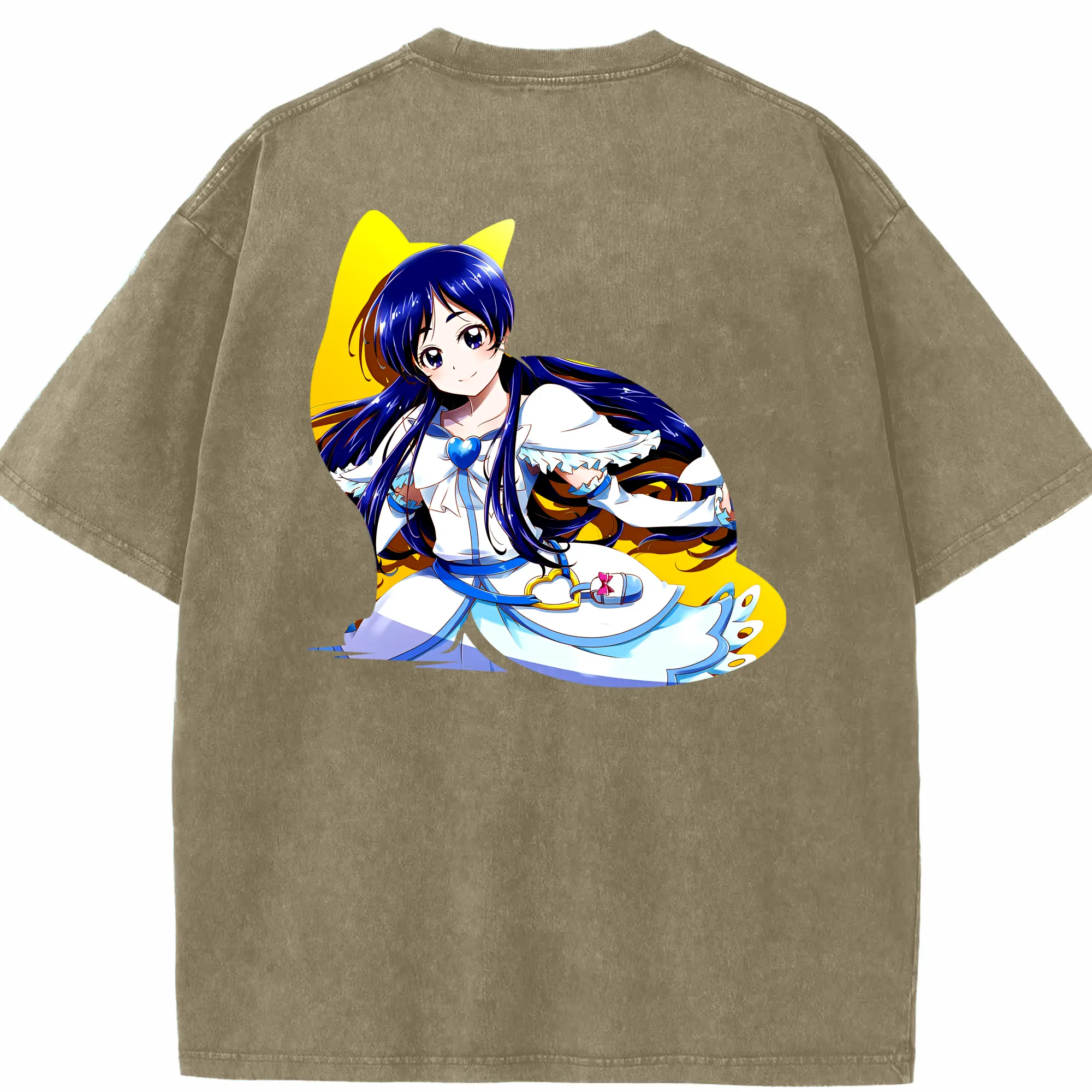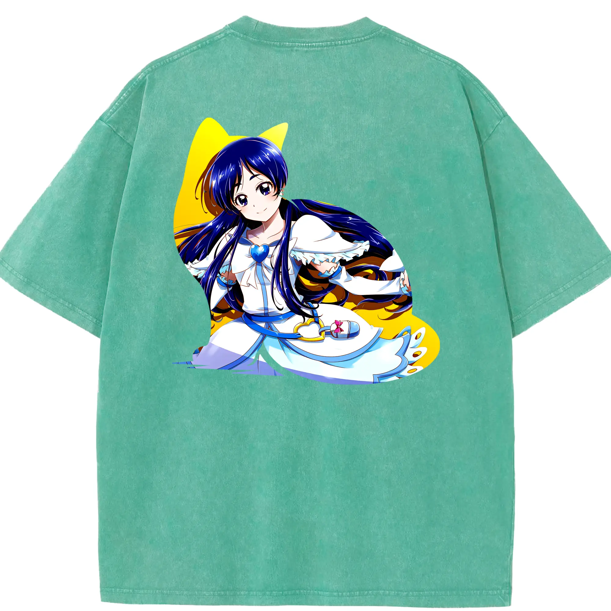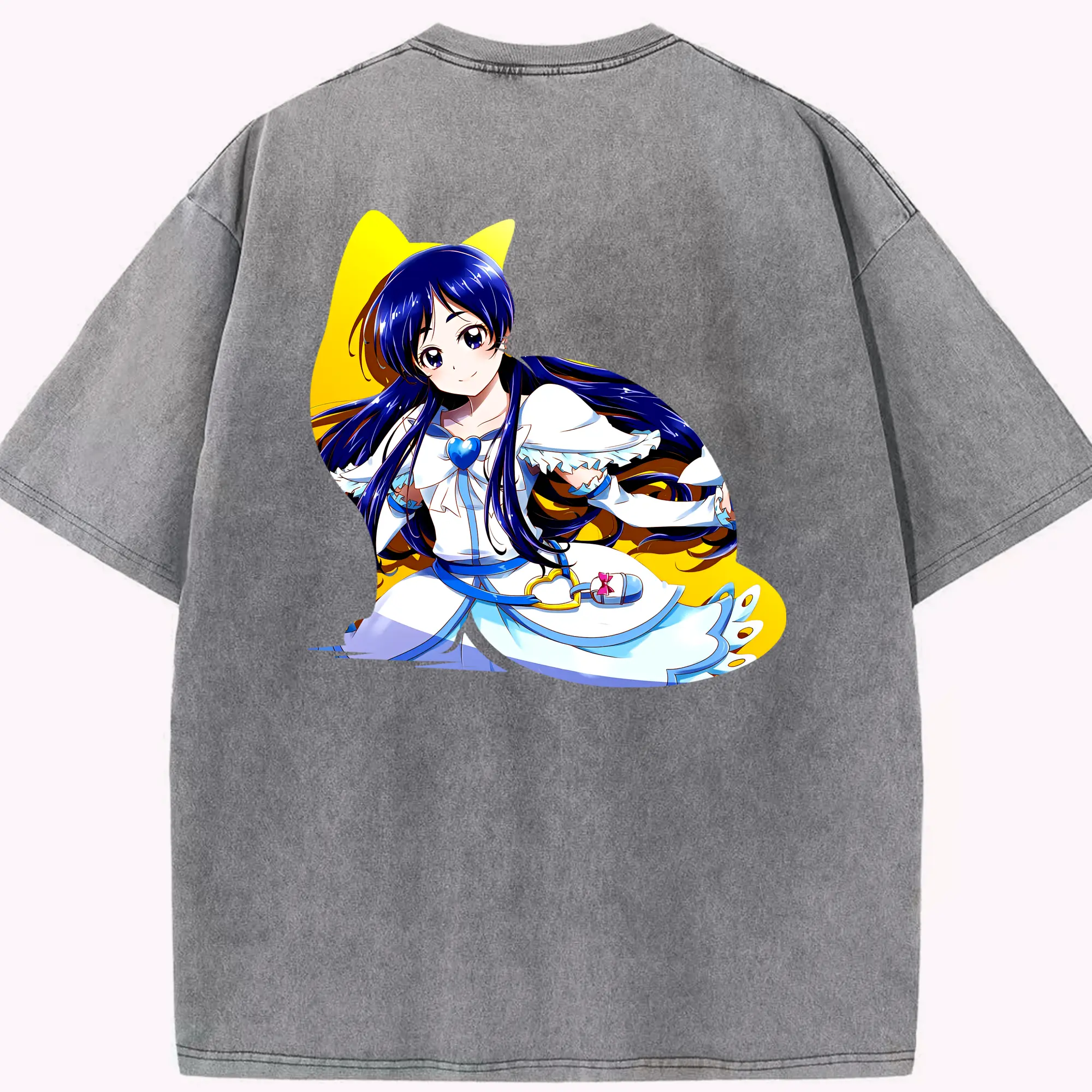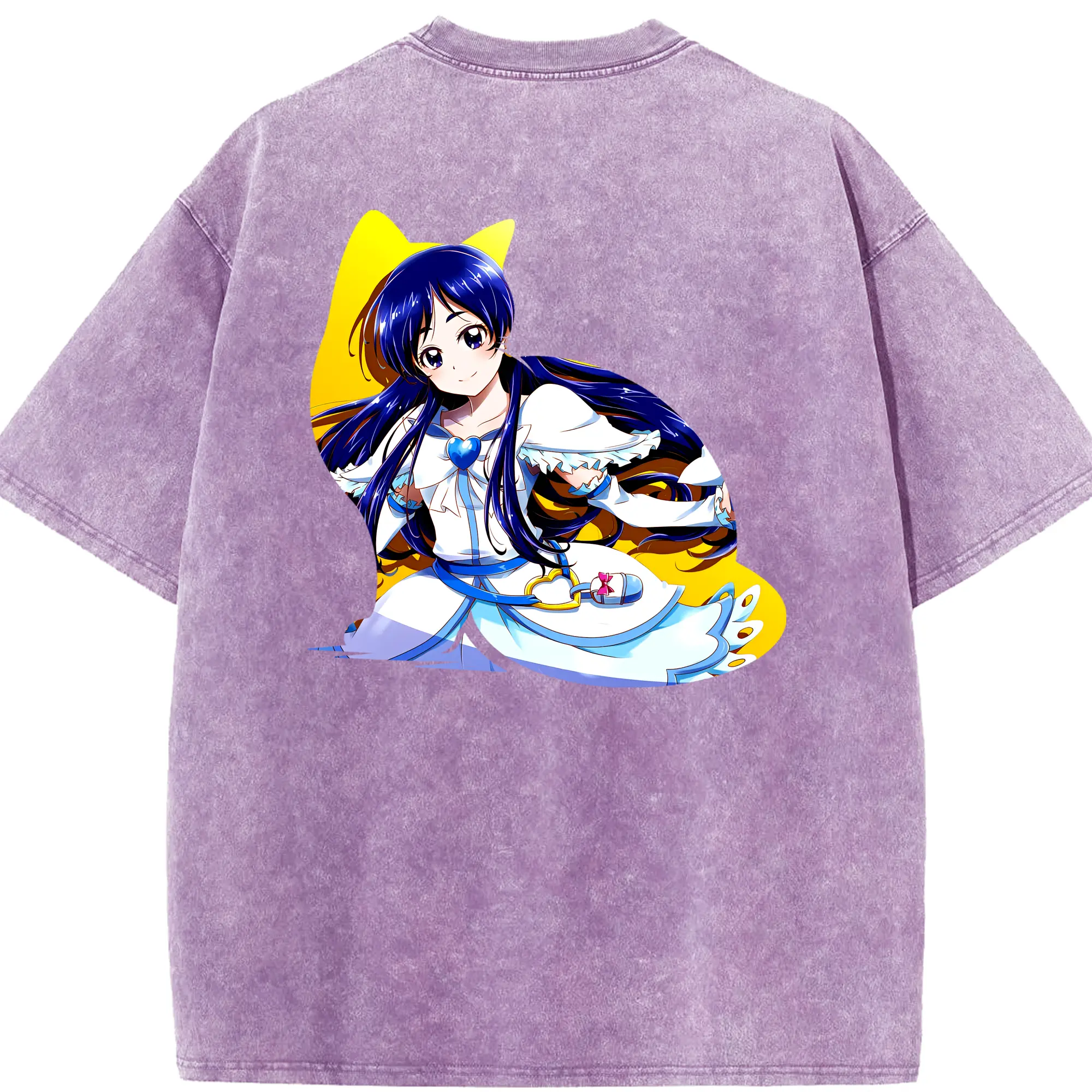 プリキュア グッズ,雪城ほのか - 綿100% ヴィンテージ風 半袖Tシャツ ・ フロントプリント ・ 柔らか肌触り ・ 通気性 快適 ・ スポーツ カジュアル 外出用