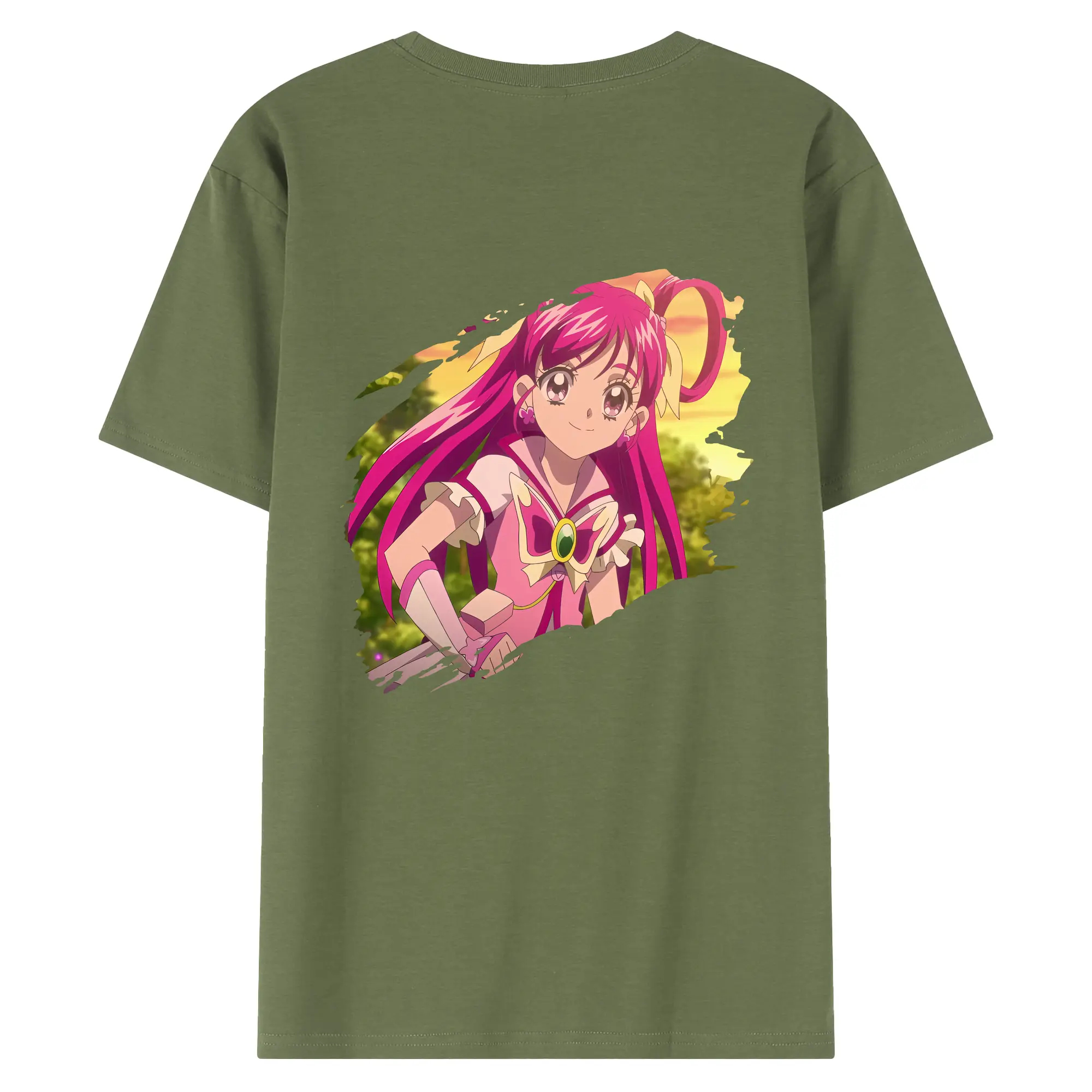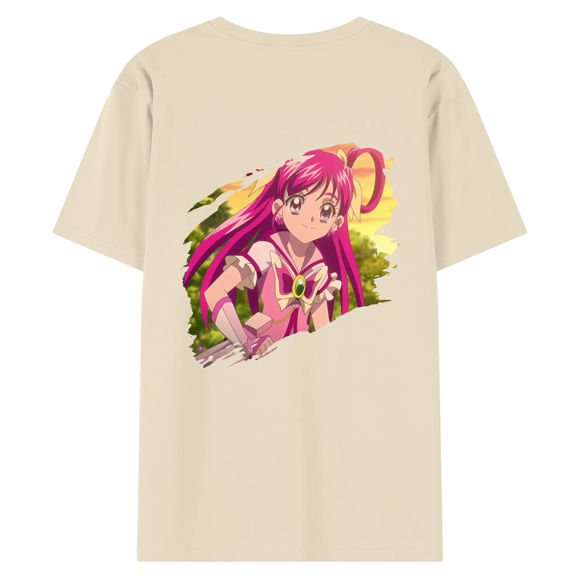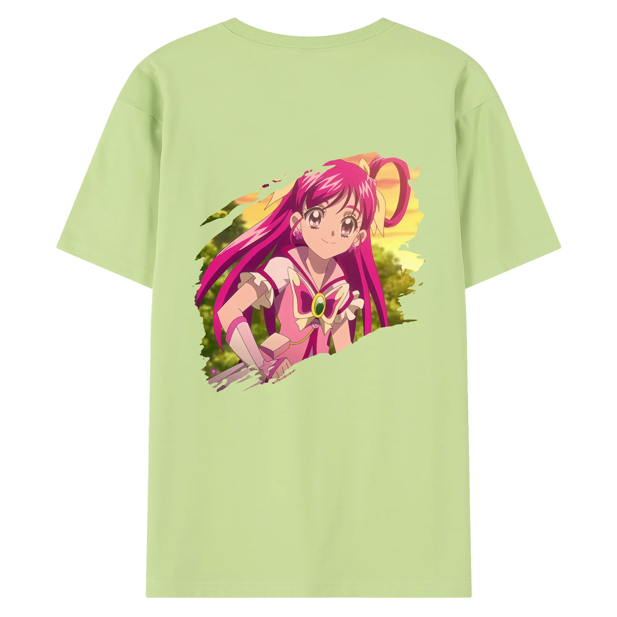 プリキュア グッズ,夢原のぞみ - 綿100% ヴィンテージ風 半袖Tシャツ ・ 背面プリント ・ 柔らか肌触り ・ 通気性 快適 ・ スポーツ カジュアル 外出用