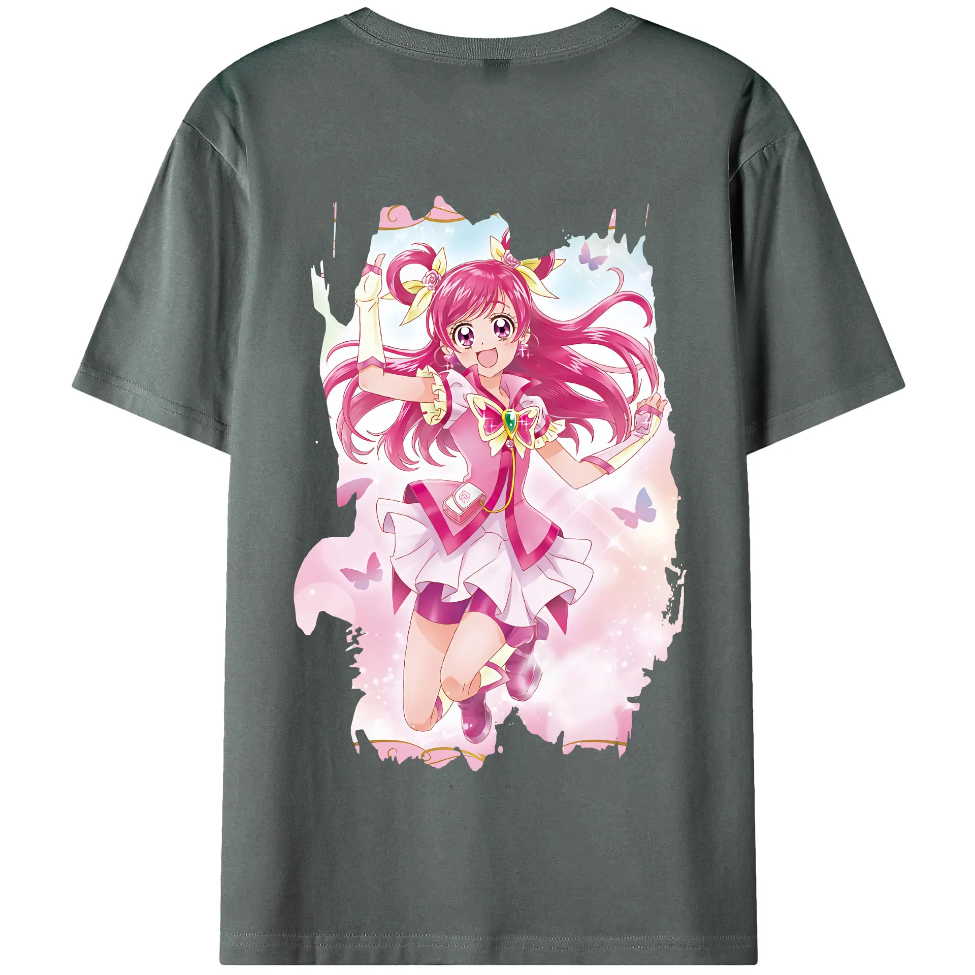 プリキュア グッズ,夢原のぞみ - 綿100% ヴィンテージ風 半袖Tシャツ ・ 背面プリント ・ 柔らか肌触り ・ 通気性 快適 ・ スポーツ カジュアル 外出用