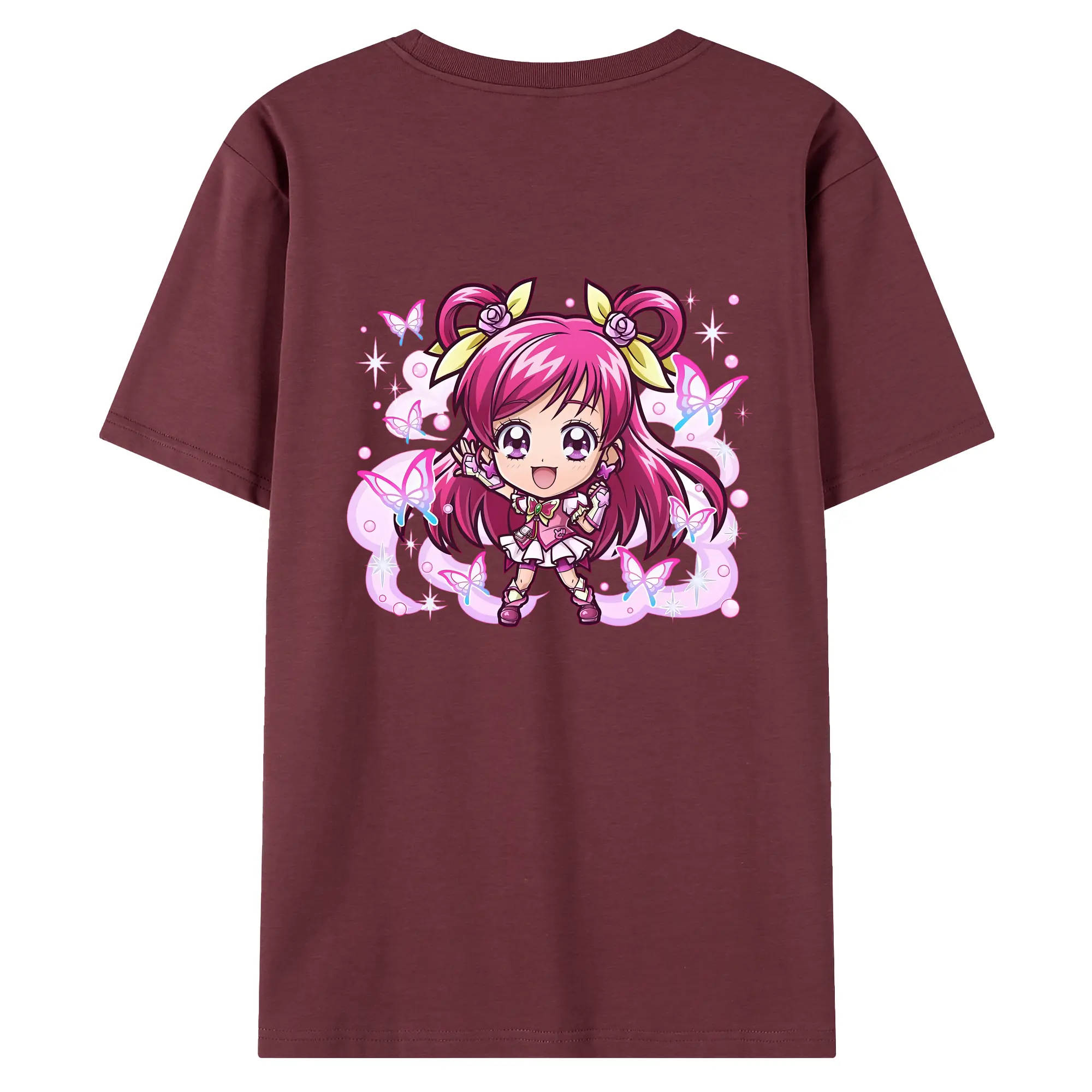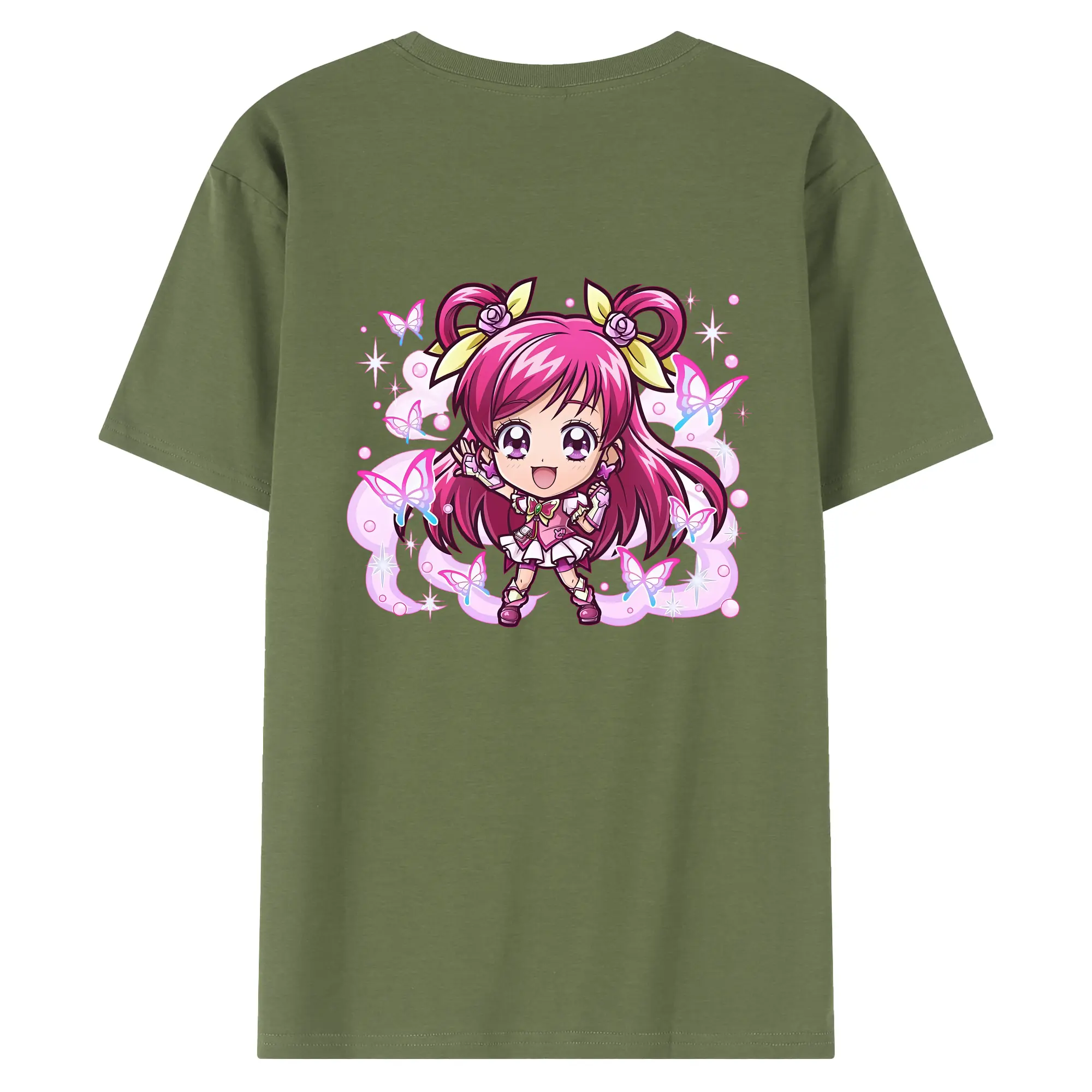 プリキュア グッズ,夢原のぞみ - 綿100% ヴィンテージ風 半袖Tシャツ ・ 背面プリント ・ 柔らか肌触り ・ 通気性 快適 ・ スポーツ カジュアル 外出用