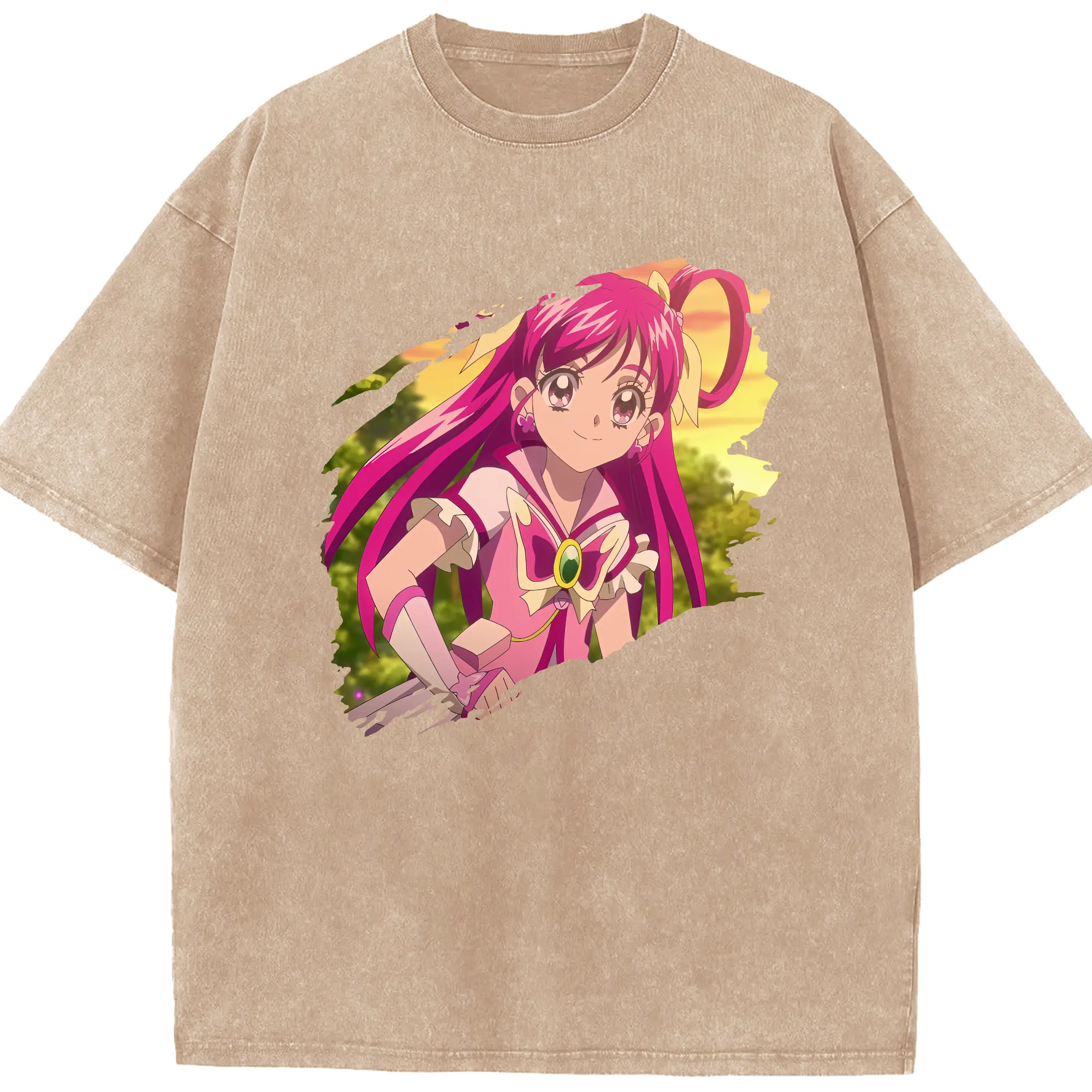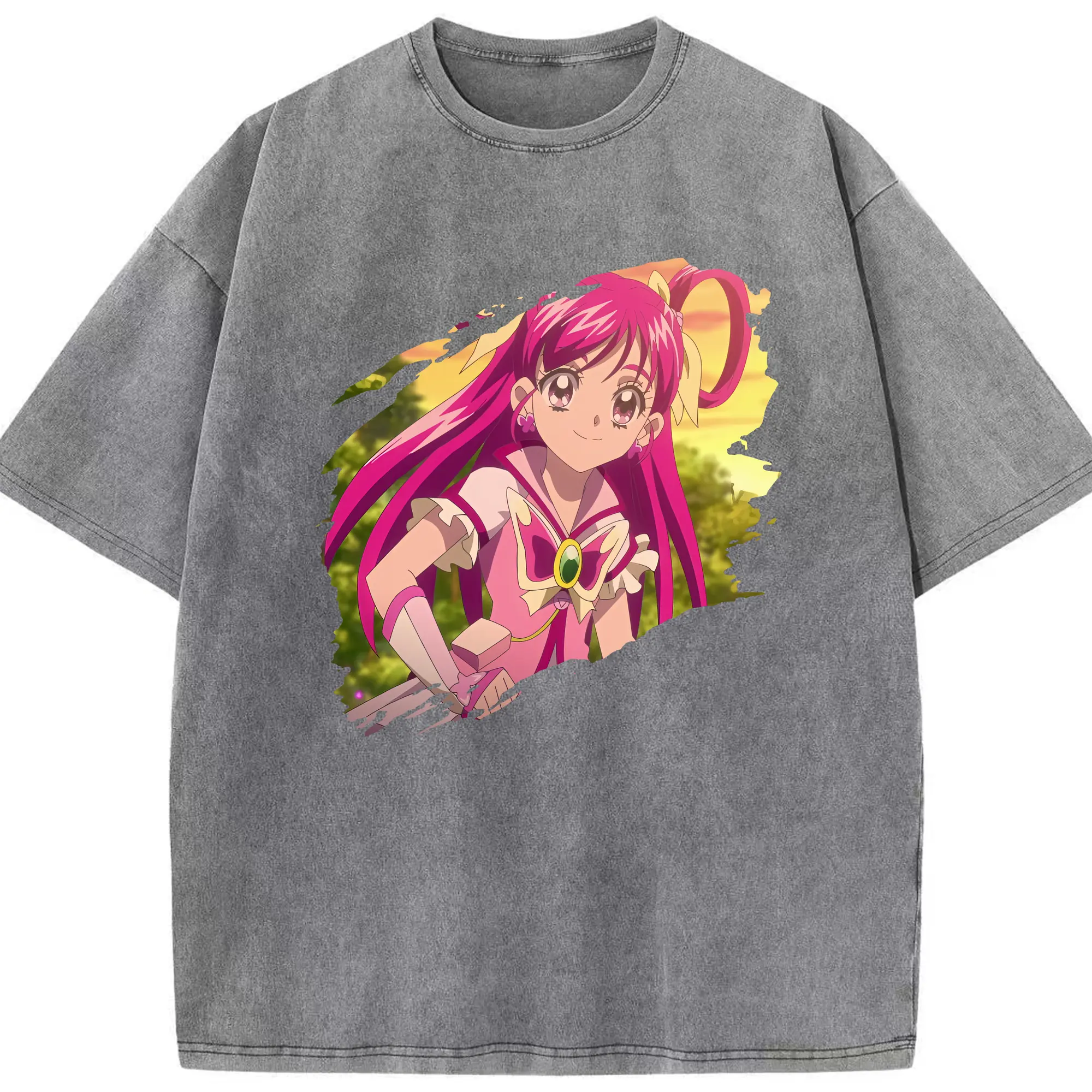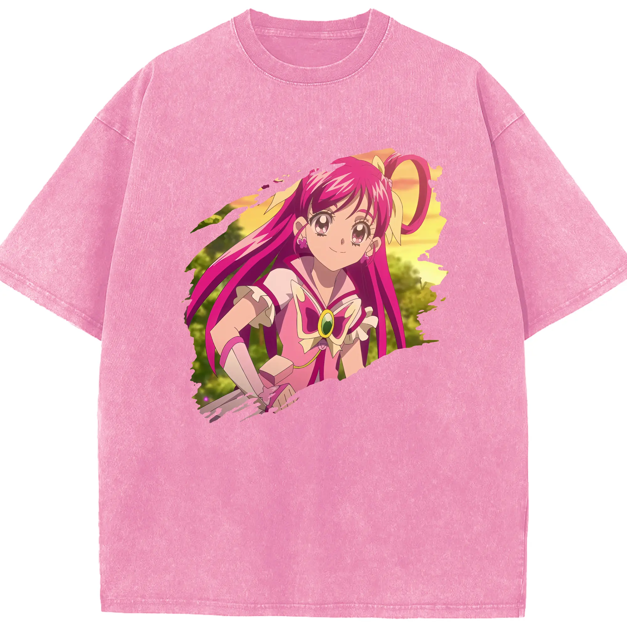 プリキュア グッズ,夢原のぞみ - 綿100% ヴィンテージ風 半袖Tシャツ ・ 背面プリント ・ 柔らか肌触り ・ 通気性 快適 ・ スポーツ カジュアル 外出用