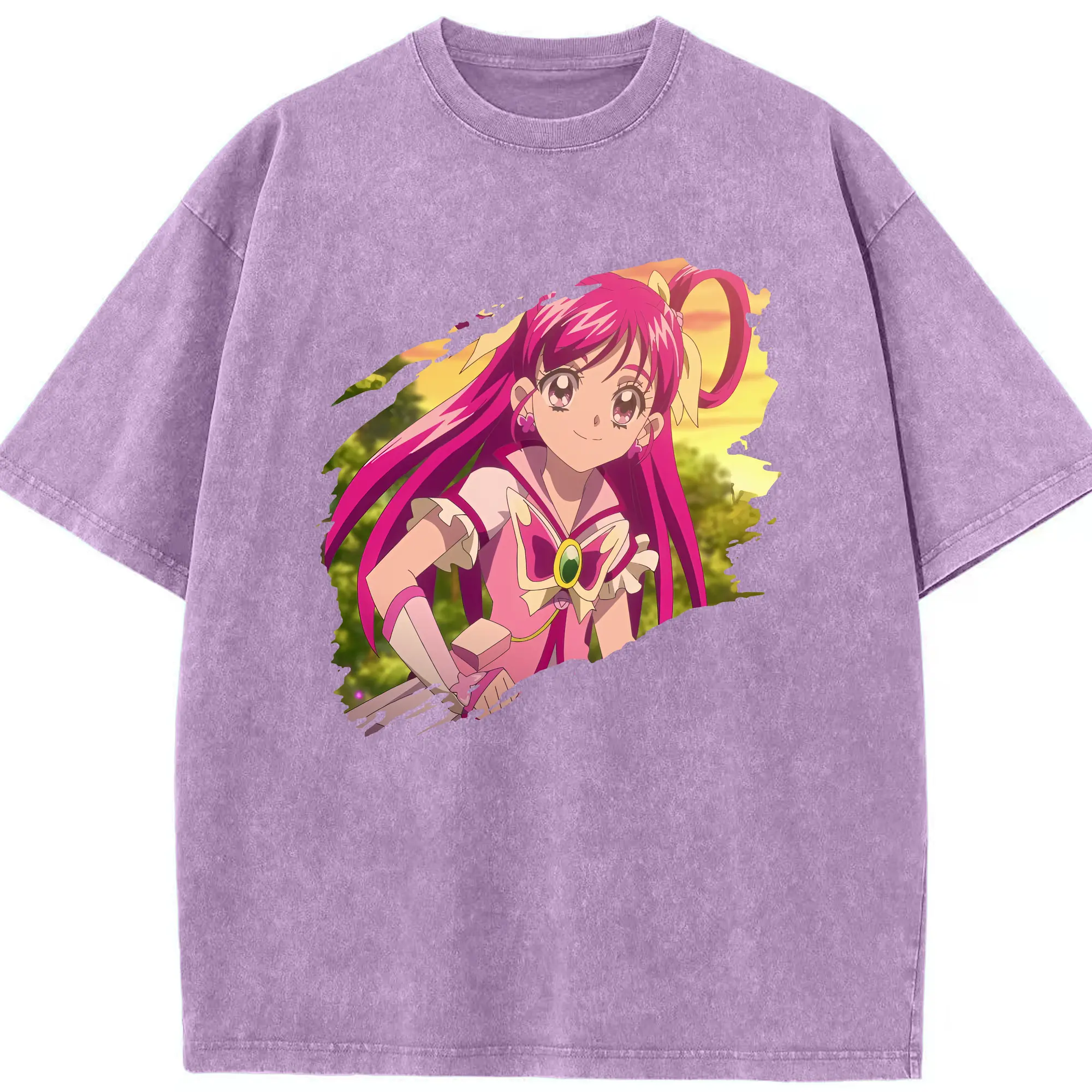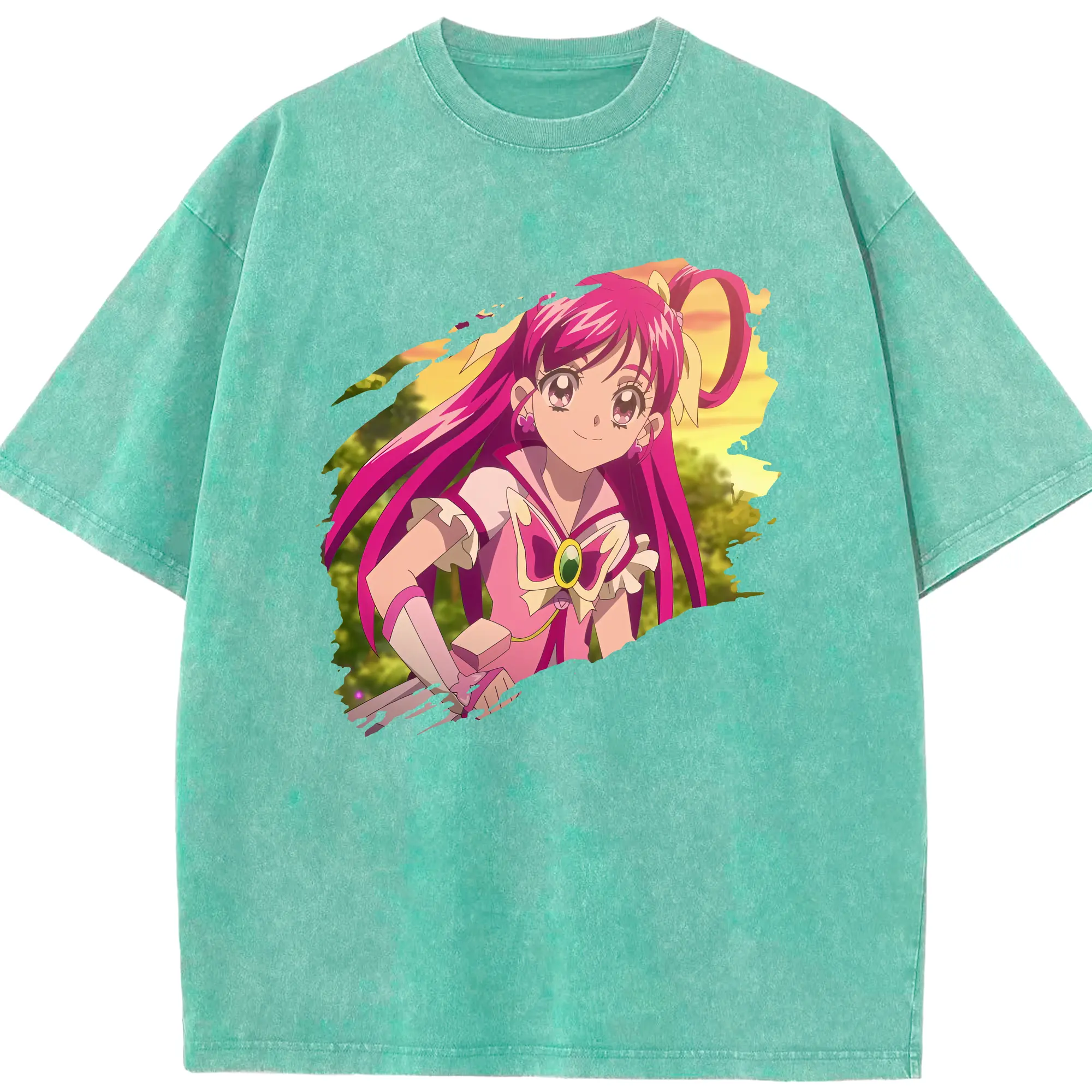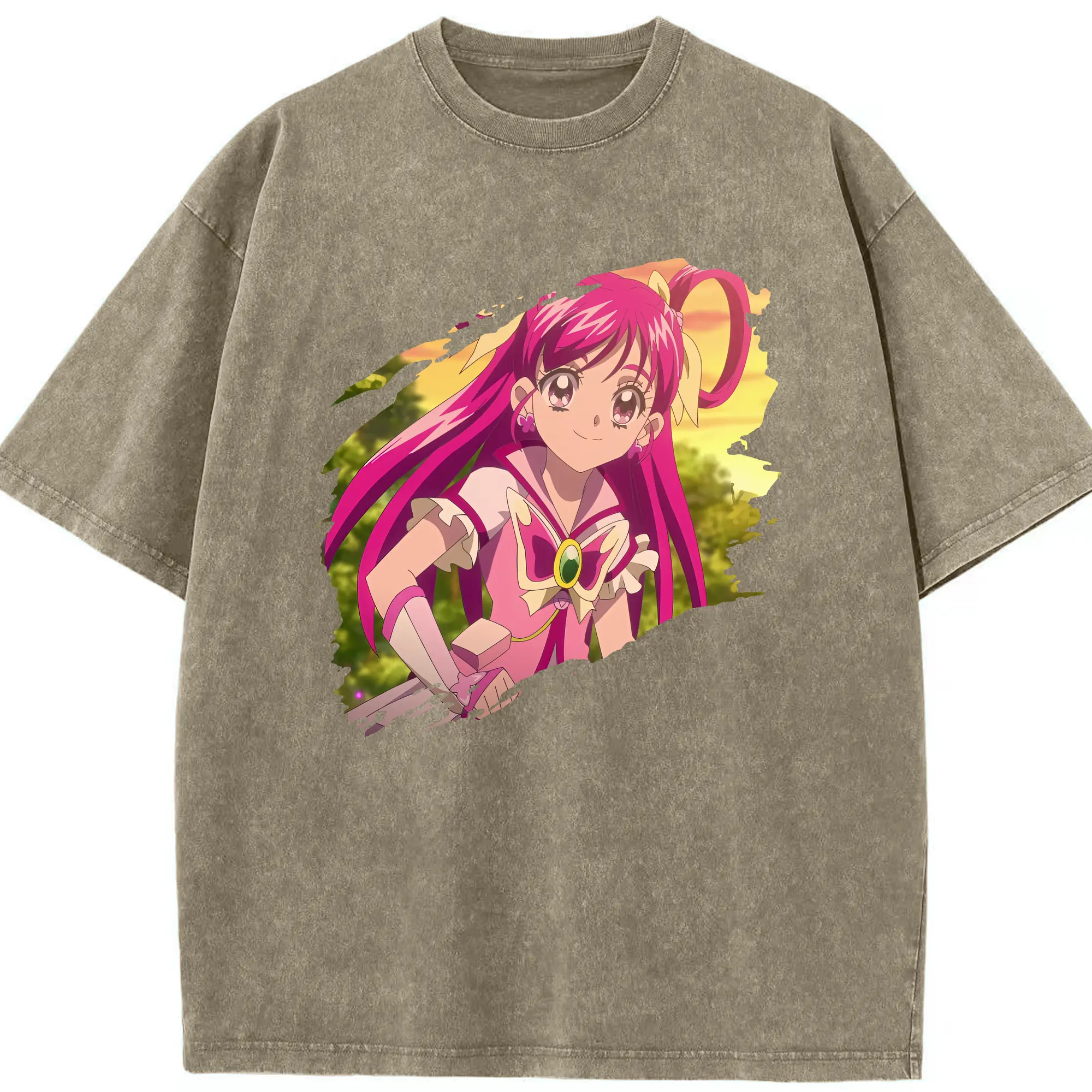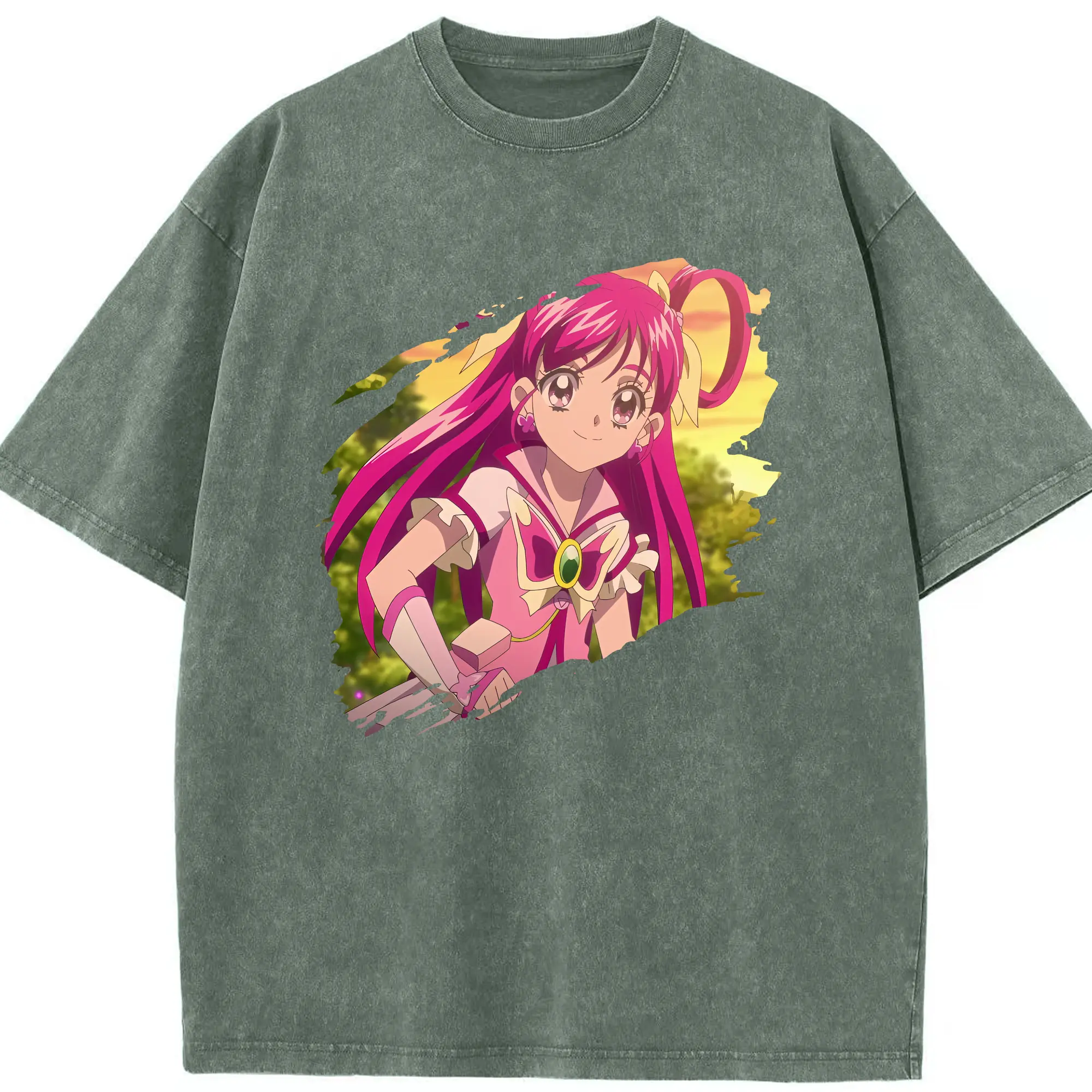 プリキュア グッズ,夢原のぞみ - 綿100% ヴィンテージ風 半袖Tシャツ ・ 背面プリント ・ 柔らか肌触り ・ 通気性 快適 ・ スポーツ カジュアル 外出用