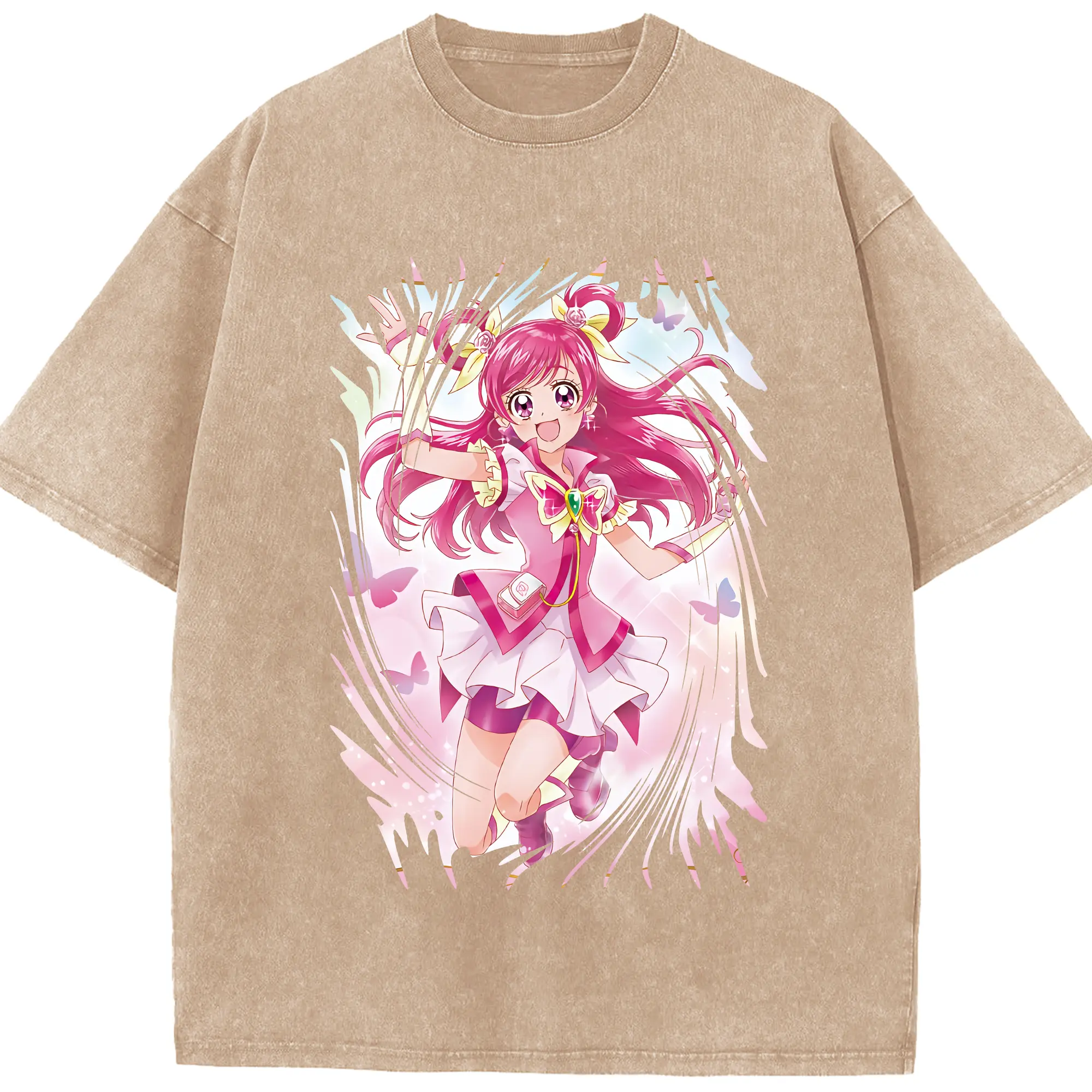 プリキュア グッズ,夢原のぞみ - 綿100% ヴィンテージ風 半袖Tシャツ ・ 背面プリント ・ 柔らか肌触り ・ 通気性 快適 ・ スポーツ カジュアル 外出用