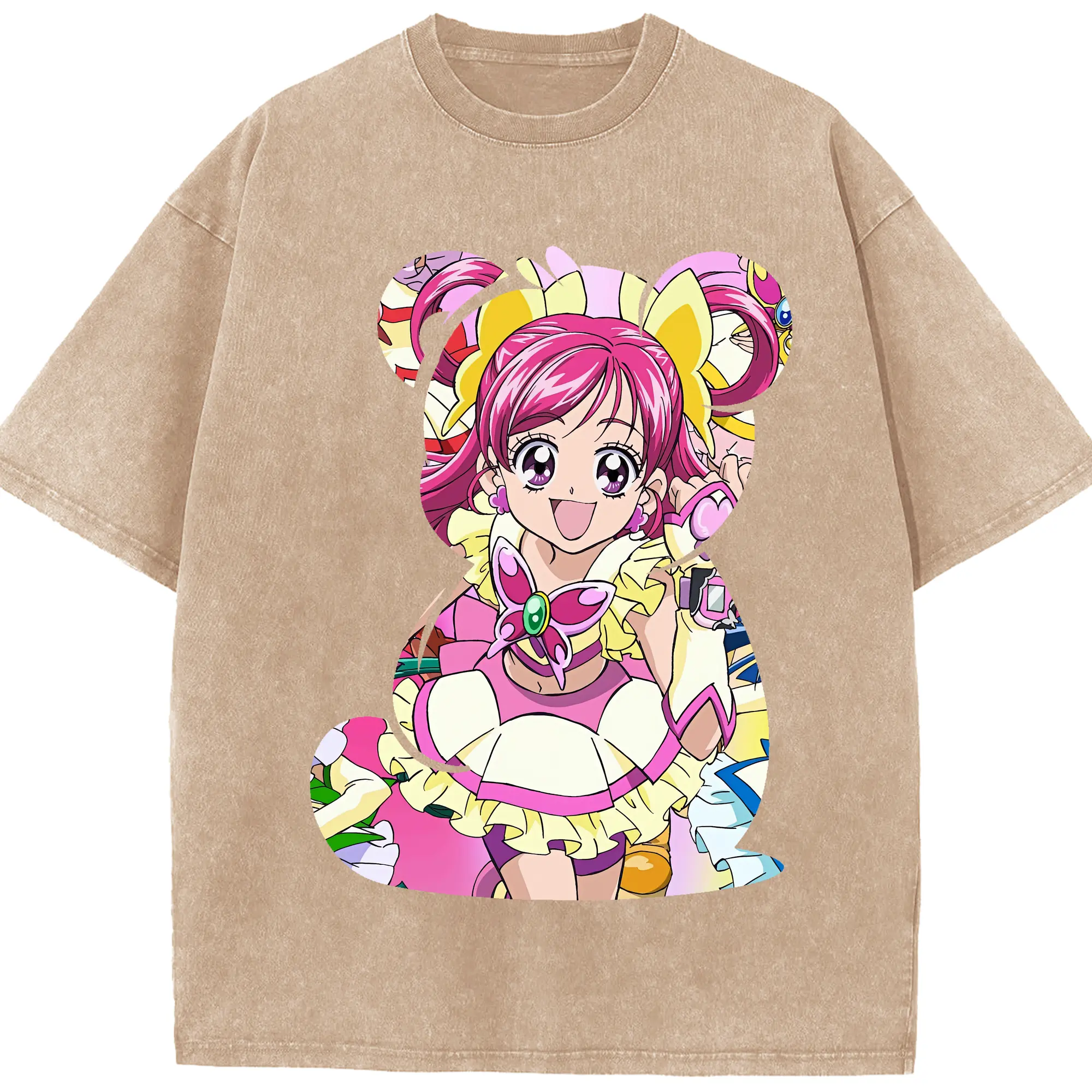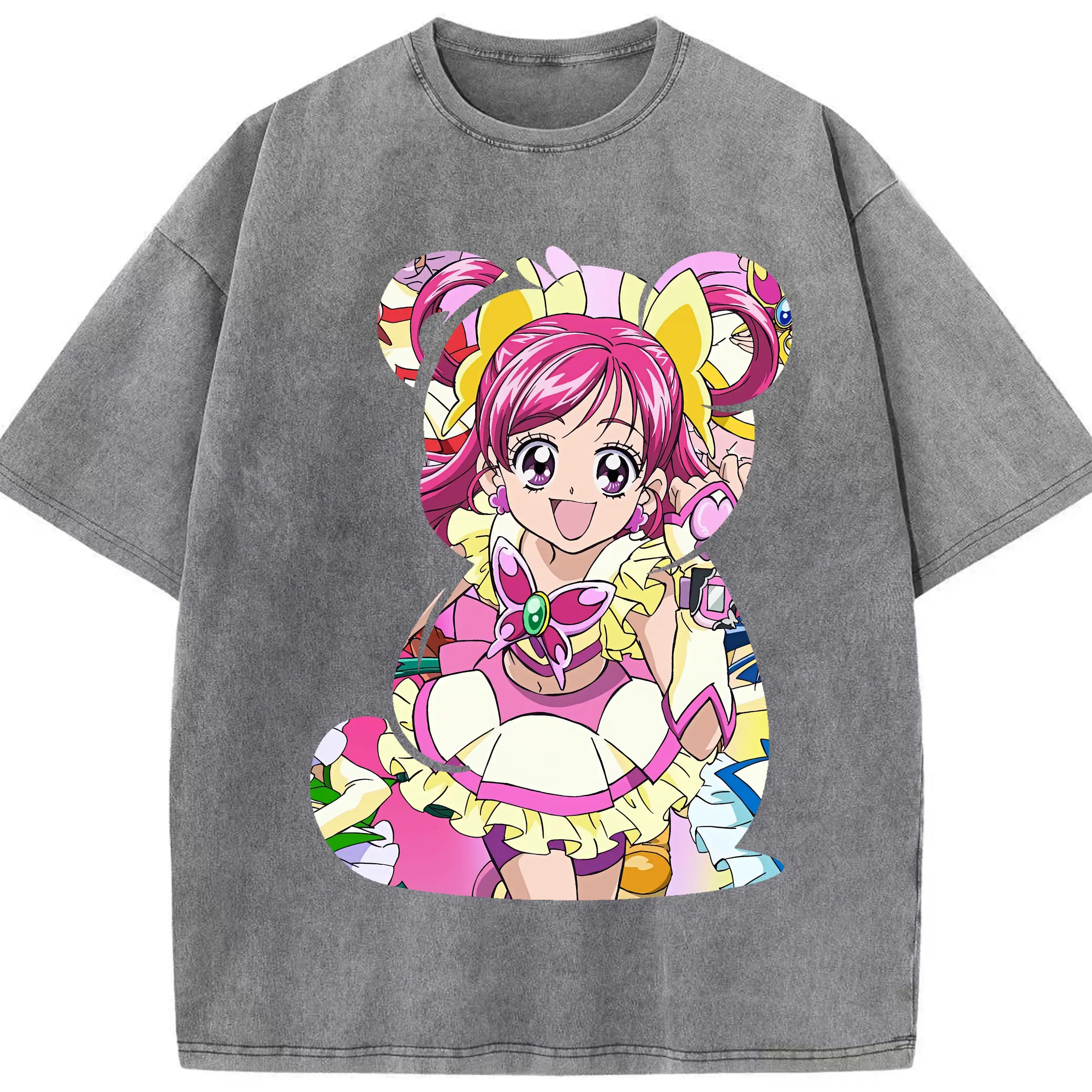 プリキュア グッズ,夢原のぞみ - 綿100% ヴィンテージ風 半袖Tシャツ ・ 背面プリント ・ 柔らか肌触り ・ 通気性 快適 ・ スポーツ カジュアル 外出用