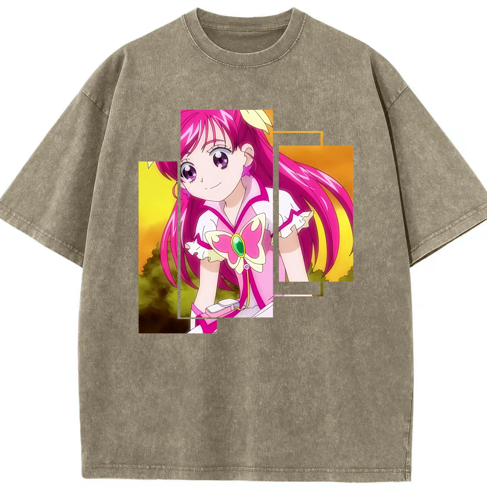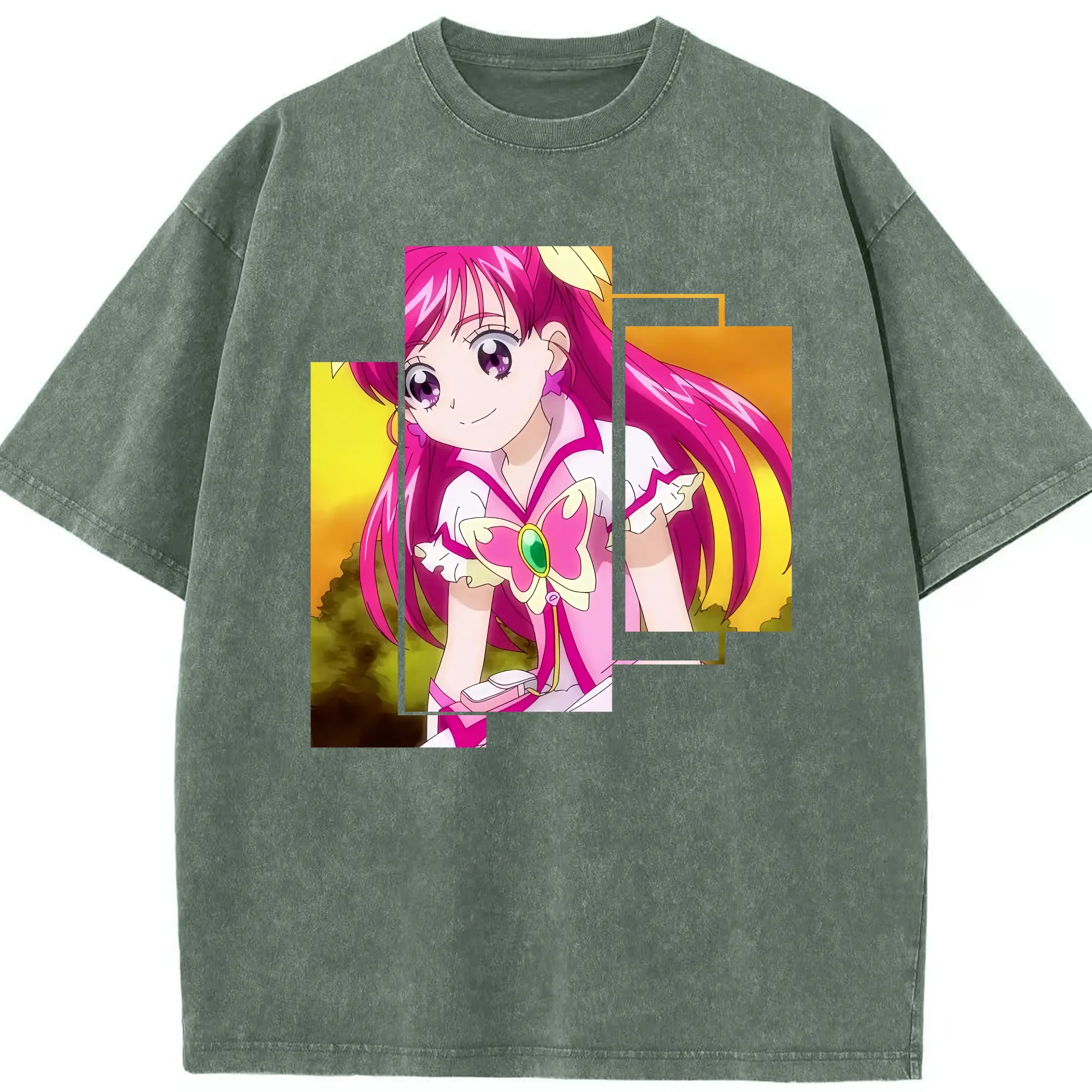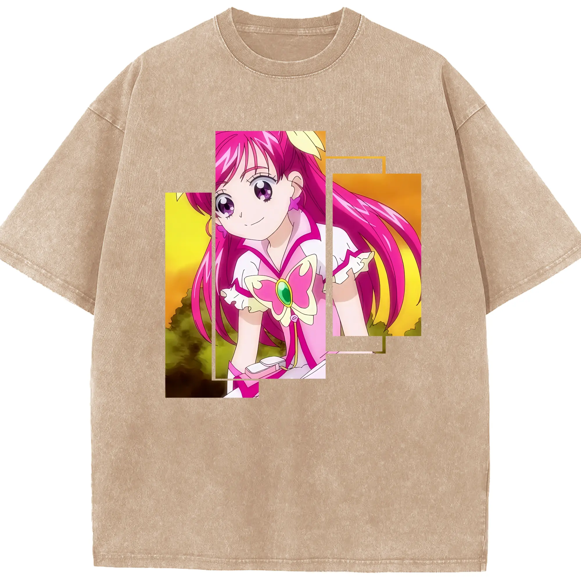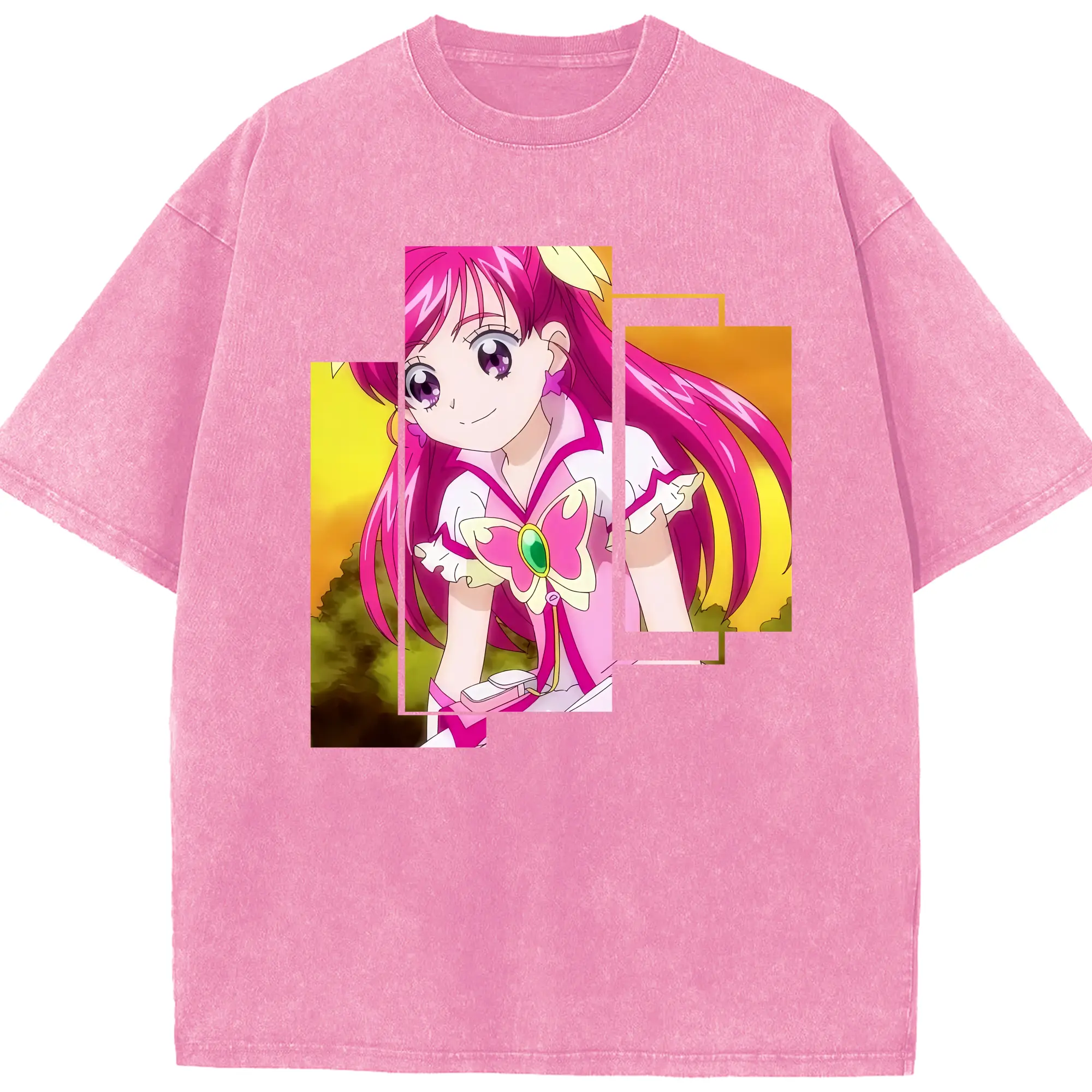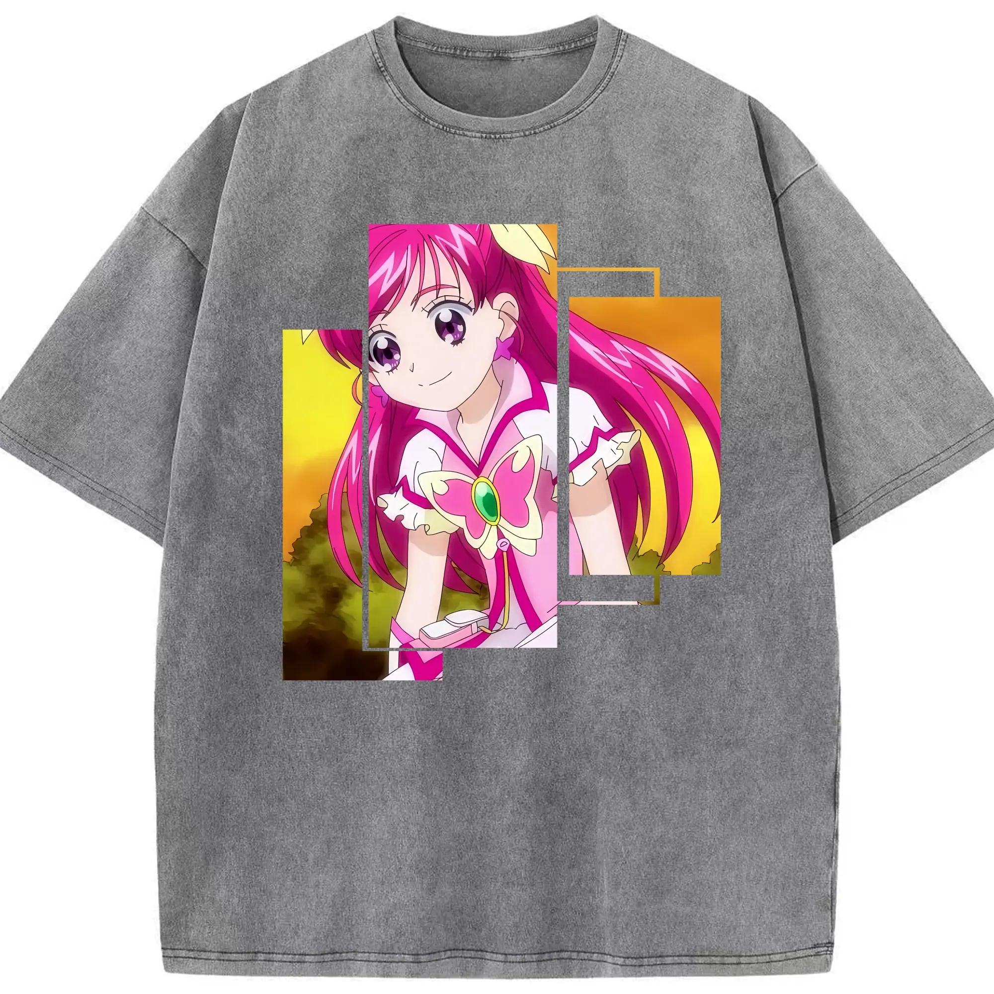 プリキュア グッズ,夢原のぞみ - 綿100% ヴィンテージ風 半袖Tシャツ ・ 背面プリント ・ 柔らか肌触り ・ 通気性 快適 ・ スポーツ カジュアル 外出用