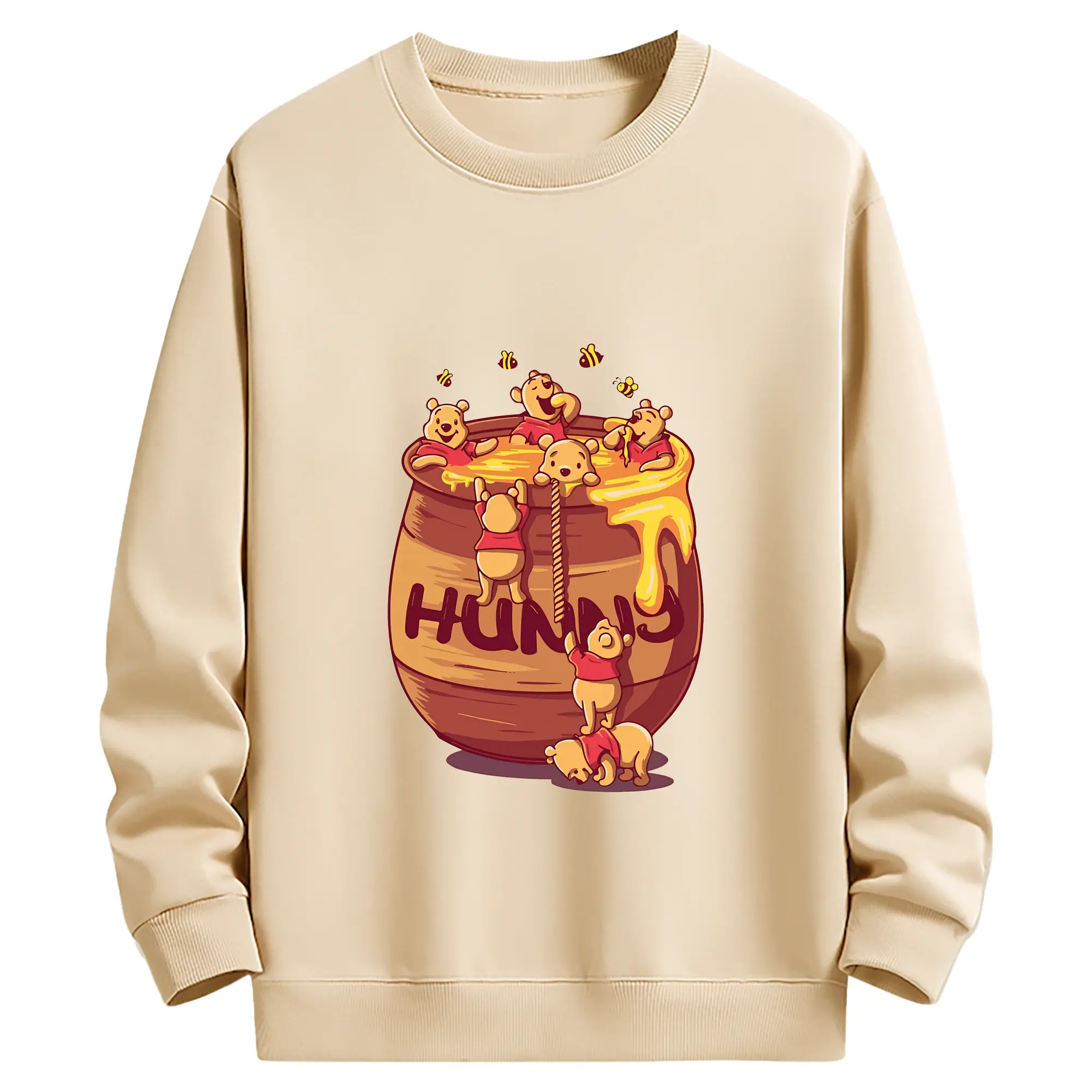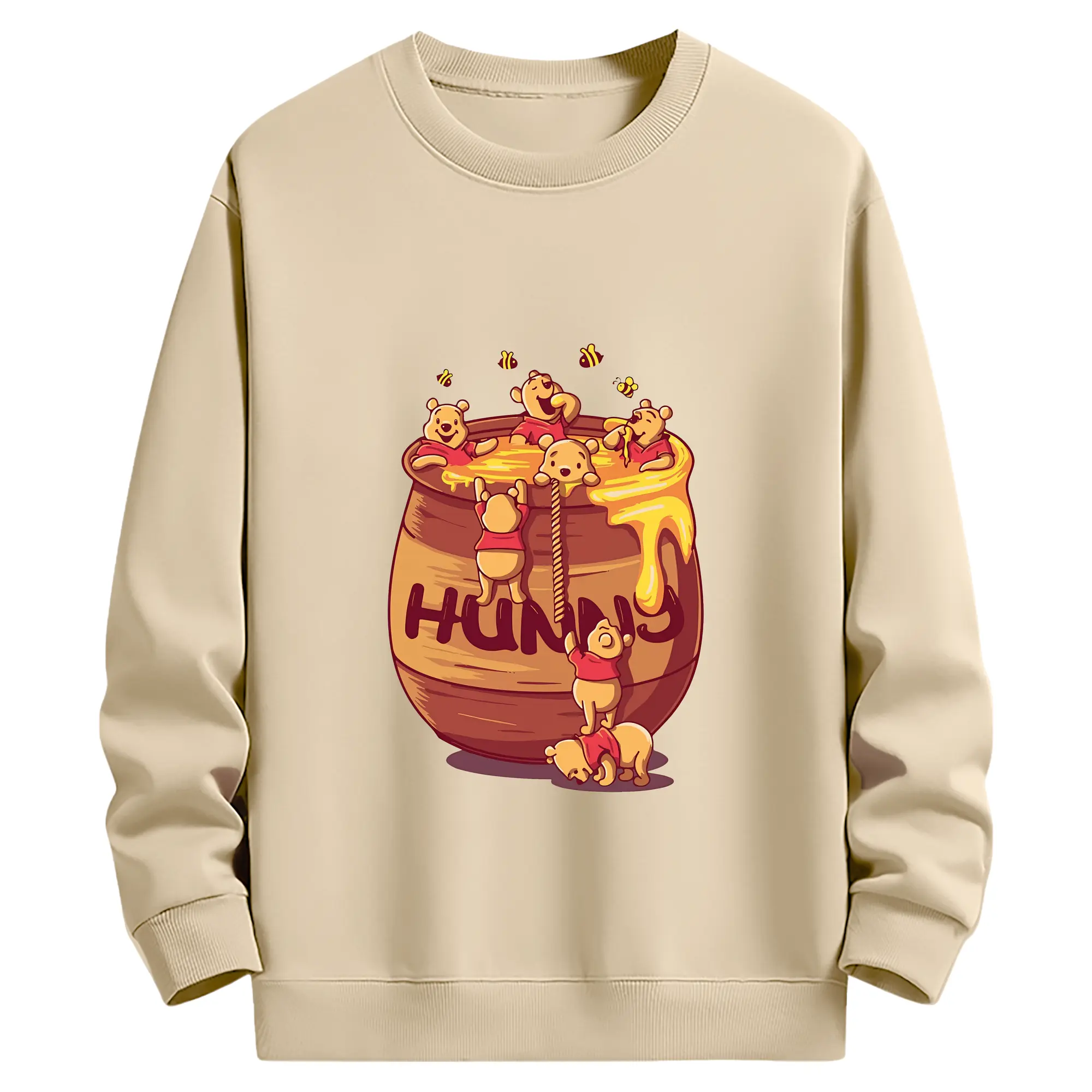 プーさん グッズ くまのプーさん - 薄手 クルーネック スウェット 裏毛260g · ポリエステル 春秋向け カジュアル 男女兼用 · トレーナー デイリー スポーツ 散歩に最適