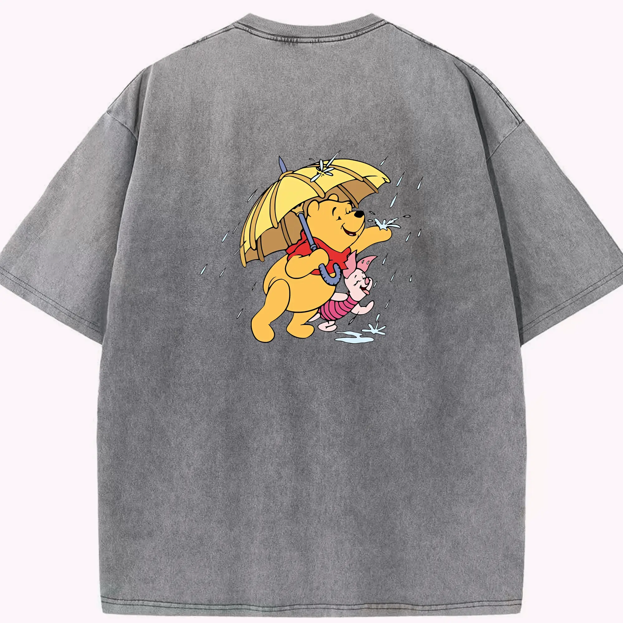 プーさん グッズ ラビット - 綿100% ヴィンテージ風 半袖Tシャツ ・ 背面プリント ・ 柔らか肌触り ・ 通気性 快適 ・ スポーツ カジュアル 外出用