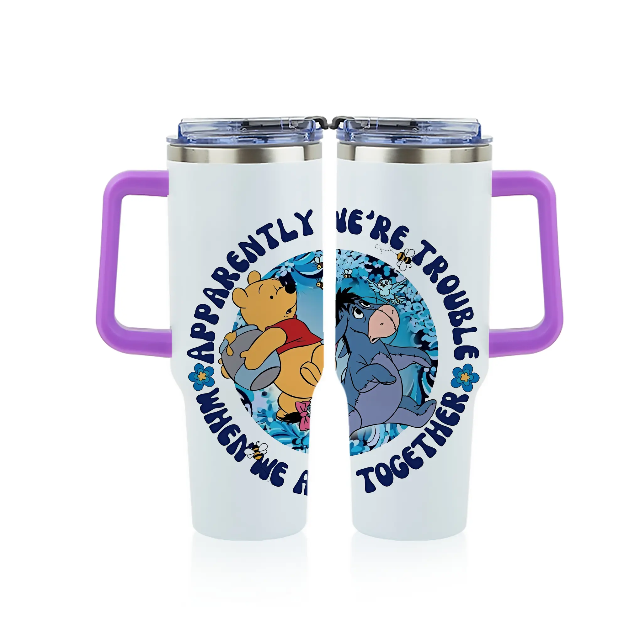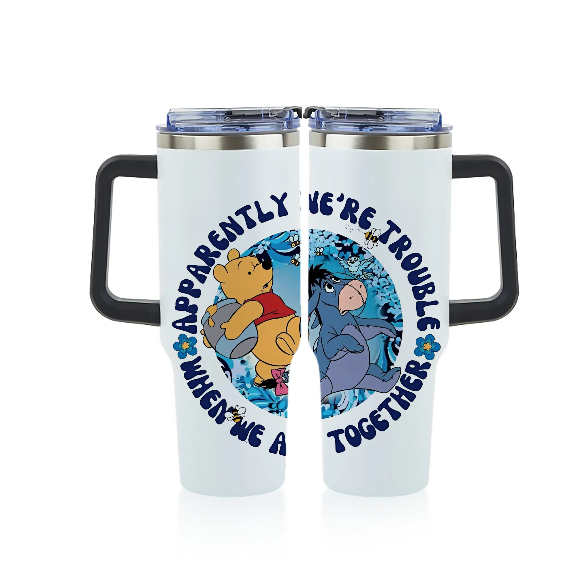 プーさん グッズ イーヨー - 1200mL フルプリント車用タンブラー ・ 304ステンレス 内側 ・ 201ステンレス 外側 ・ 保温 保冷 ・ 通勤 ドライブ アウトドア用