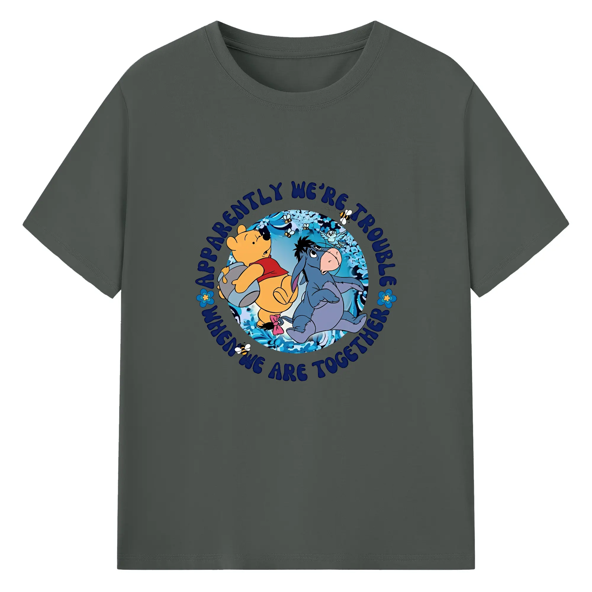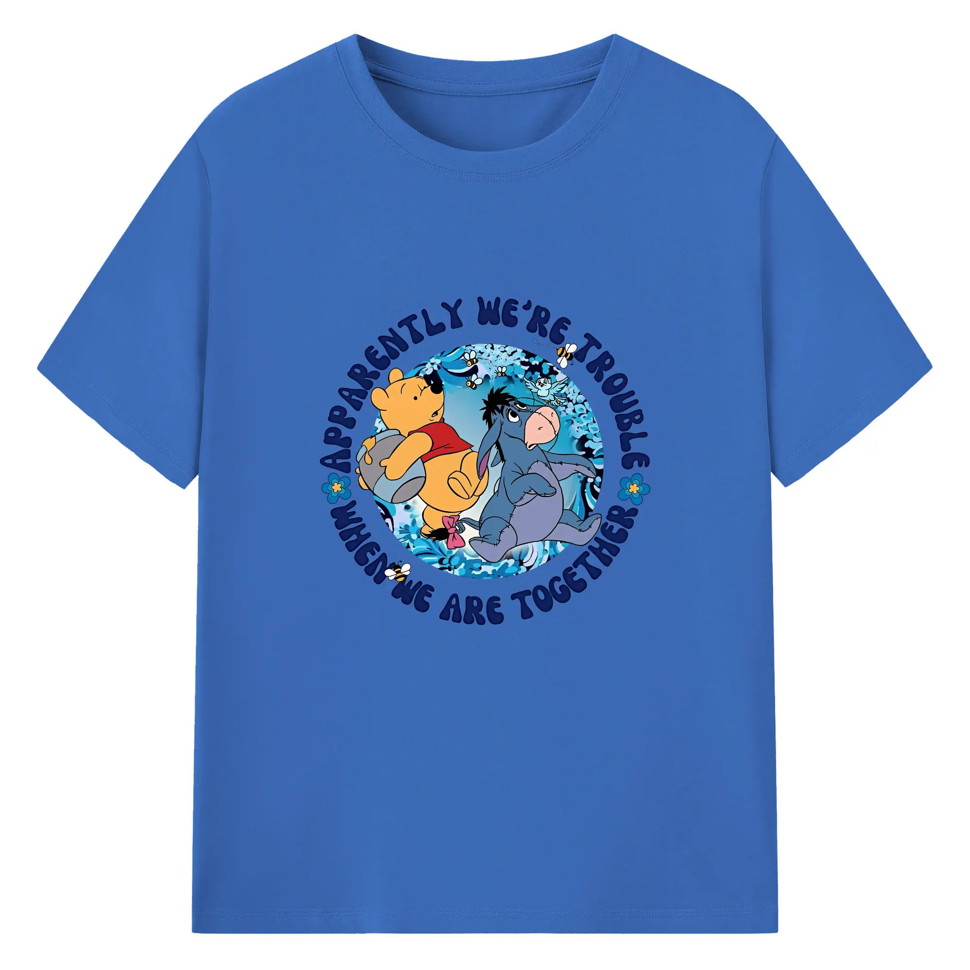 プーさん グッズ イーヨー - 綿100% 半袖Tシャツ ・ バックプリント ・ 快適 通気性 ・ 日常使い 散歩 スポーツ用