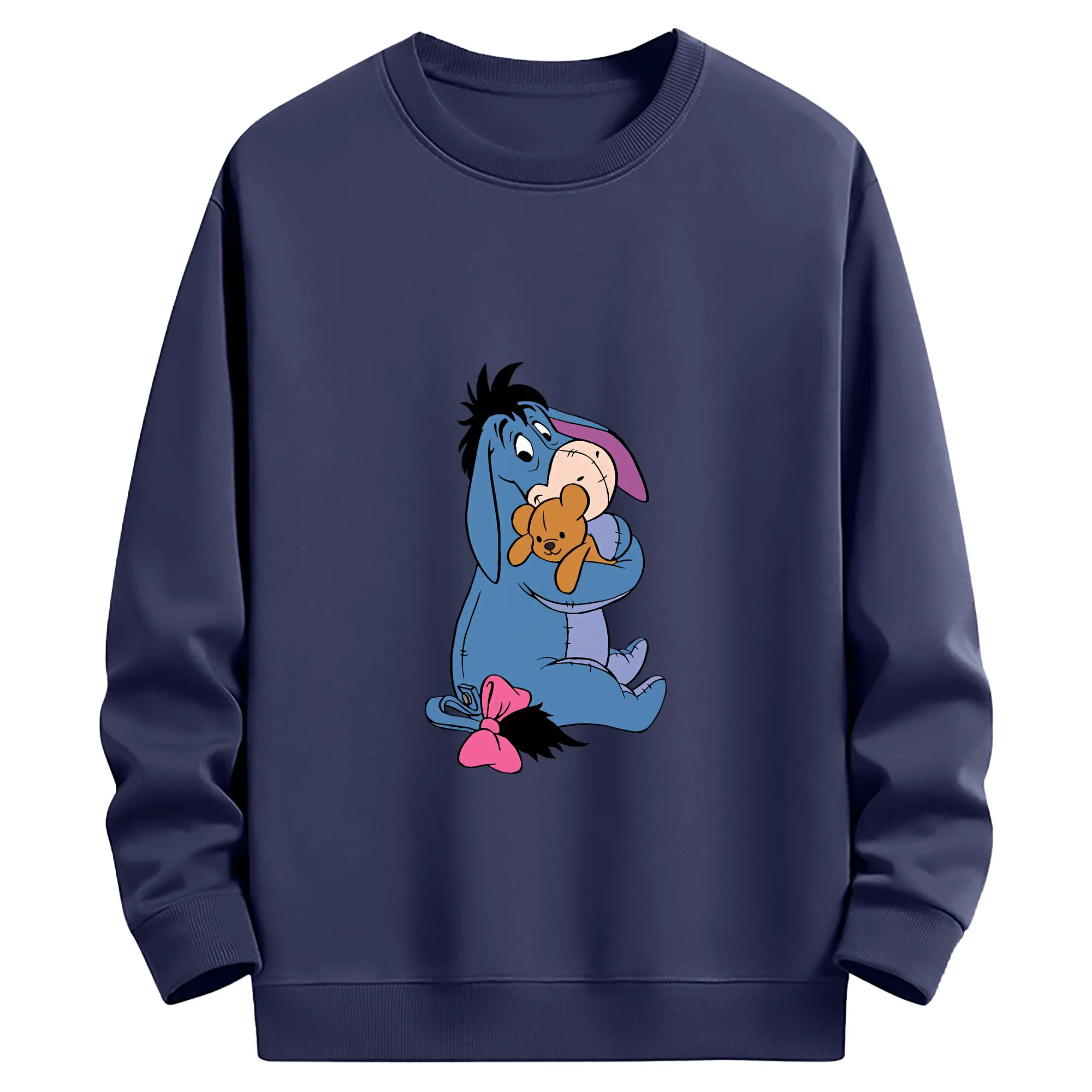 プーさん グッズ イーヨー - 薄手 クルーネック スウェット 裏毛260g · ポリエステル 春秋向け カジュアル 男女兼用 · トレーナー デイリー スポーツ 散歩に最適