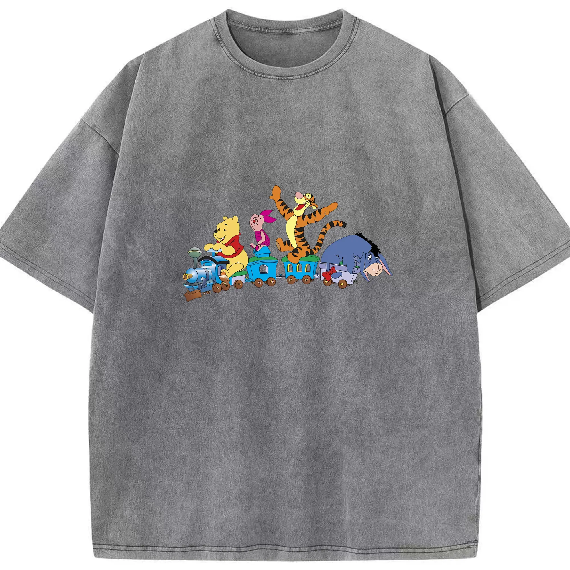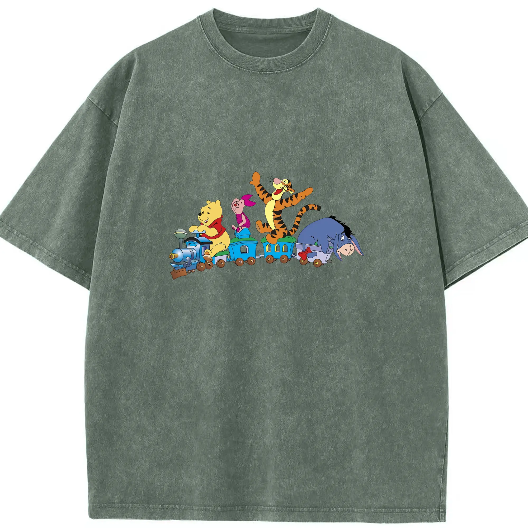 プーさん グッズ イーヨー - 綿100% ヴィンテージ風 半袖Tシャツ ・ 背面プリント ・ 柔らか肌触り ・ 通気性 快適 ・ スポーツ カジュアル 外出用