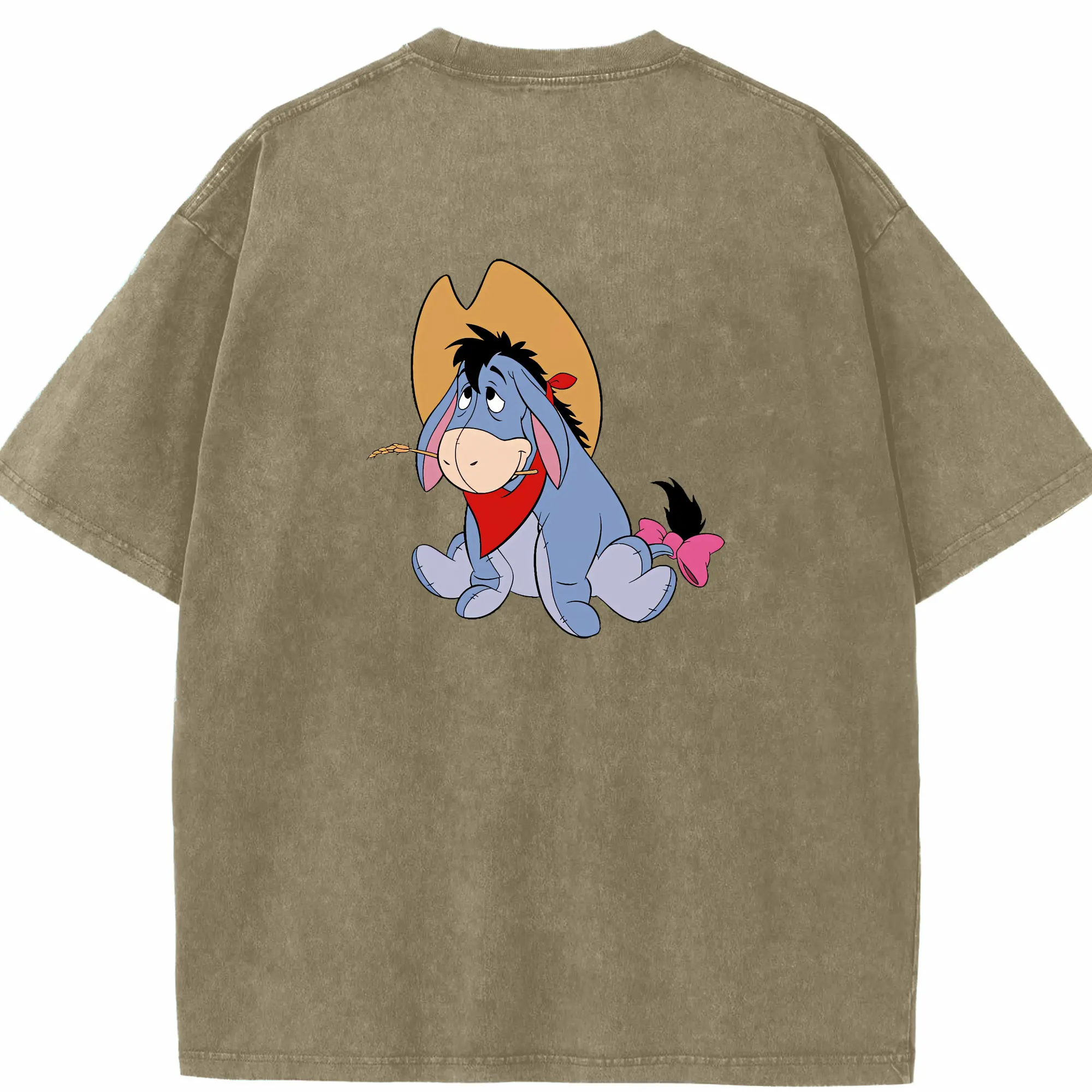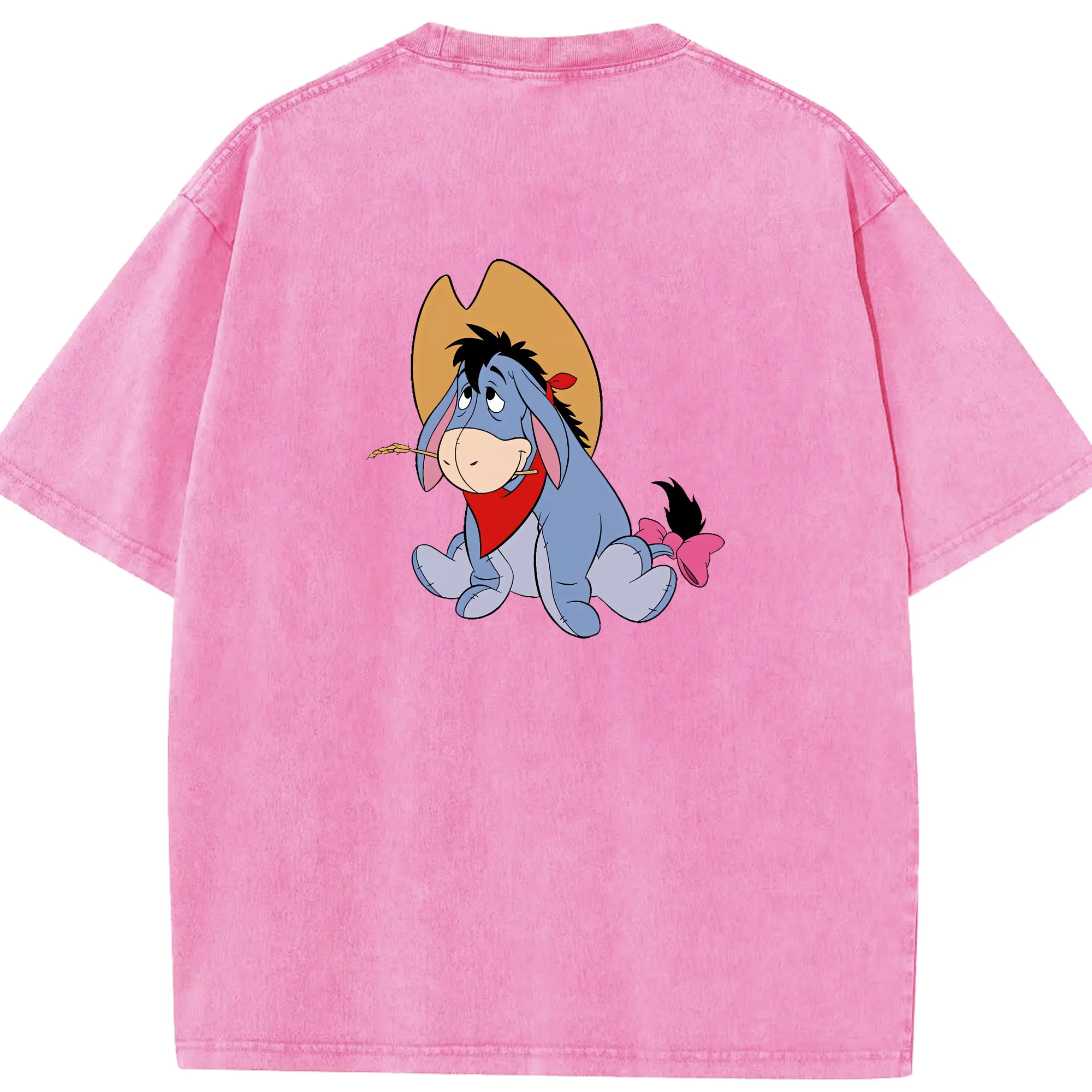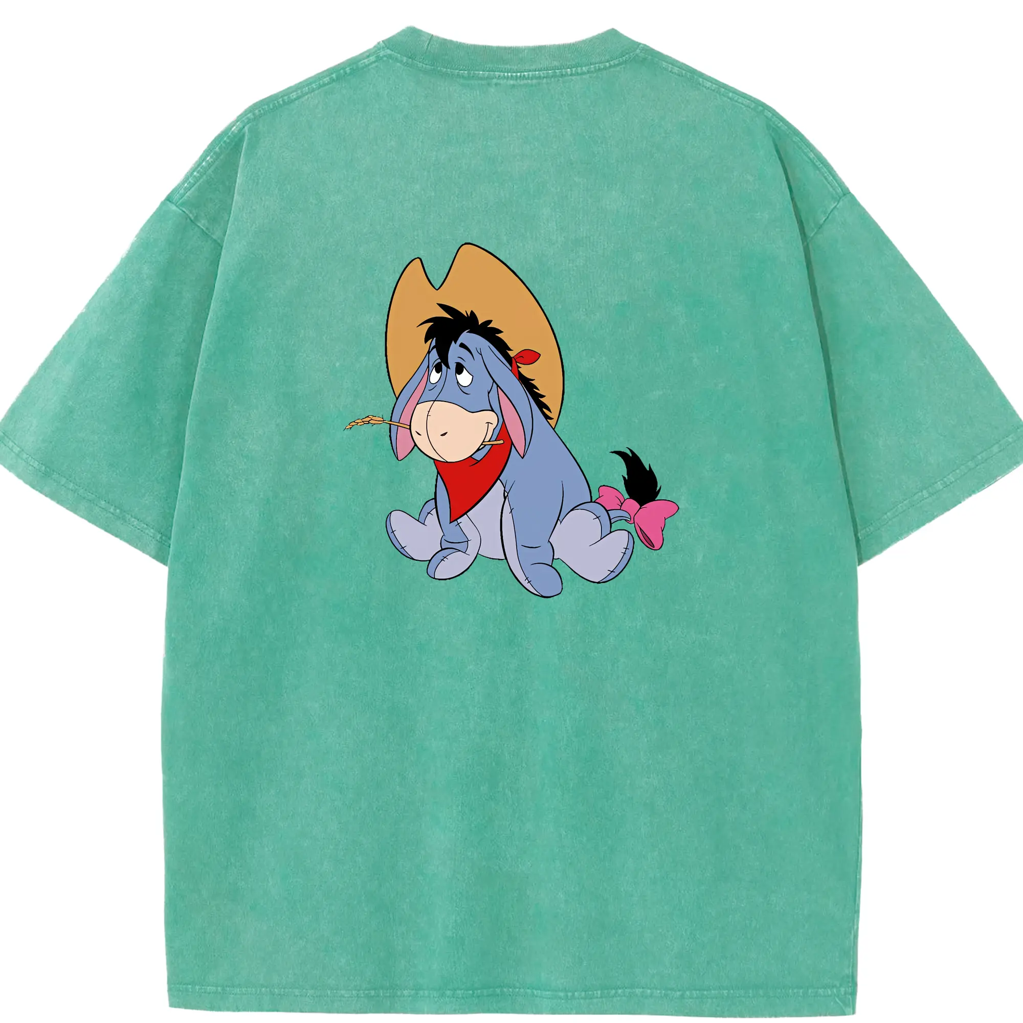 プーさん グッズ イーヨー - 綿100% ヴィンテージ風 半袖Tシャツ ・ フロントプリント ・ 柔らか肌触り ・ 通気性 快適 ・ スポーツ カジュアル 外出用