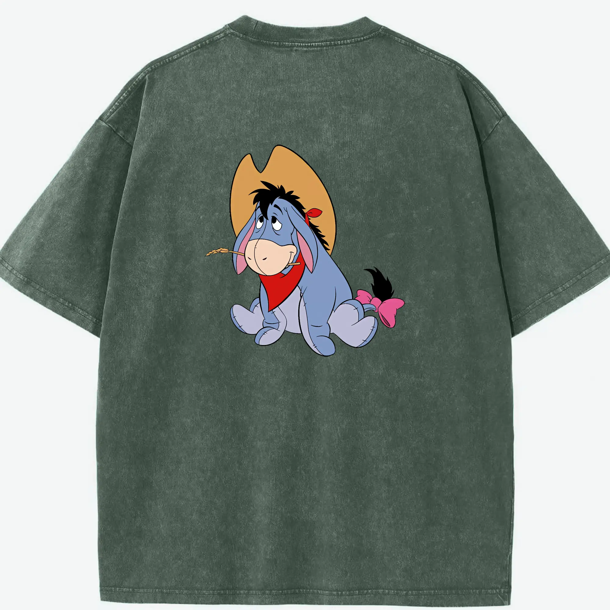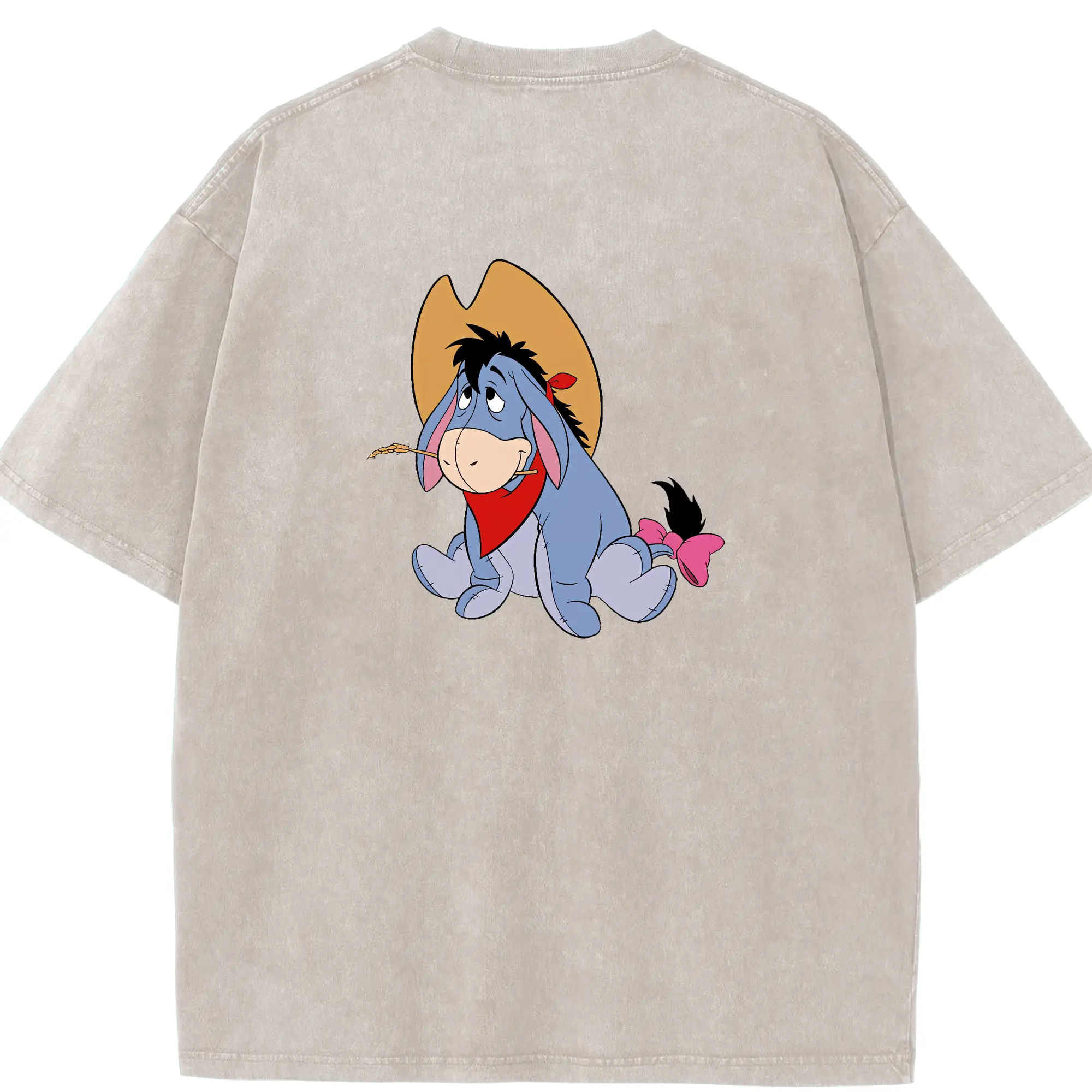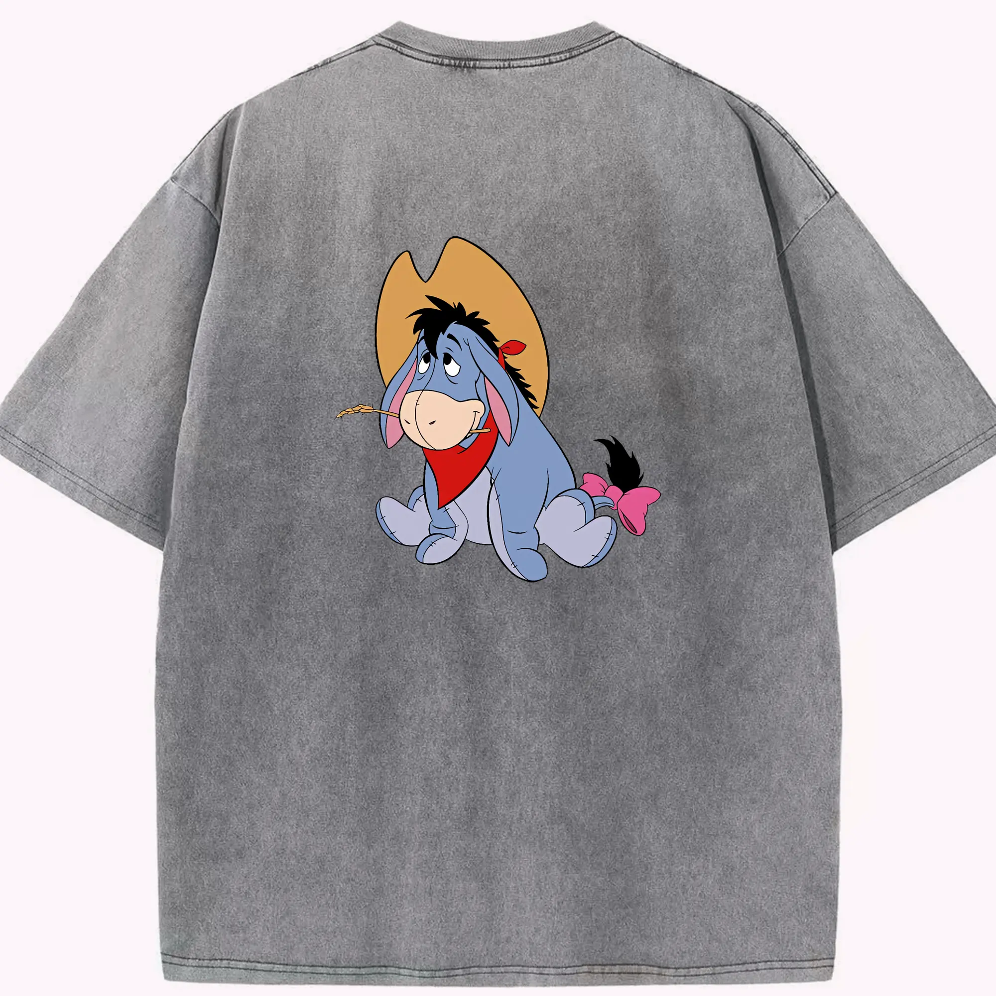 プーさん グッズ イーヨー - 綿100% ヴィンテージ風 半袖Tシャツ ・ フロントプリント ・ 柔らか肌触り ・ 通気性 快適 ・ スポーツ カジュアル 外出用