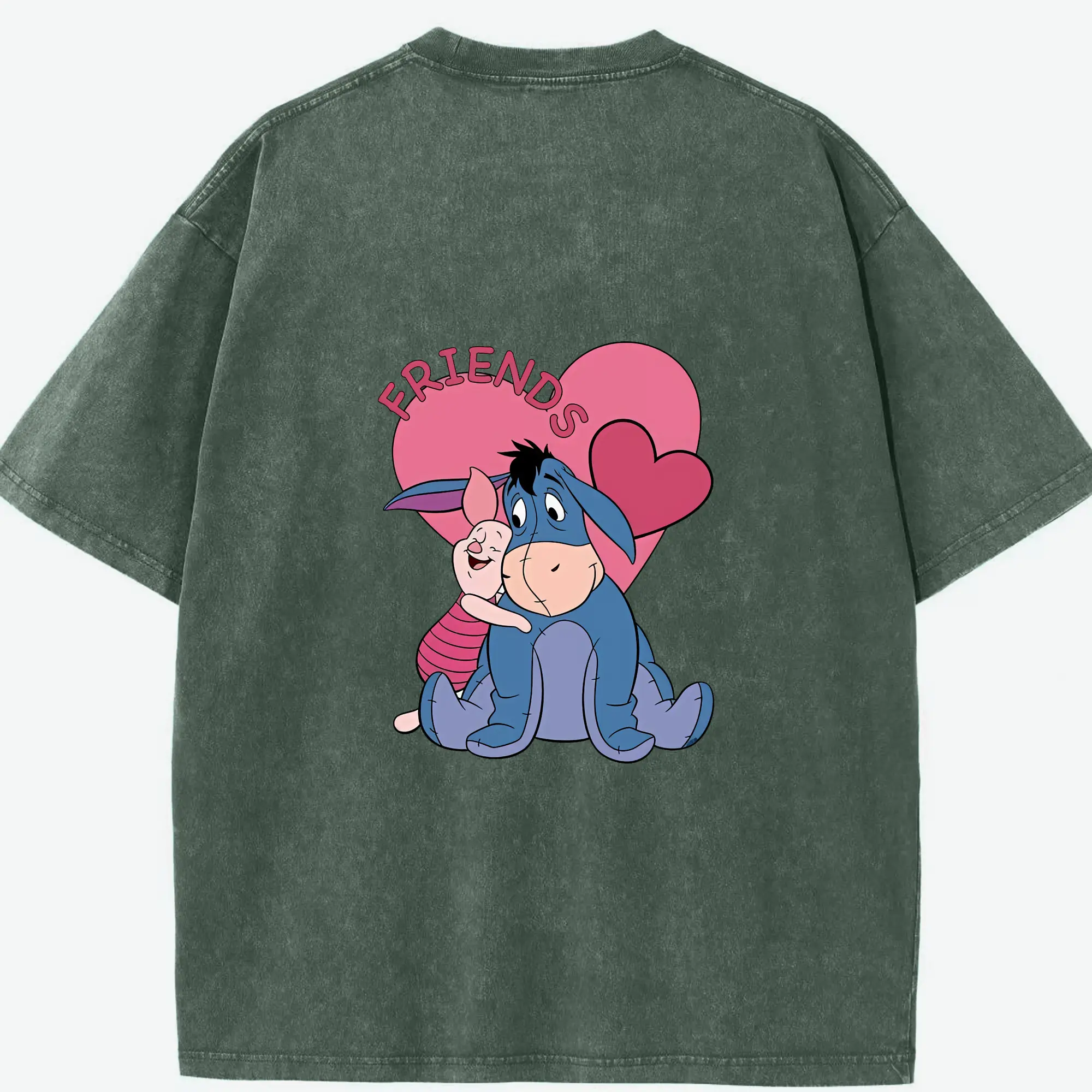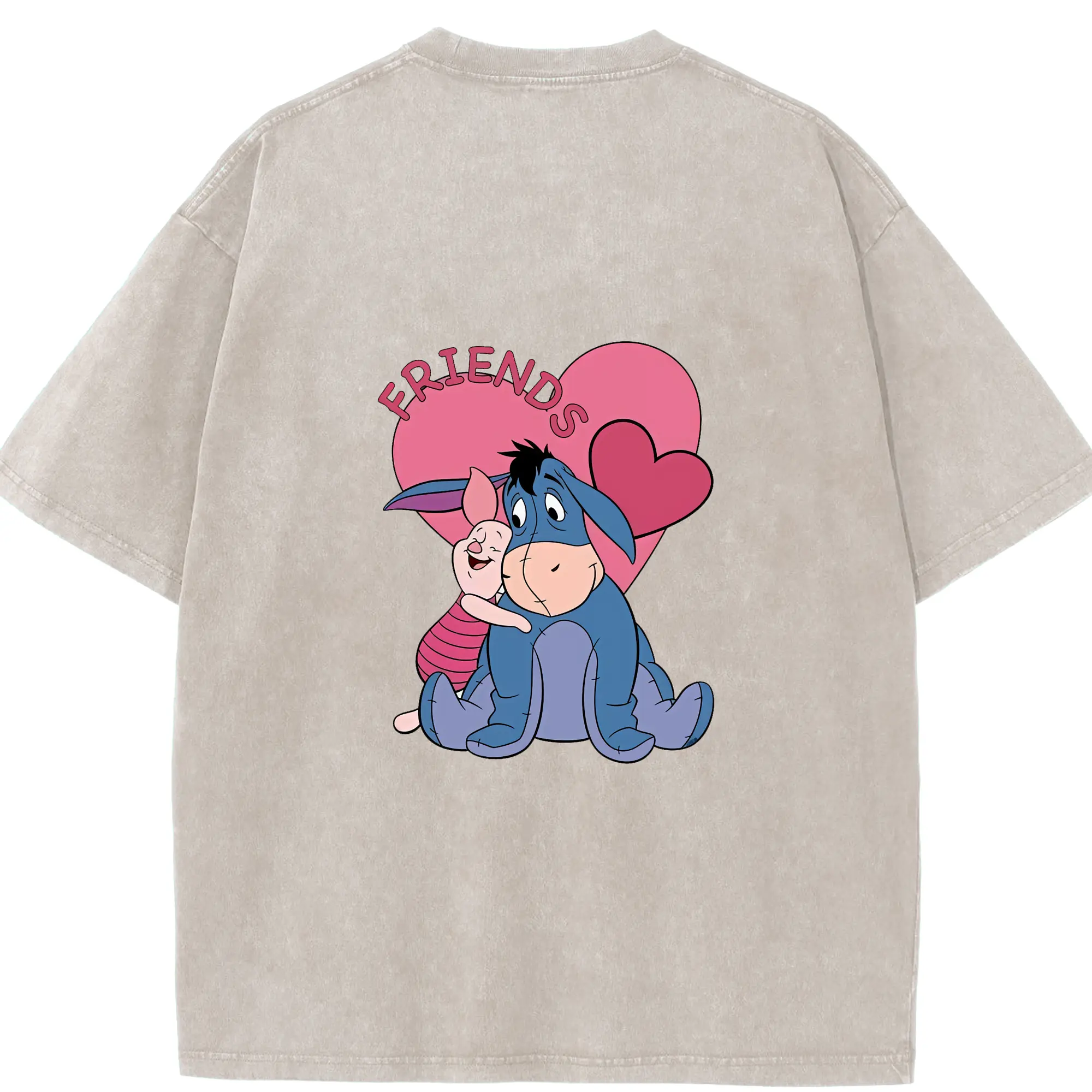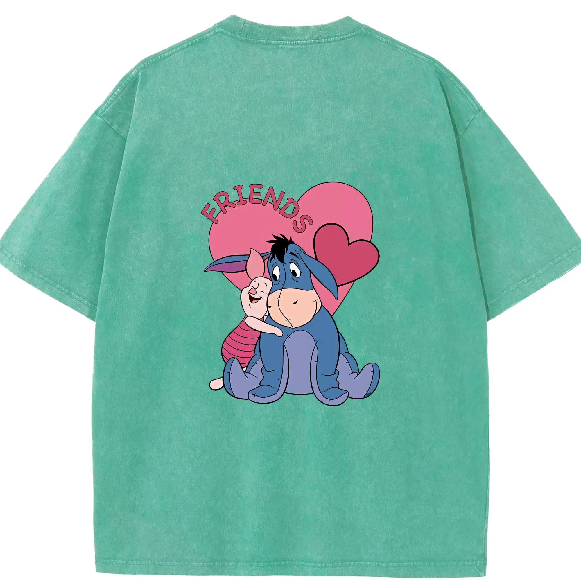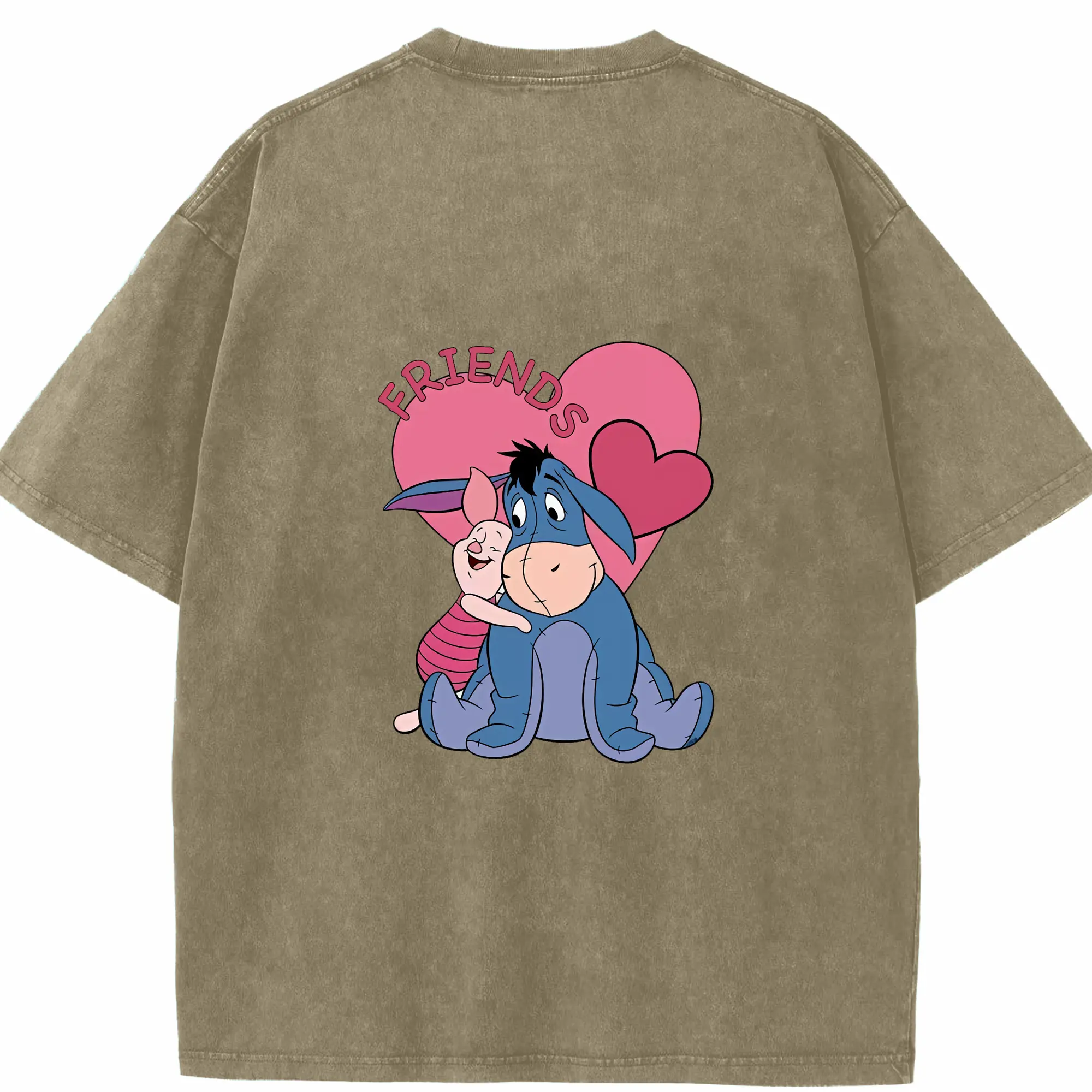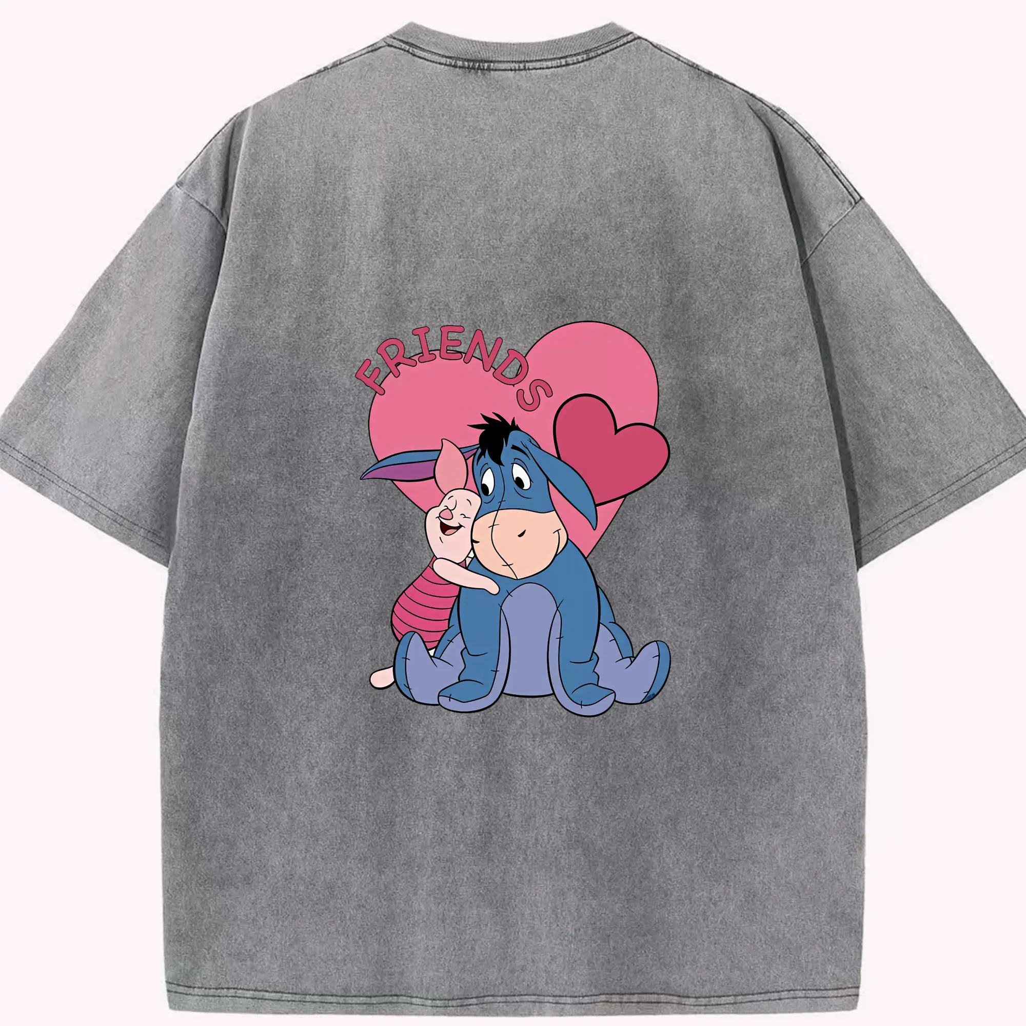 プーさん グッズ イーヨー - 綿100% ヴィンテージ風 半袖Tシャツ ・ フロントプリント ・ 柔らか肌触り ・ 通気性 快適 ・ スポーツ カジュアル 外出用