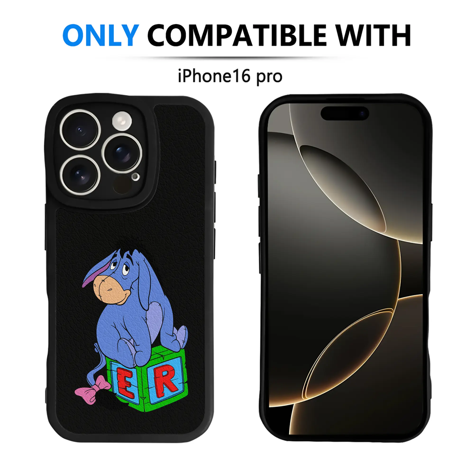 プーさん グッズ イーヨー - IPhone 16シリーズ対応 ・ シリコンスマホケース ・ レザー調 ・ 高精度フィット ・ 耐衝撃 ・ ワイヤレス充電対応 ・ 精密カット