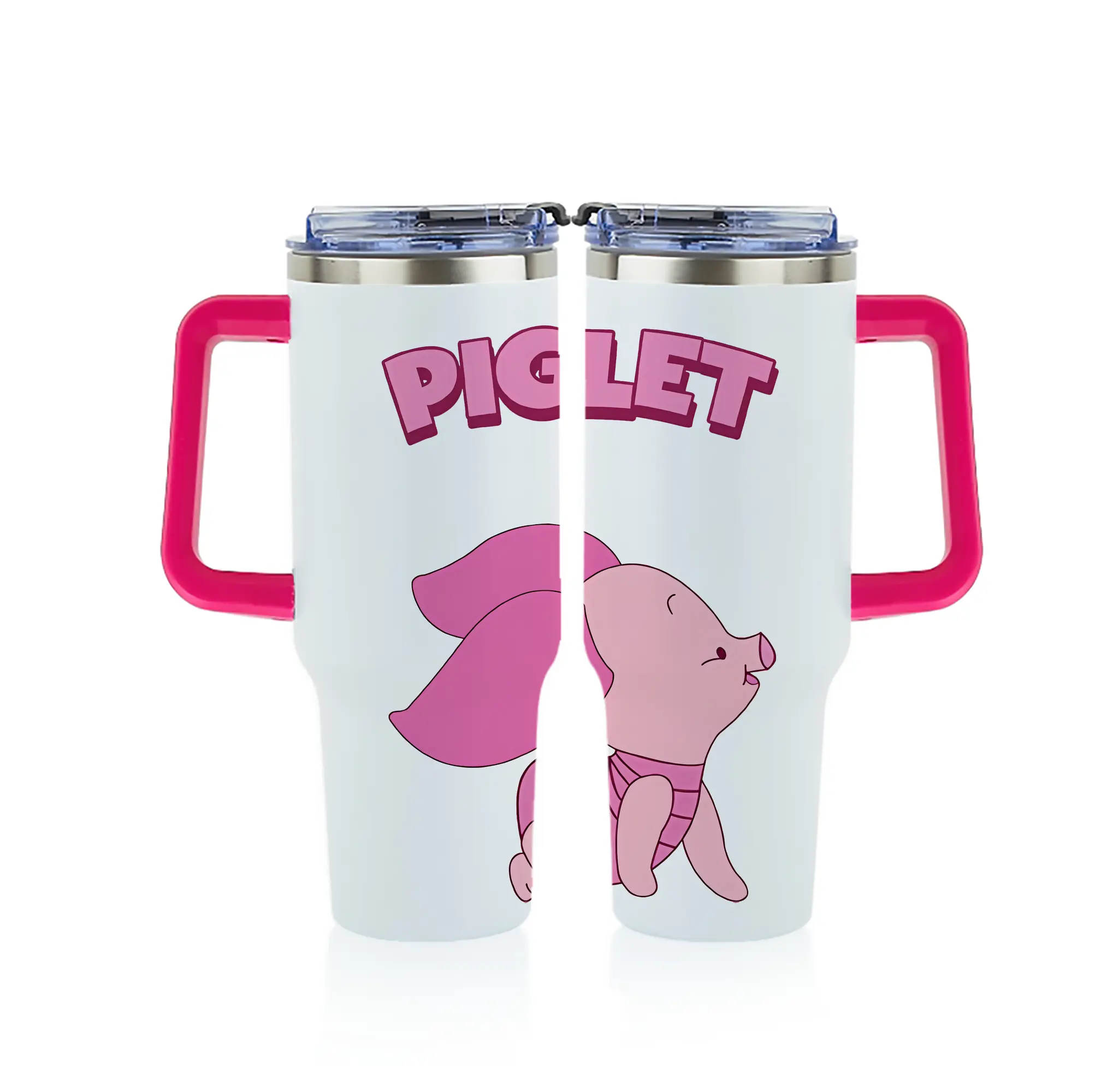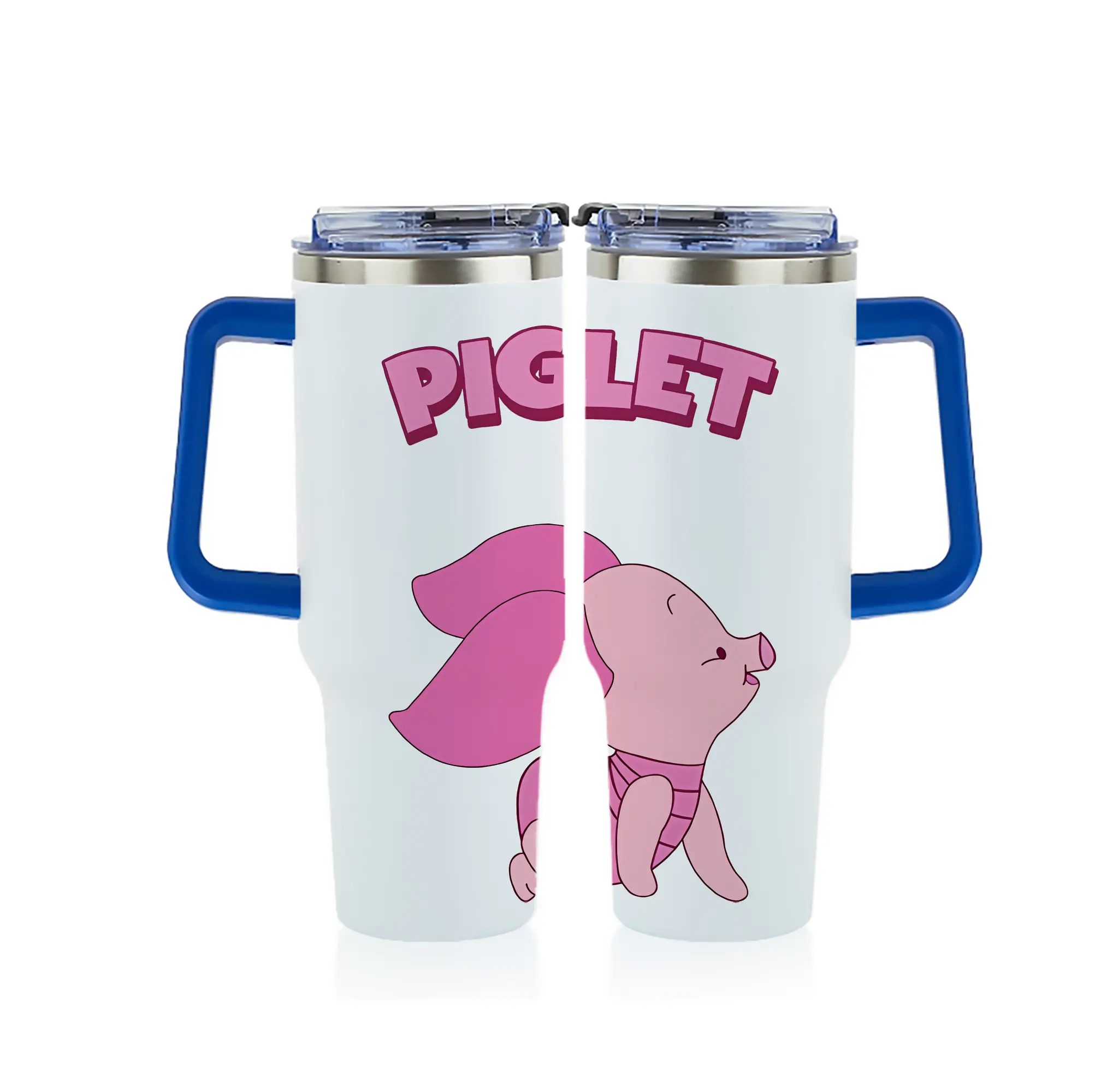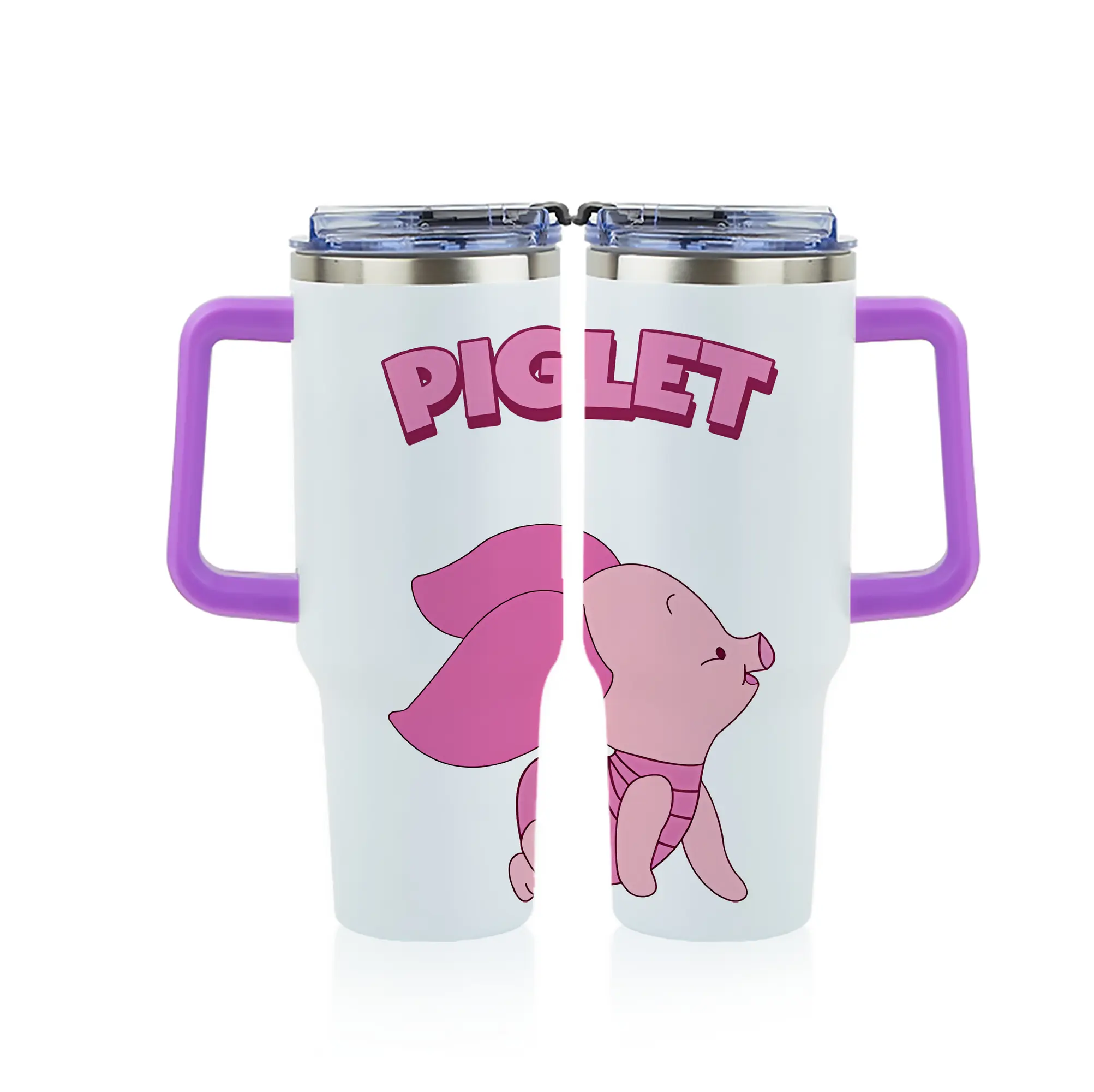 プーさん グッズ ピグレット - 1200mL フルプリント車用タンブラー ・ 304ステンレス 内側 ・ 201ステンレス 外側 ・ 保温 保冷 ・ 通勤 ドライブ アウトドア用