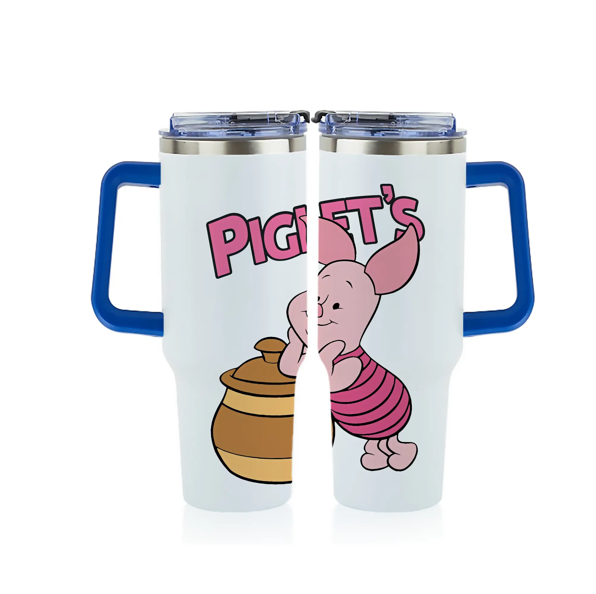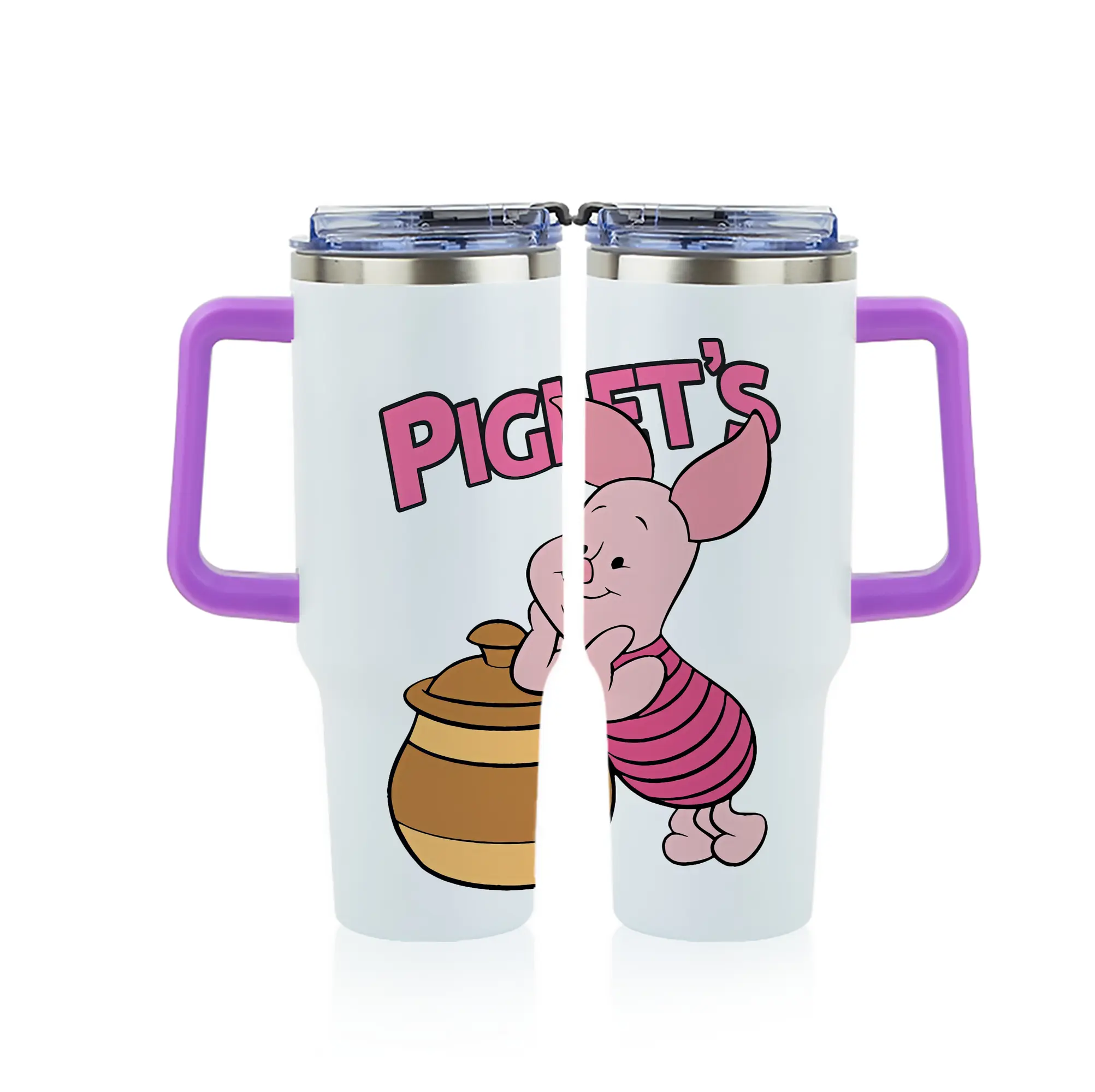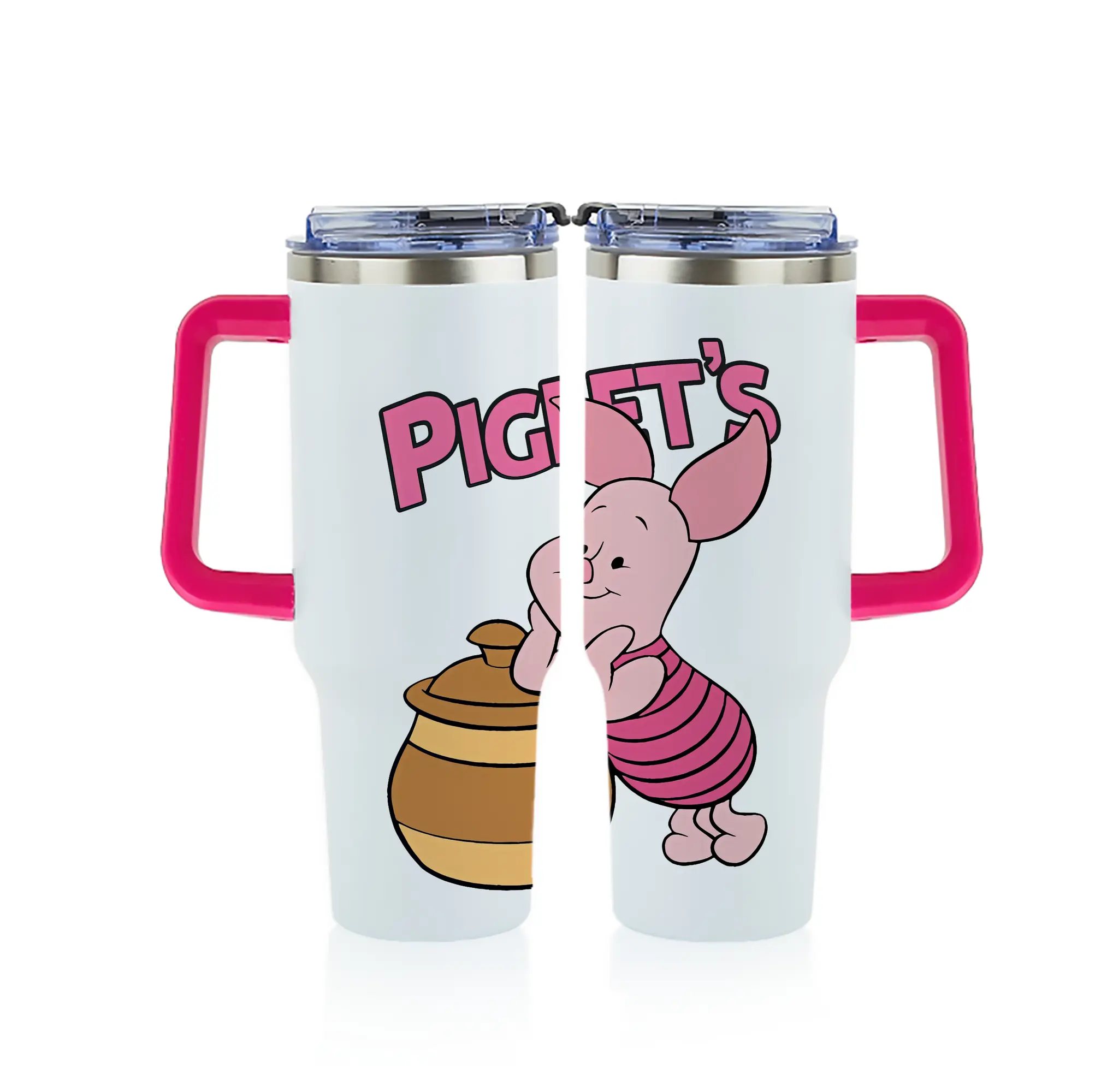 プーさん グッズ ピグレット - 1200mL フルプリント車用タンブラー ・ 304ステンレス 内側 ・ 201ステンレス 外側 ・ 保温 保冷 ・ 通勤 ドライブ アウトドア用