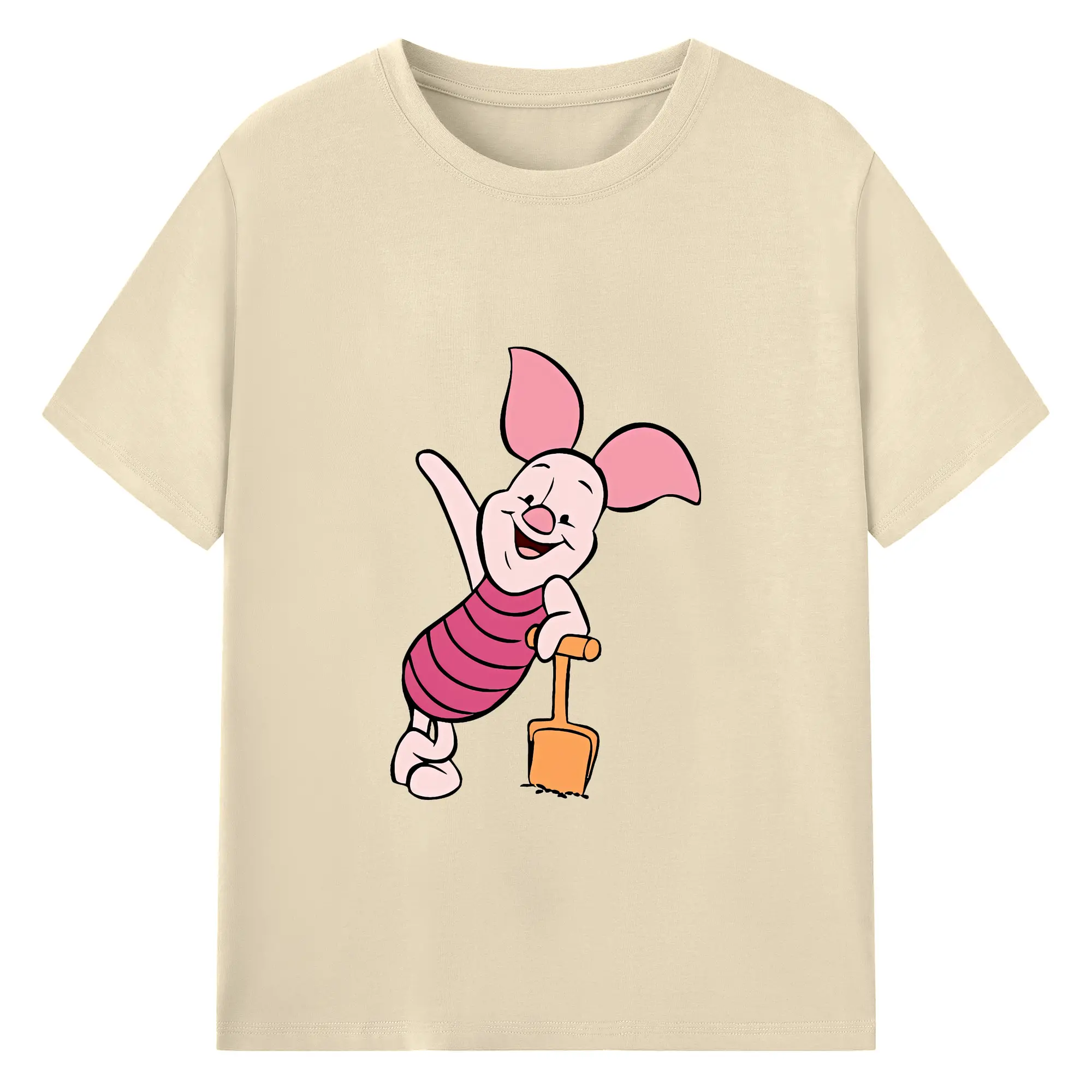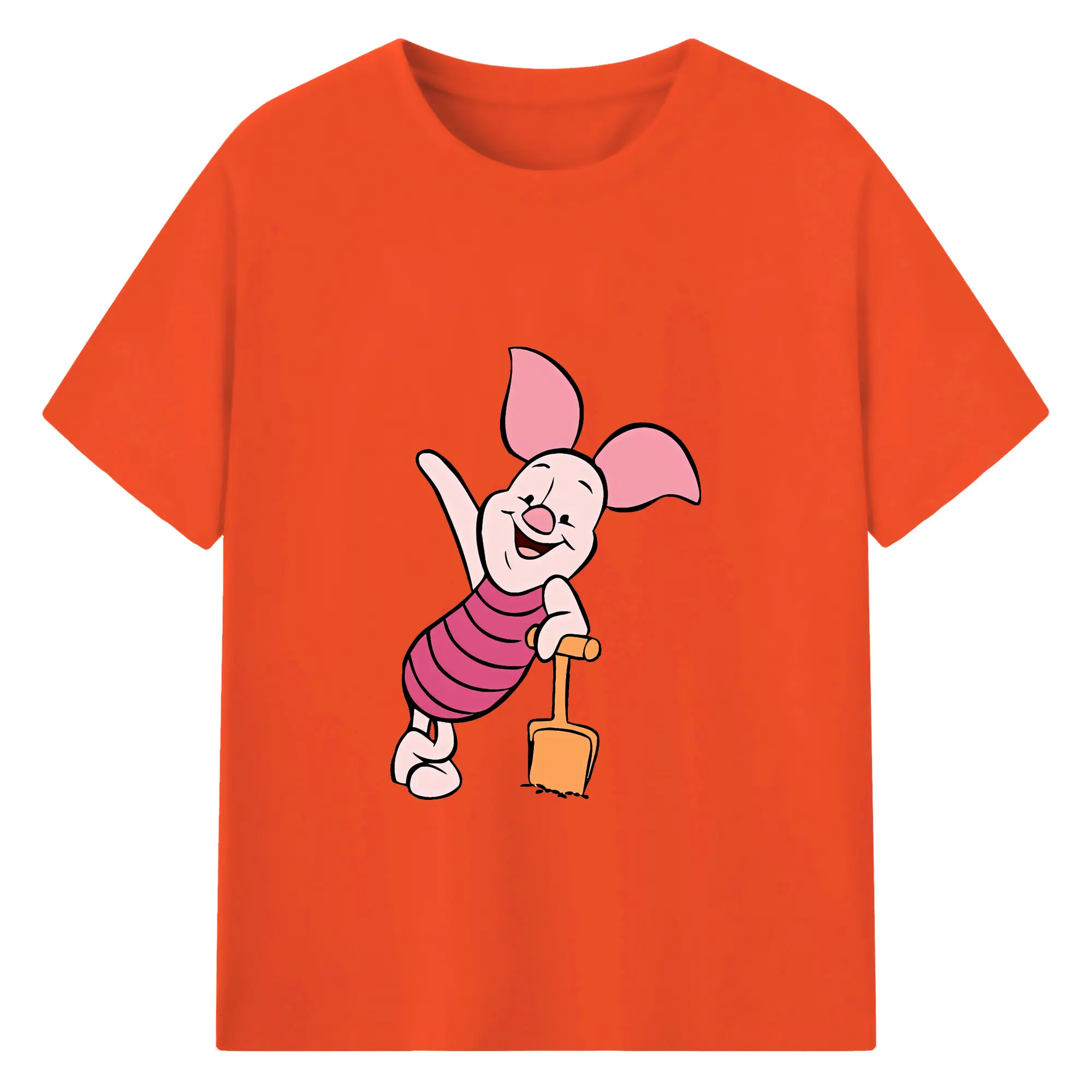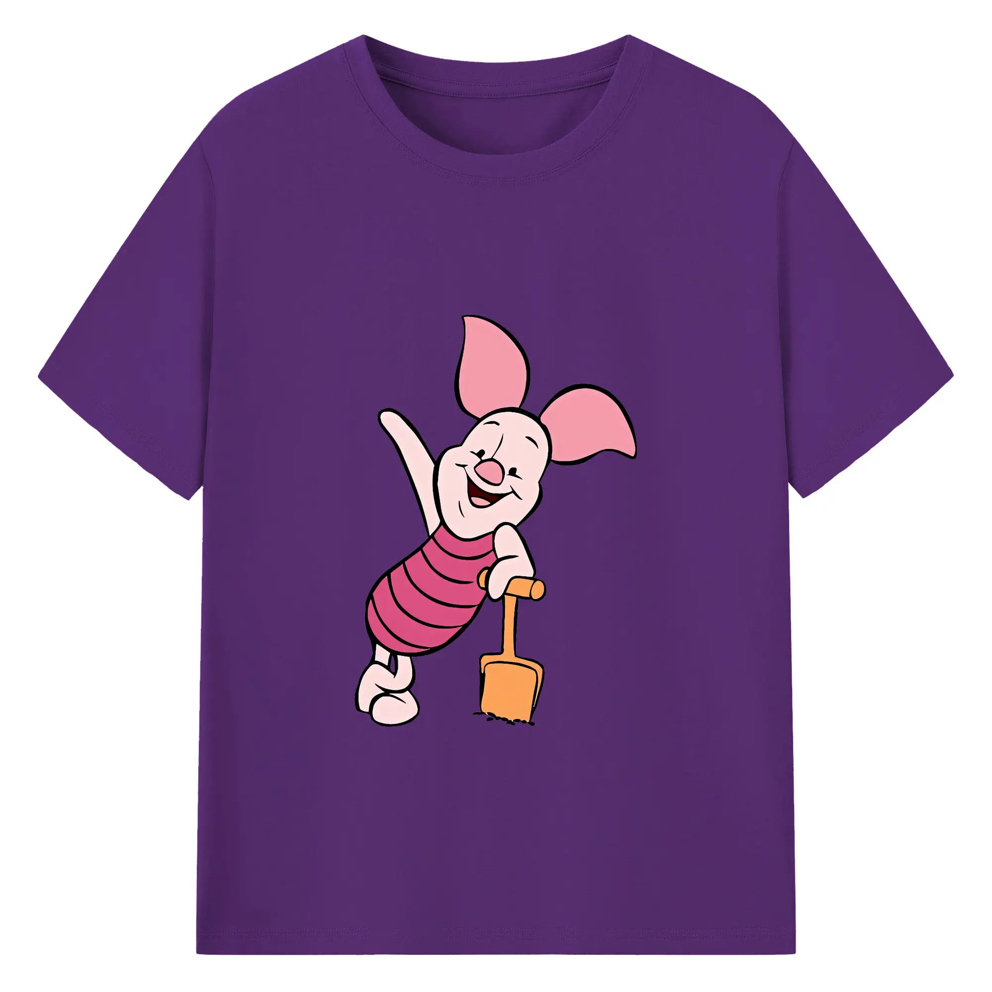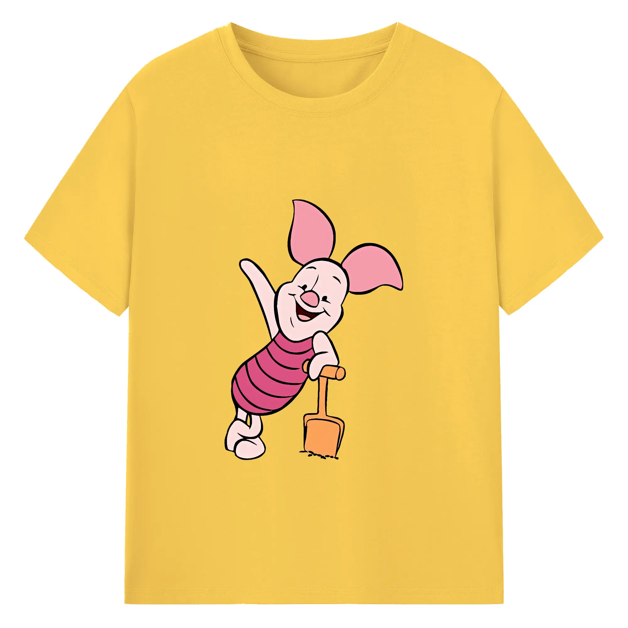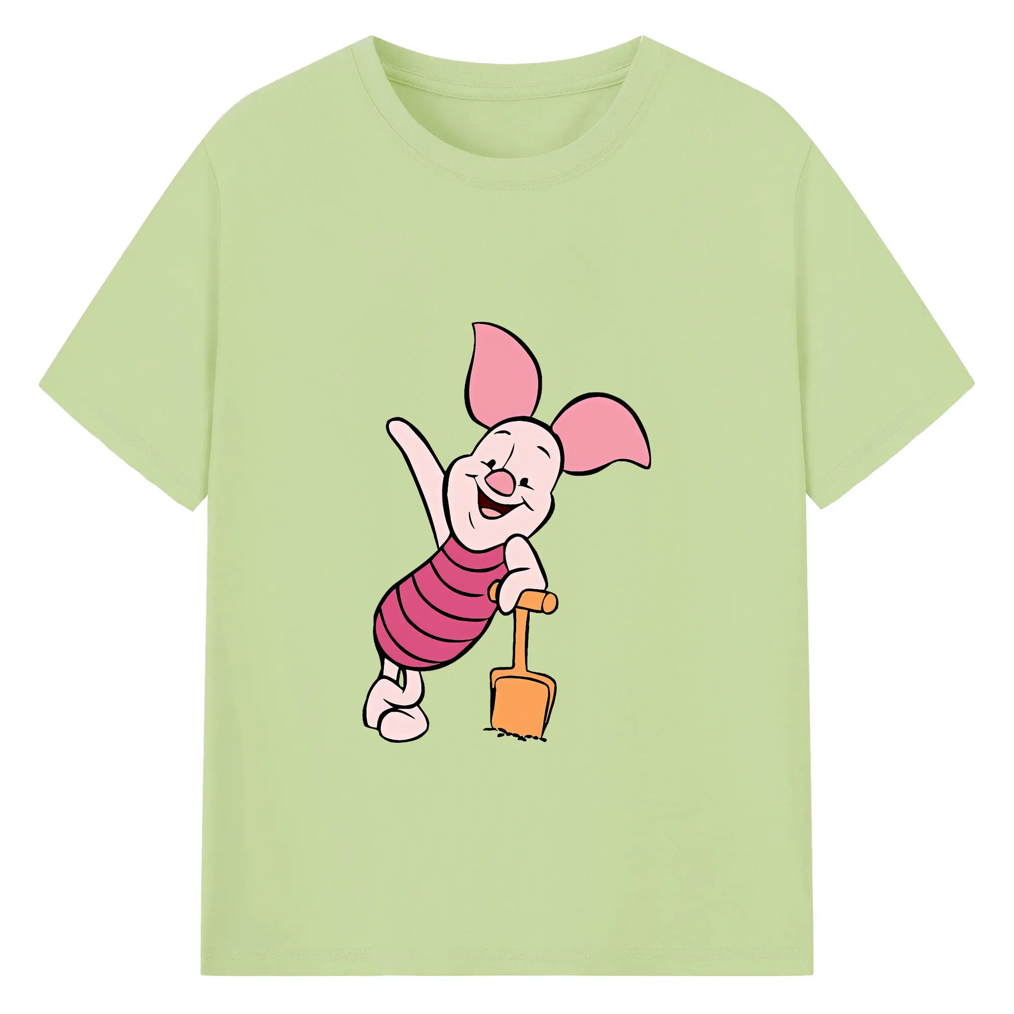 プーさん グッズ ピグレット - 綿100% 半袖Tシャツ ・ バックプリント ・ 快適 通気性 ・ 日常使い 散歩 スポーツ用