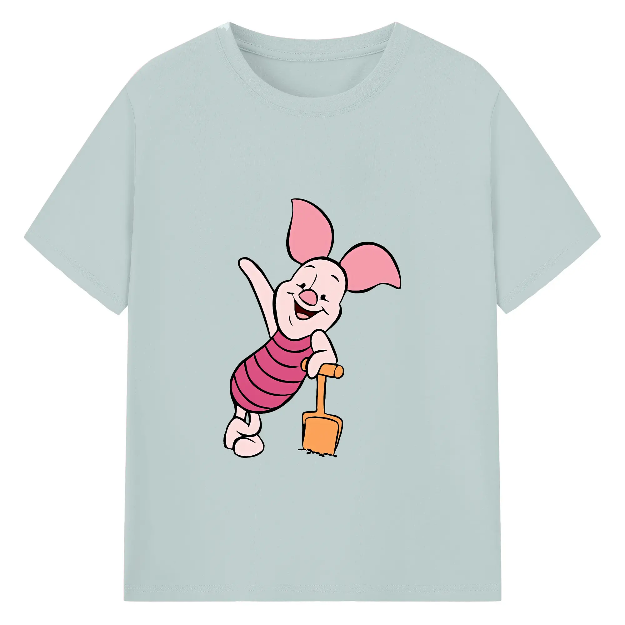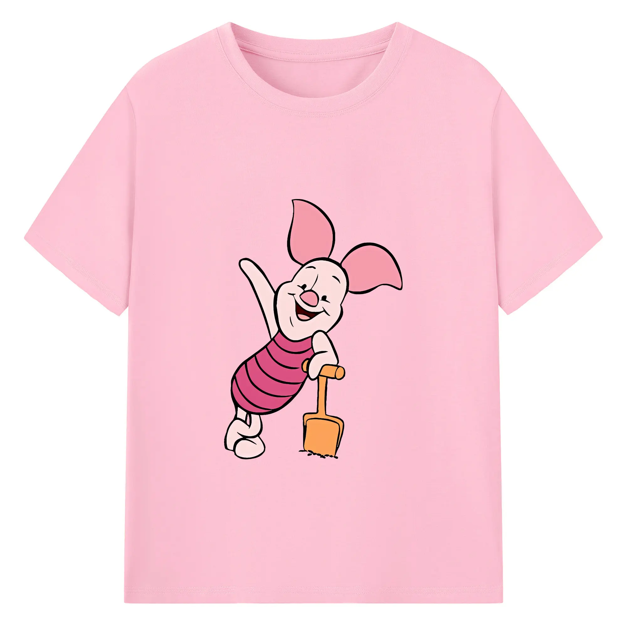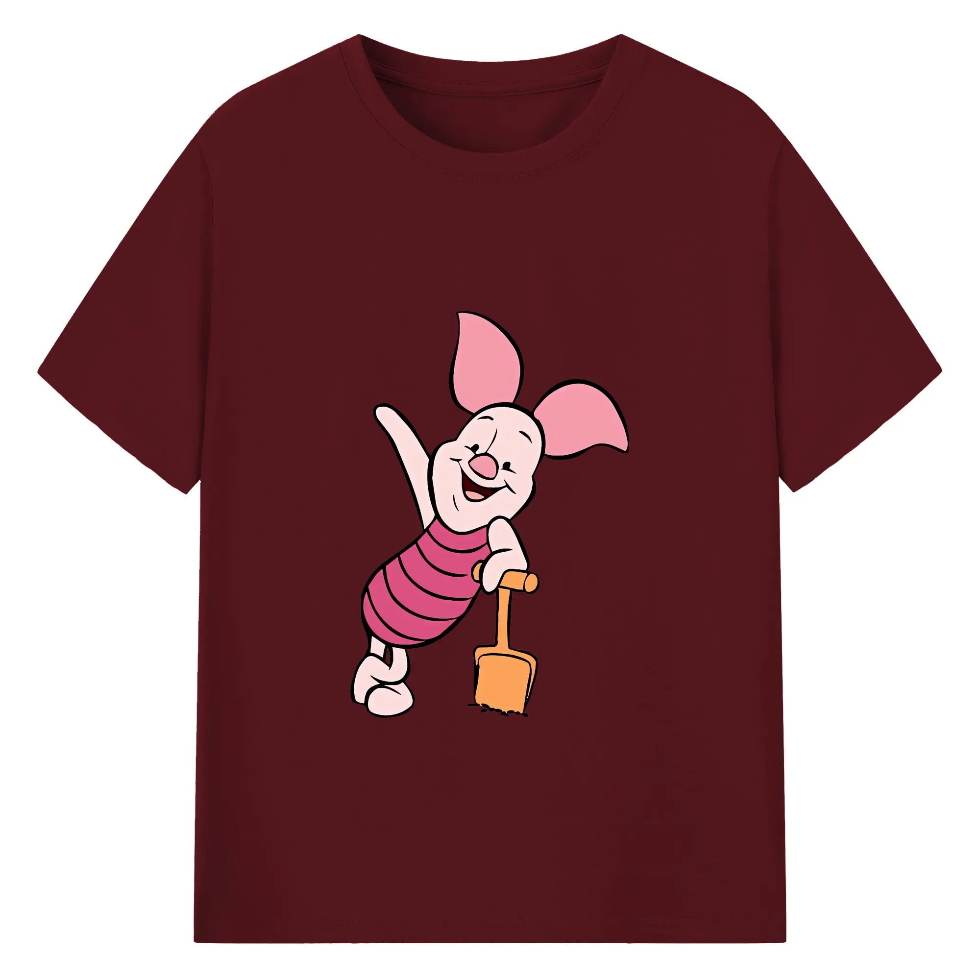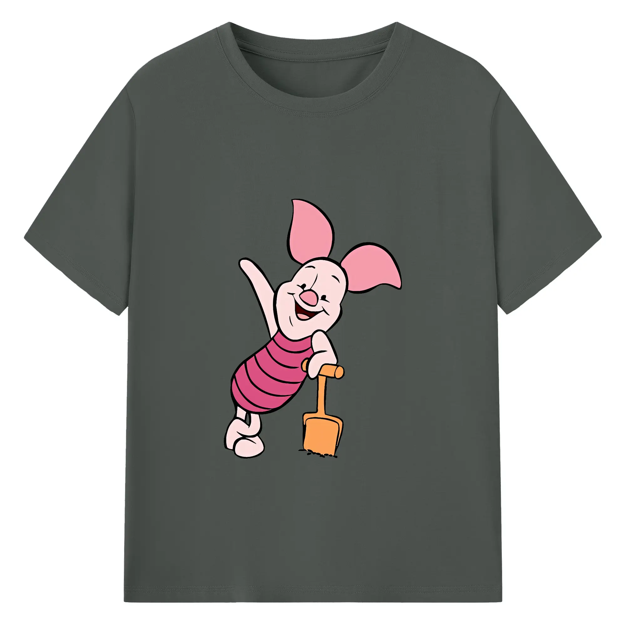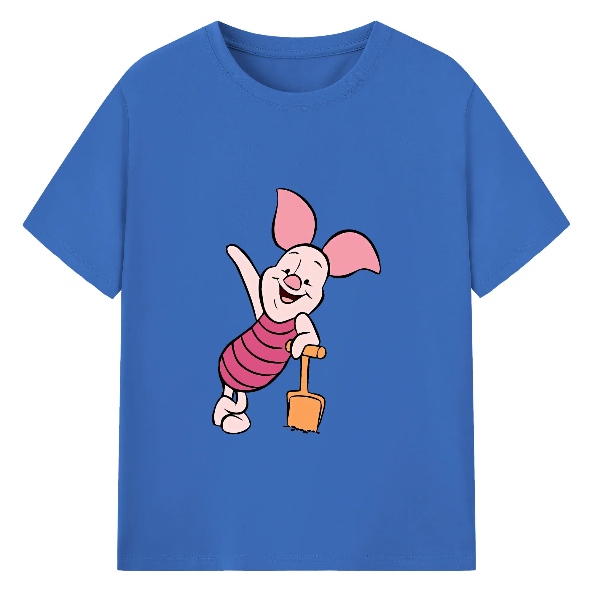 プーさん グッズ ピグレット - 綿100% 半袖Tシャツ ・ バックプリント ・ 快適 通気性 ・ 日常使い 散歩 スポーツ用