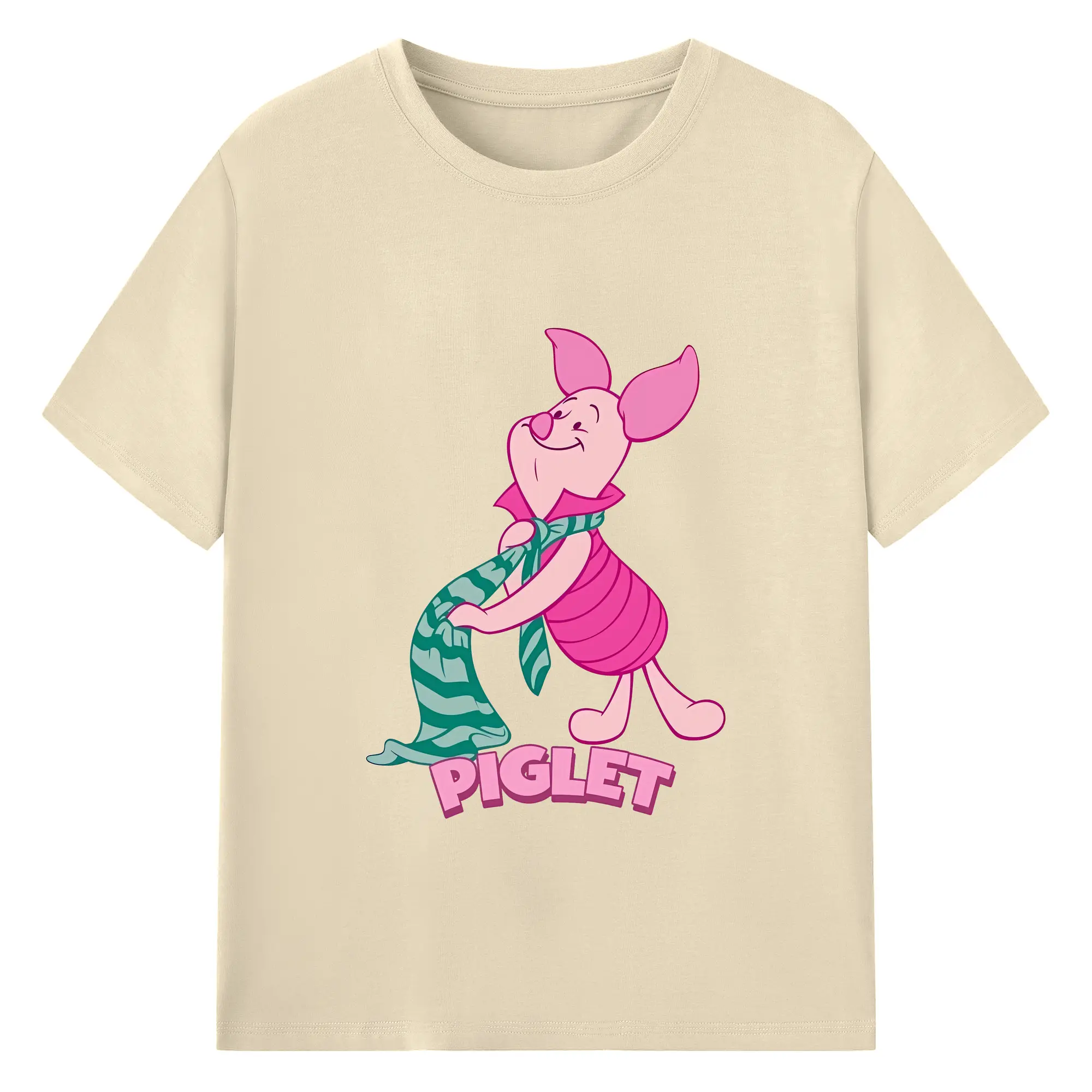 プーさん グッズ ピグレット - 綿100% ヴィンテージ風 半袖Tシャツ ・ フロントプリント ・ 柔らか肌触り ・ 通気性 快適 ・ スポーツ カジュアル 外出用