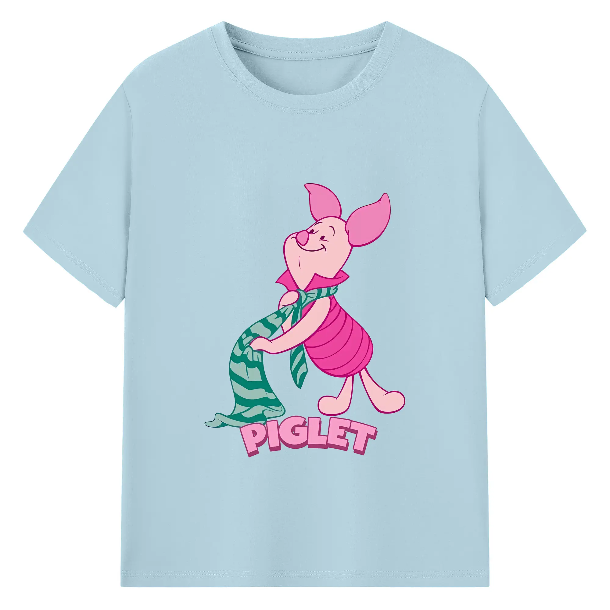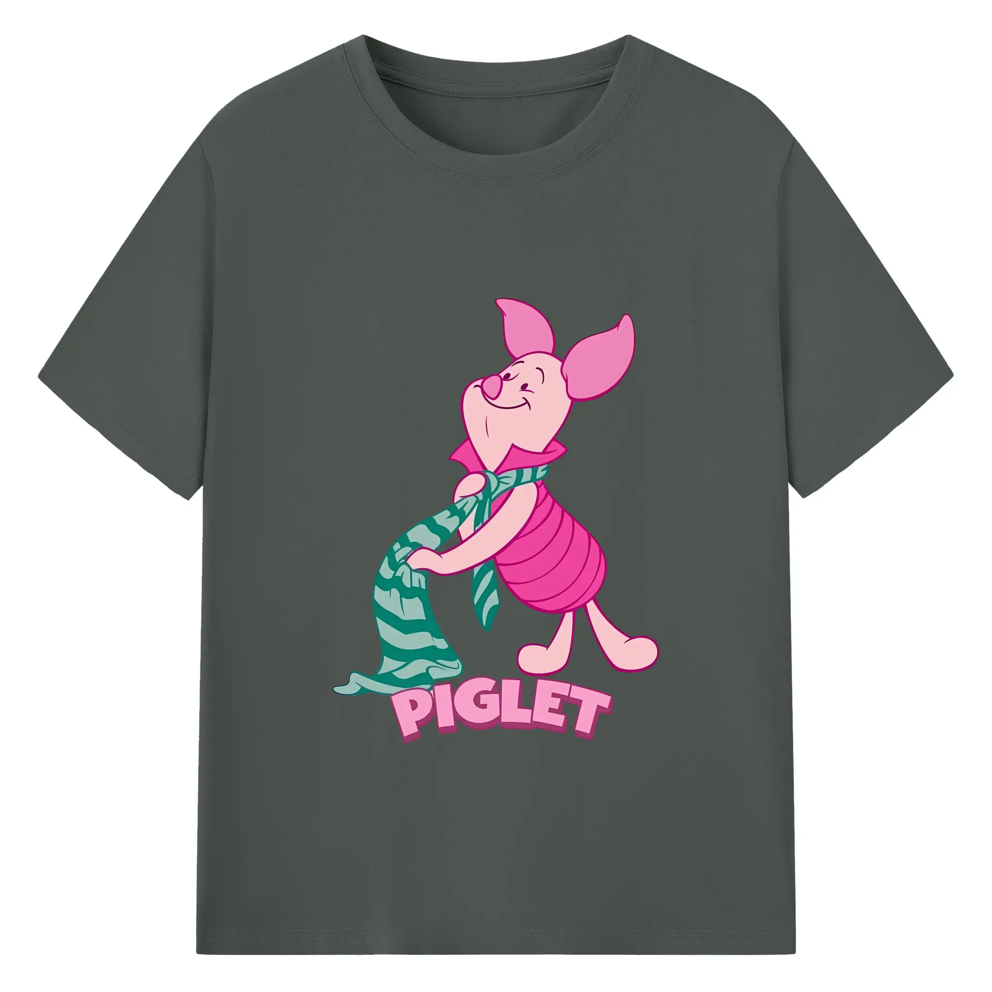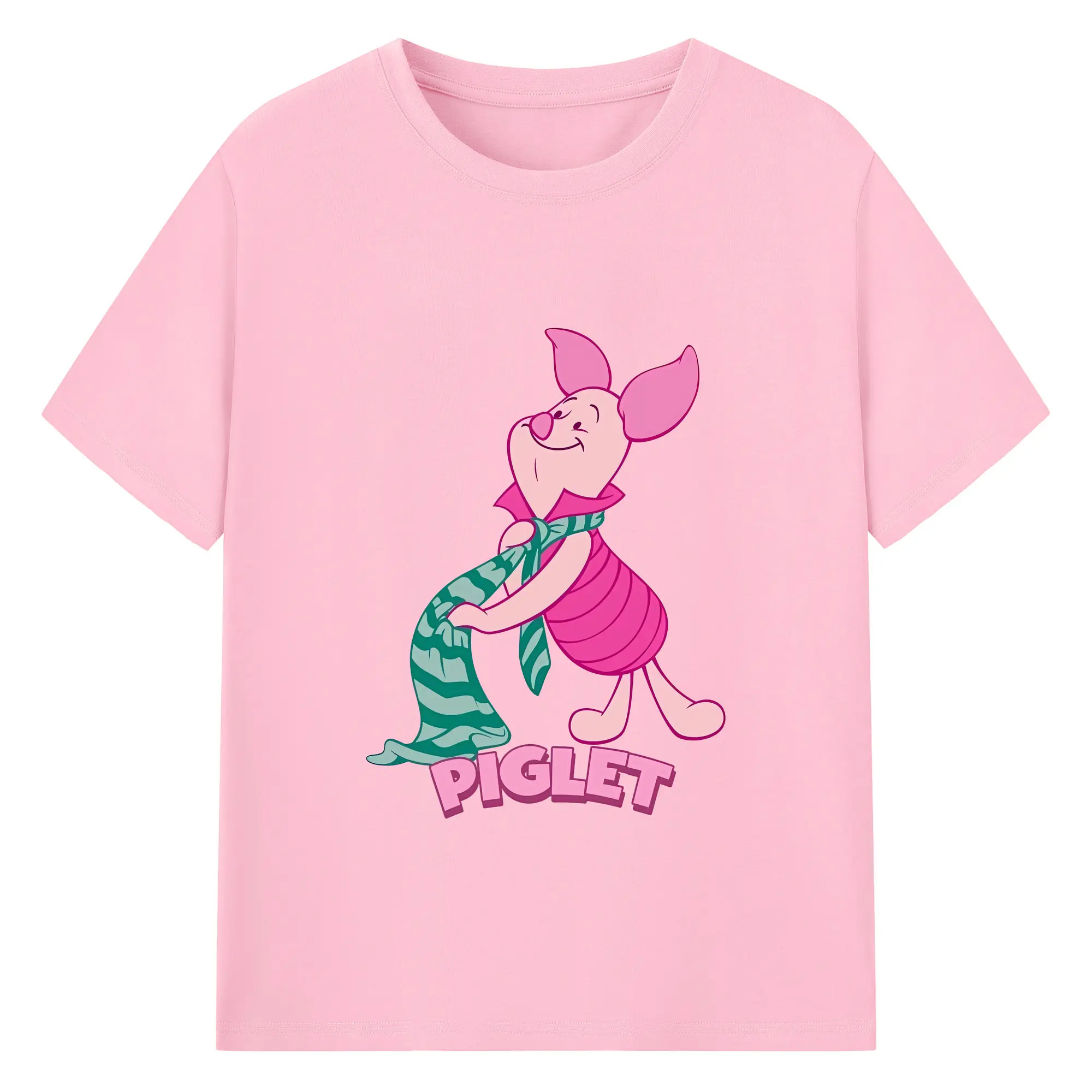 プーさん グッズ ピグレット - 綿100% 半袖Tシャツ ・ バックプリント ・ 快適 通気性 ・ 日常使い 散歩 スポーツ用