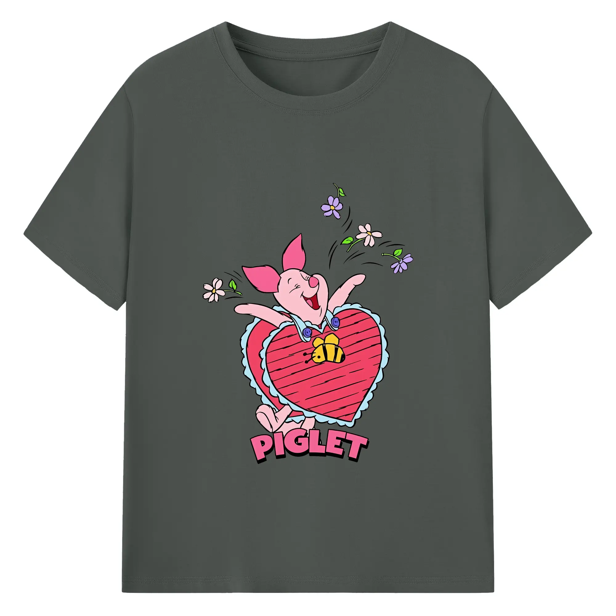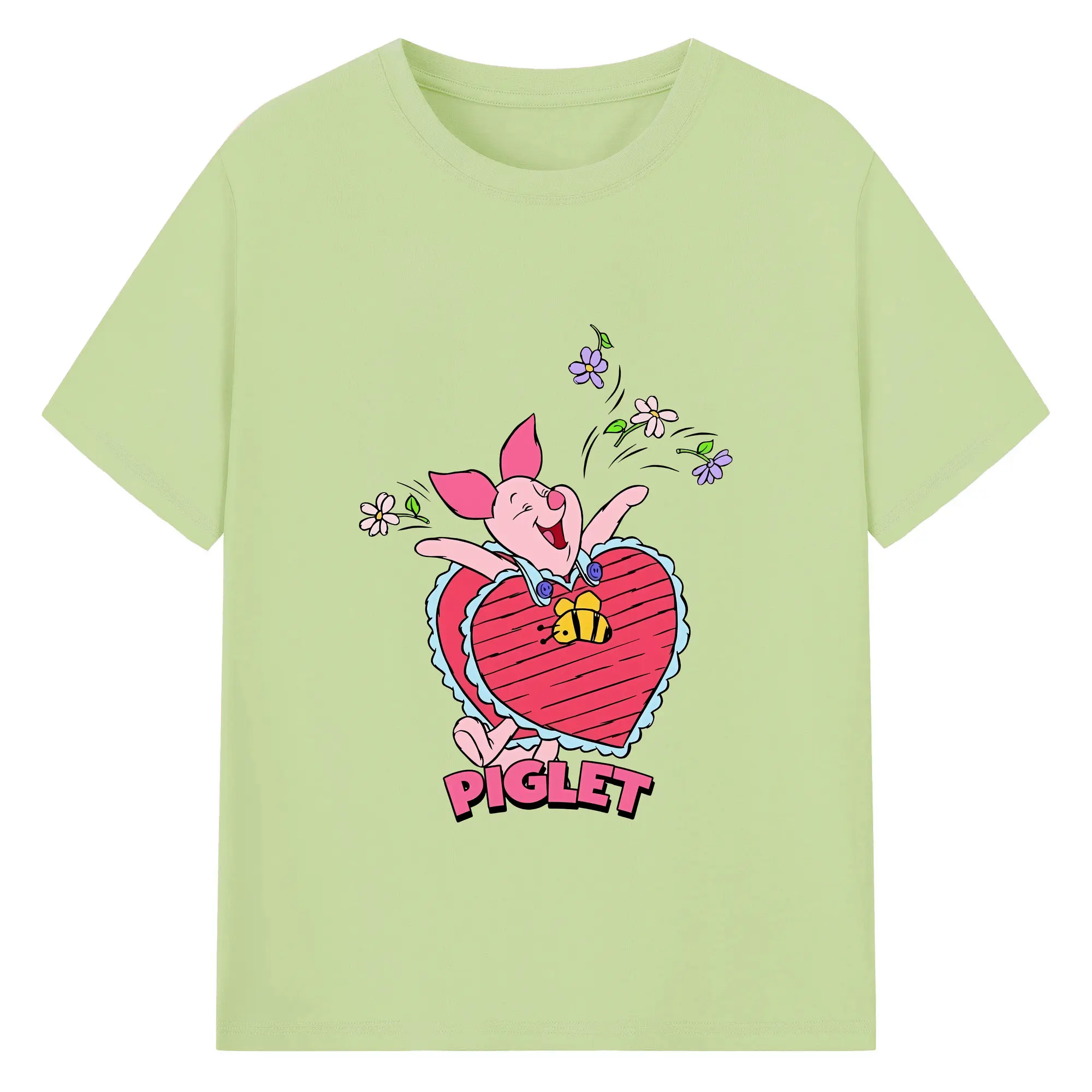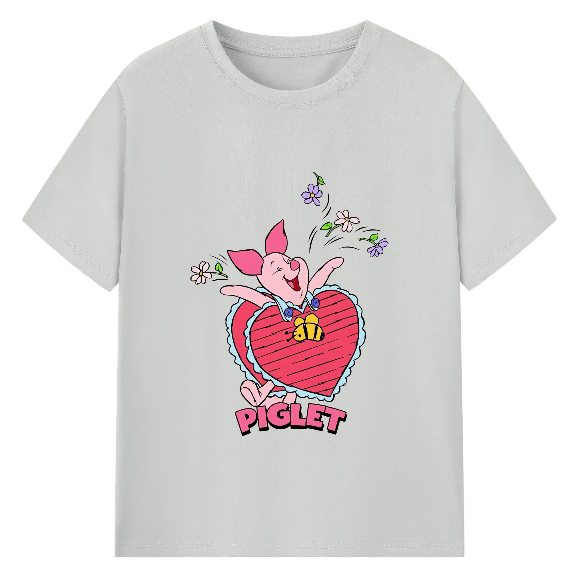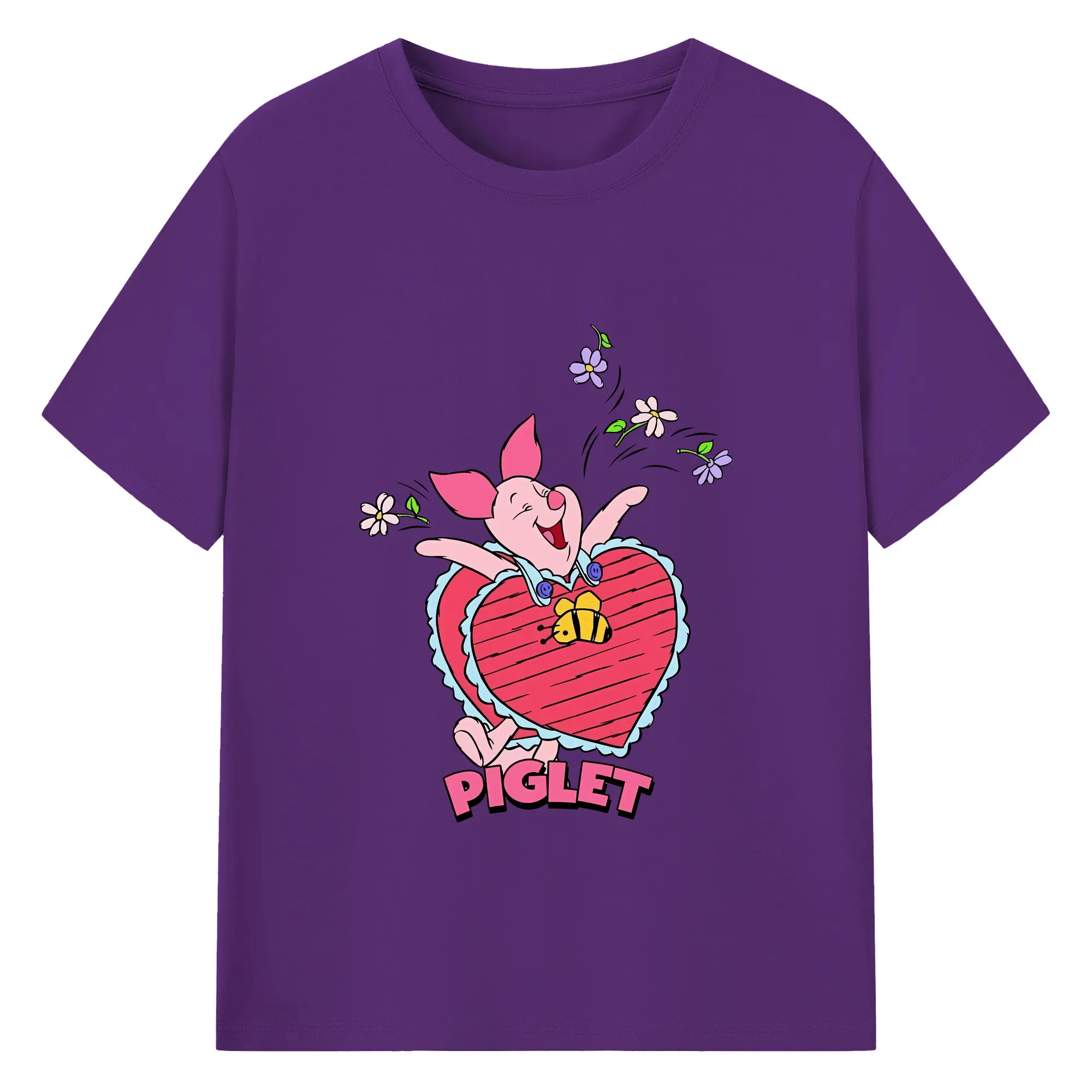 プーさん グッズ ピグレット - 綿100% 半袖Tシャツ ・ バックプリント ・ 快適 通気性 ・ 日常使い 散歩 スポーツ用