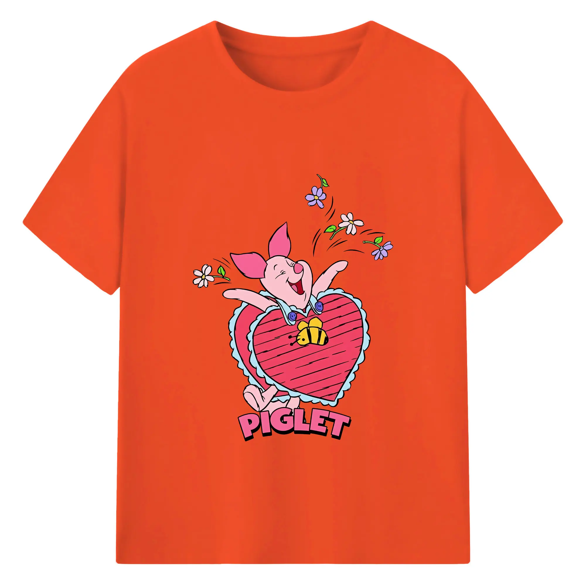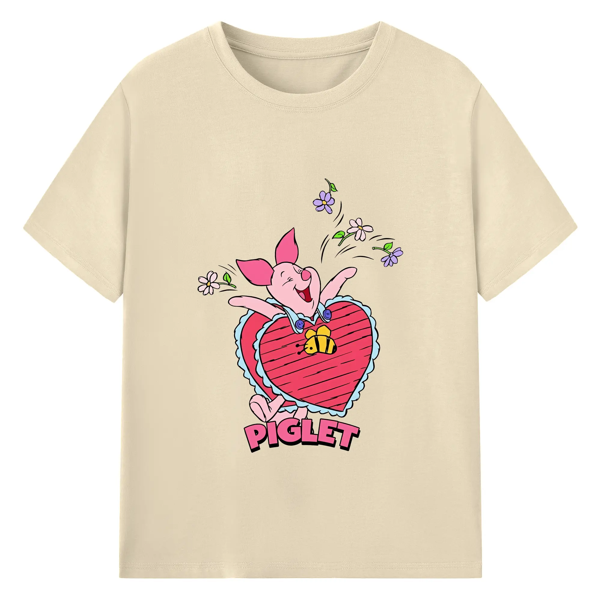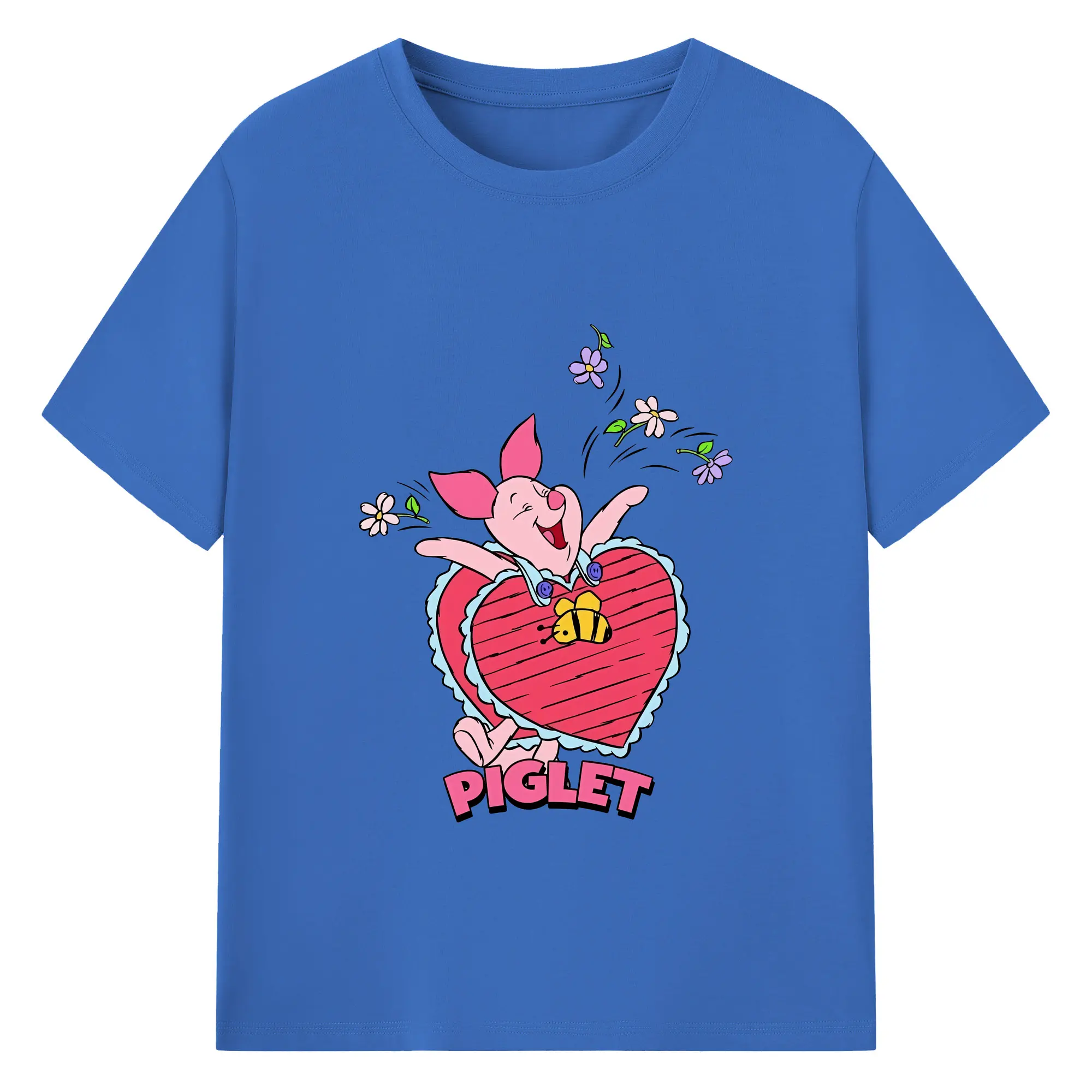 プーさん グッズ ピグレット - 綿100% 半袖Tシャツ ・ バックプリント ・ 快適 通気性 ・ 日常使い 散歩 スポーツ用