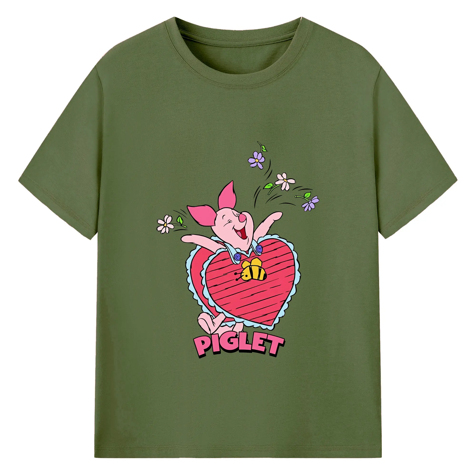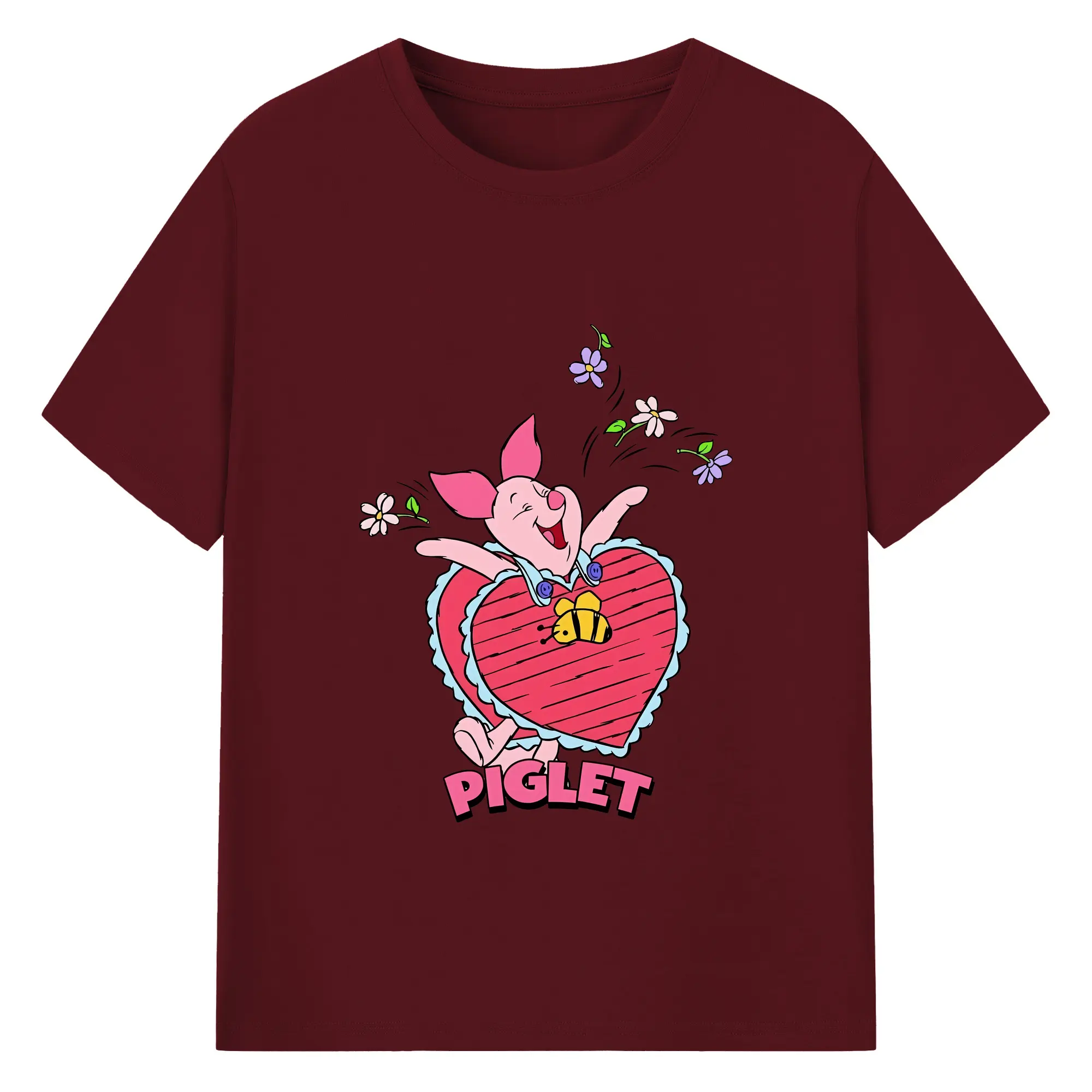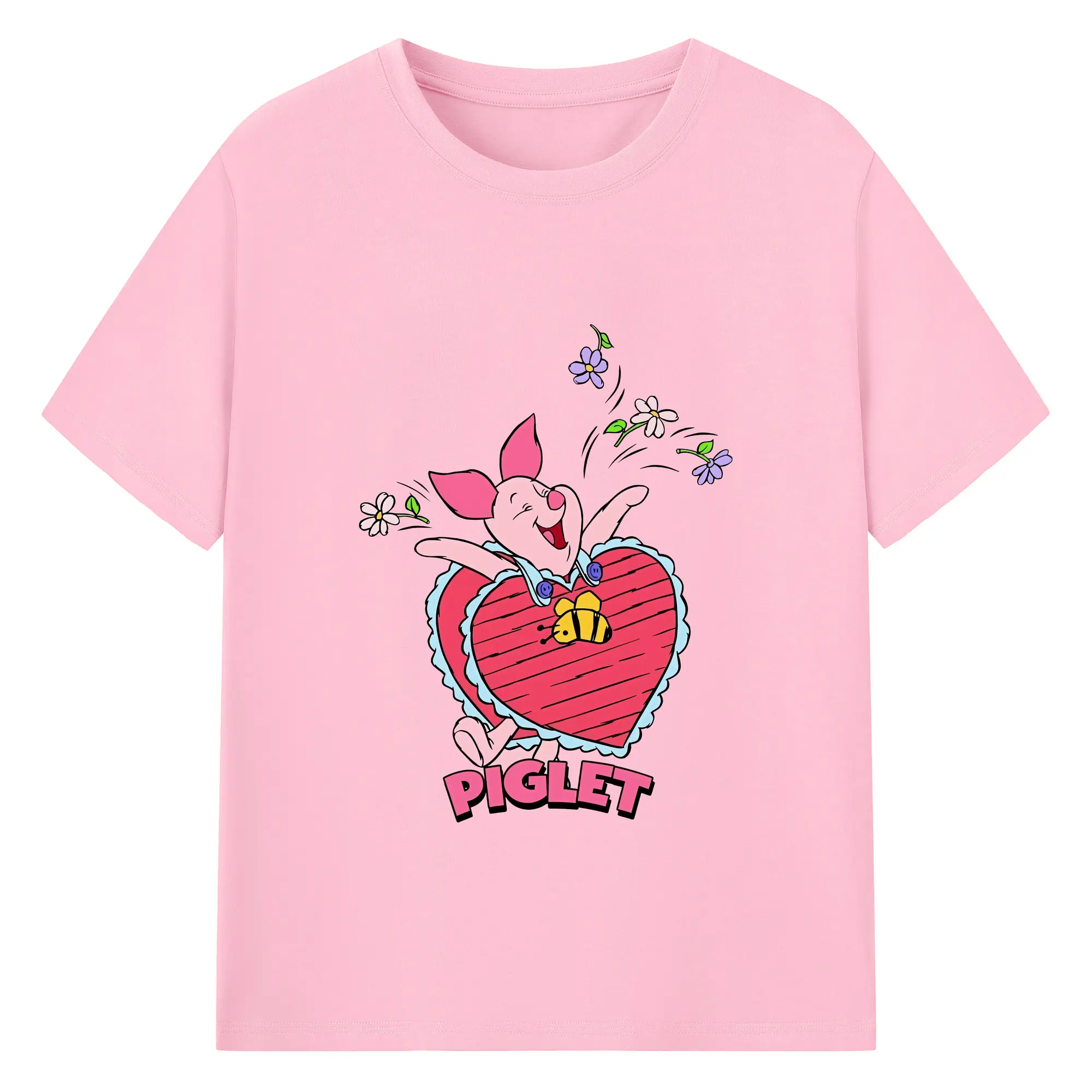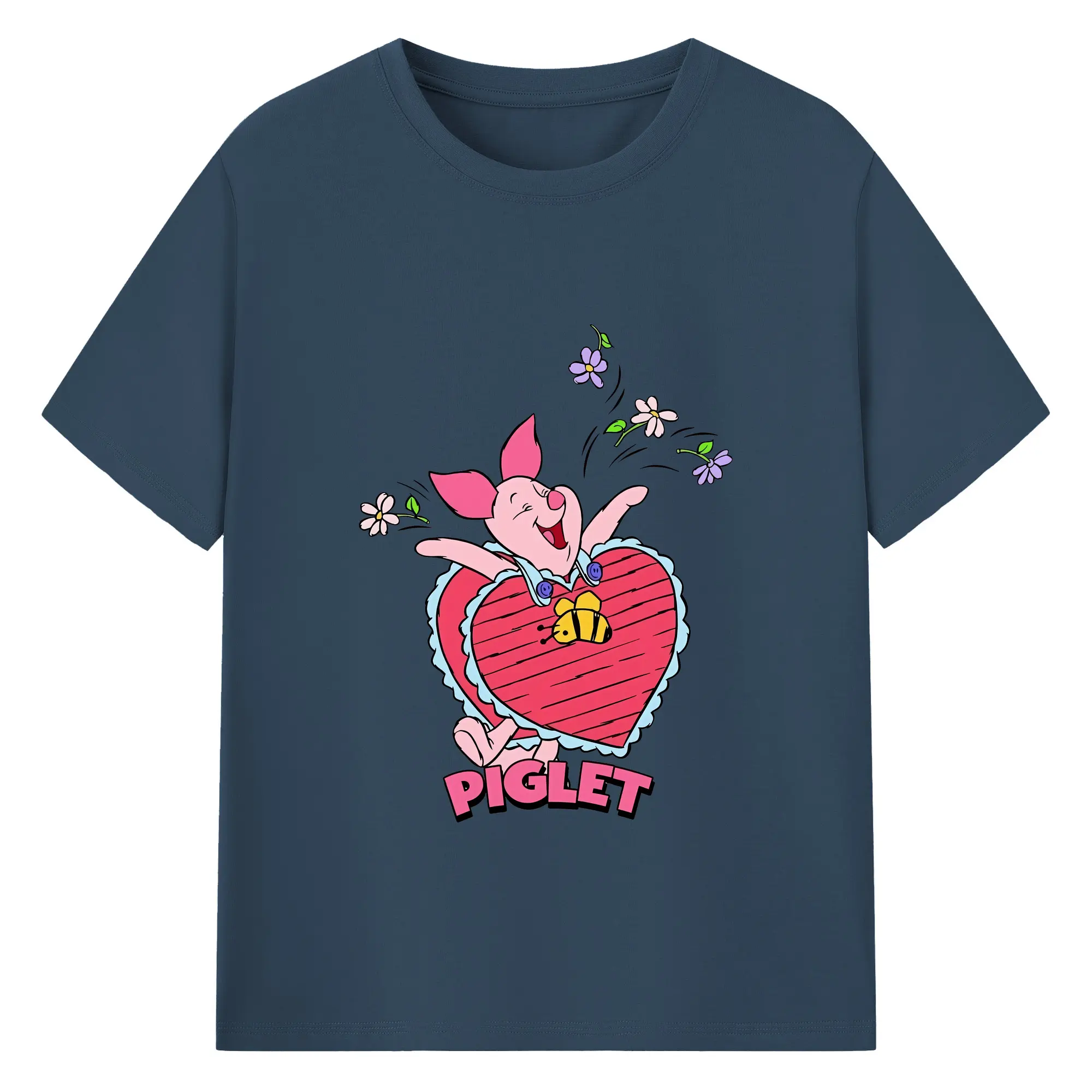 プーさん グッズ ピグレット - 綿100% 半袖Tシャツ ・ バックプリント ・ 快適 通気性 ・ 日常使い 散歩 スポーツ用