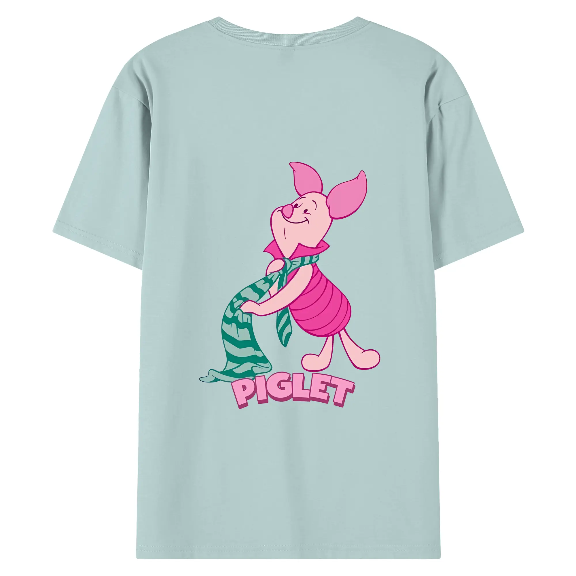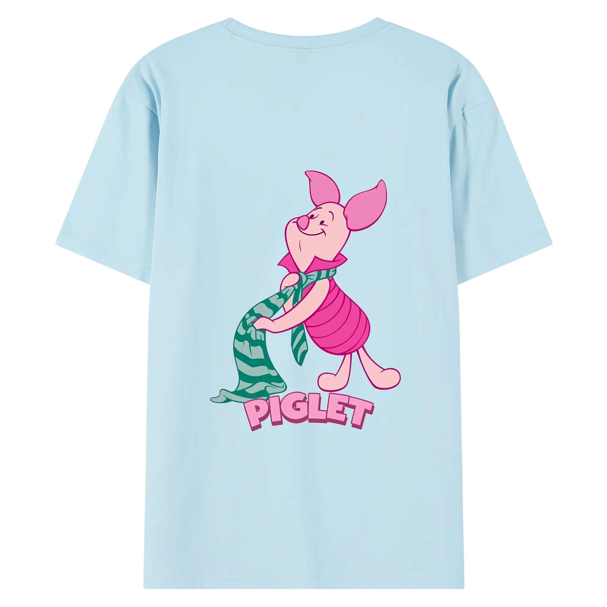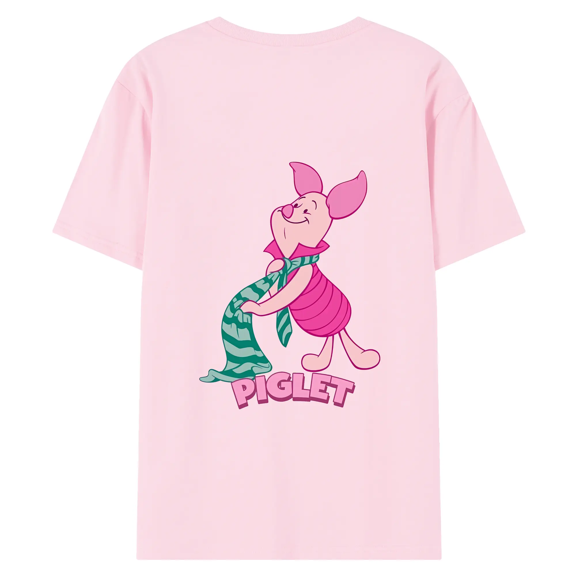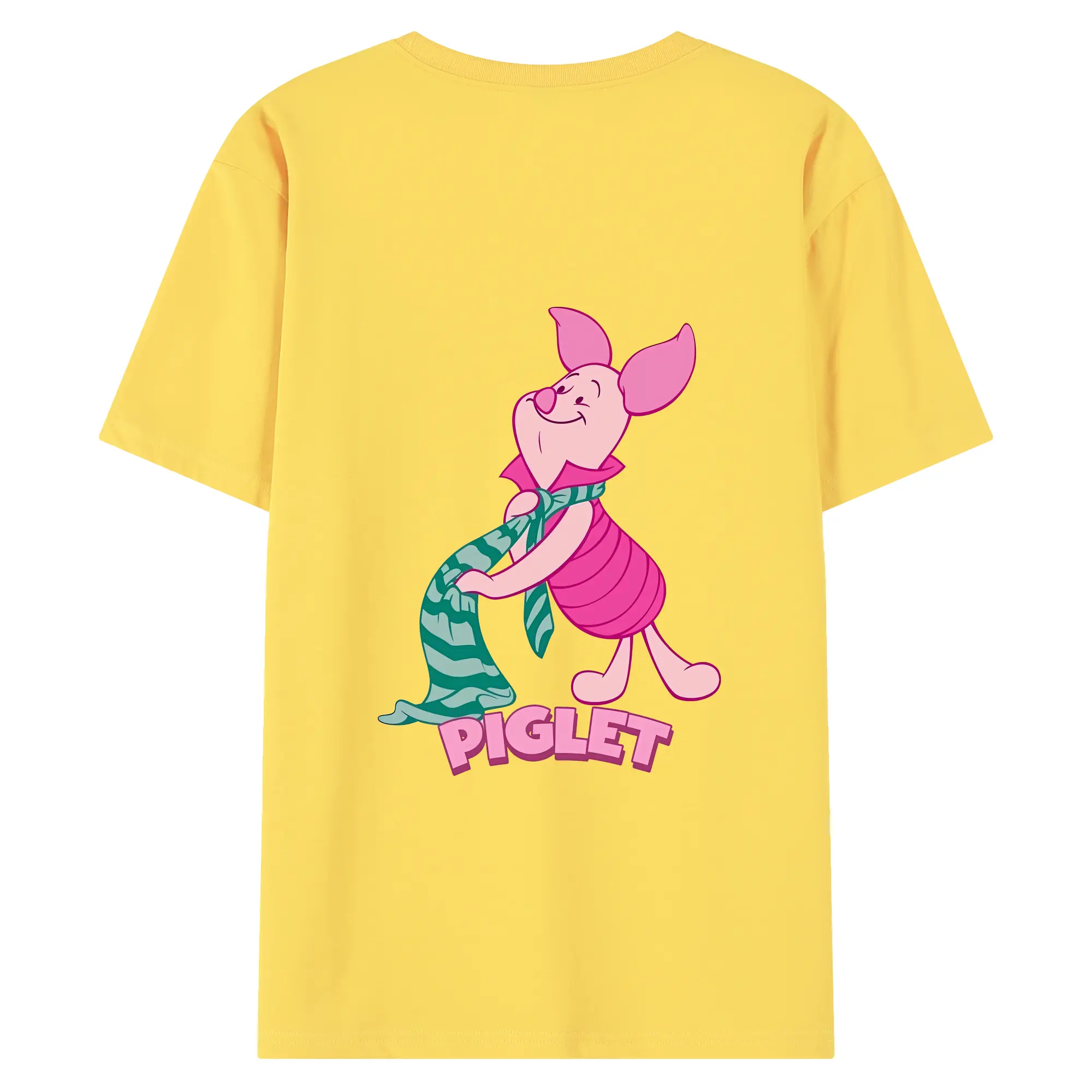 プーさん グッズ ピグレット - 綿100% 半袖Tシャツ ・ フロントプリント ・ 快適 通気性 ・ 日常使い 散歩 スポーツ用