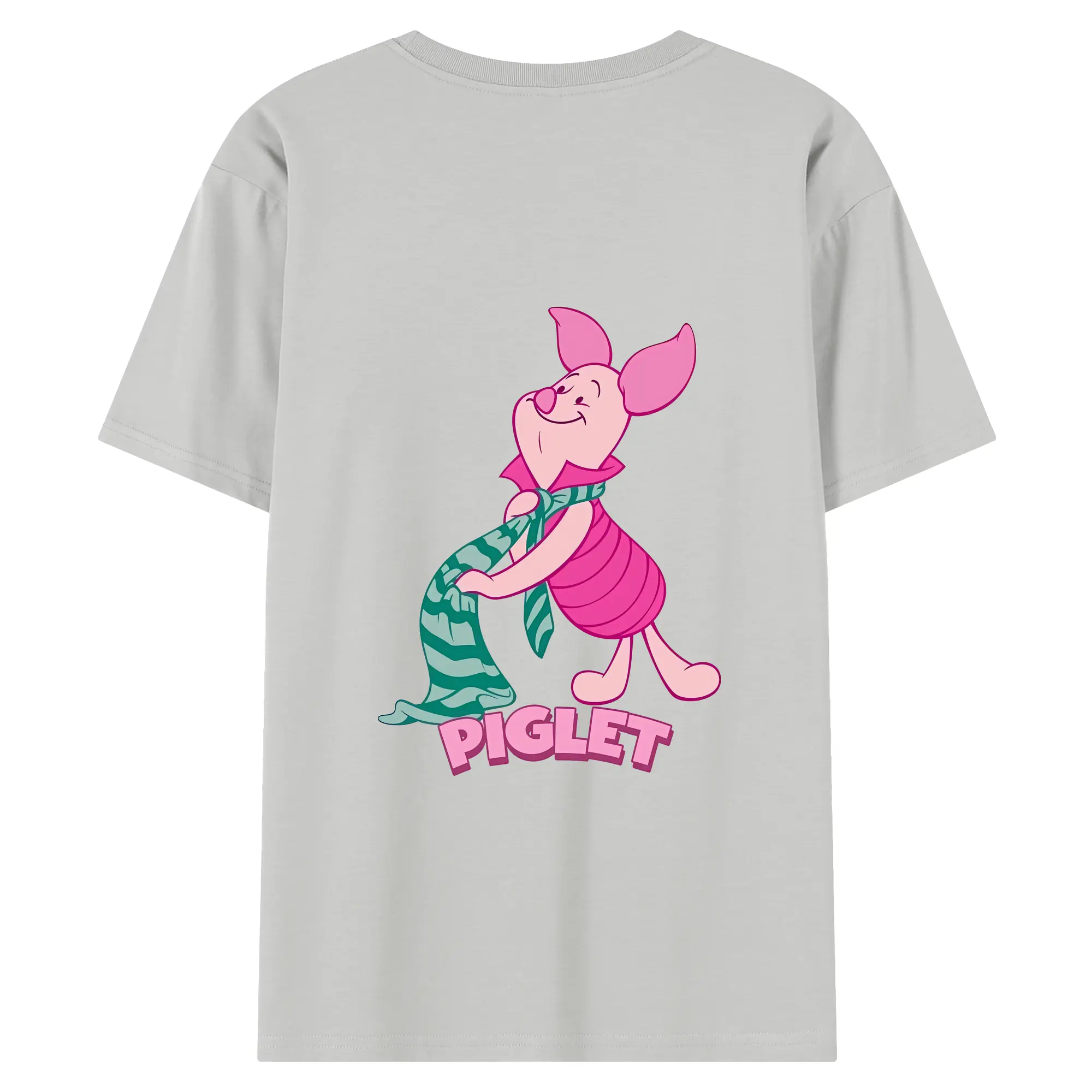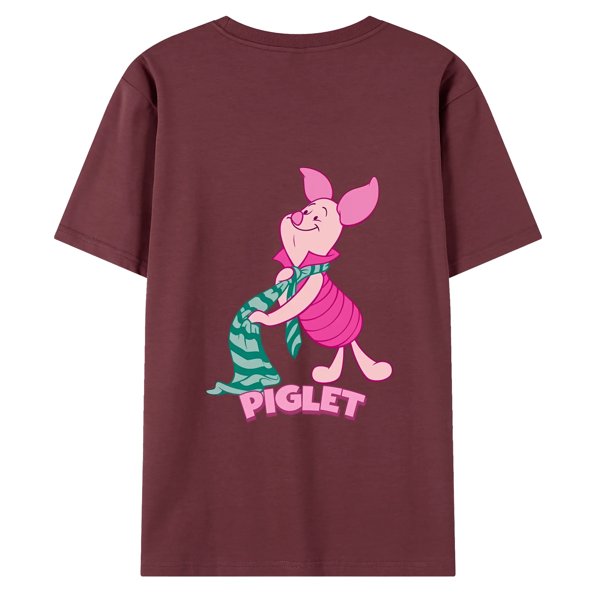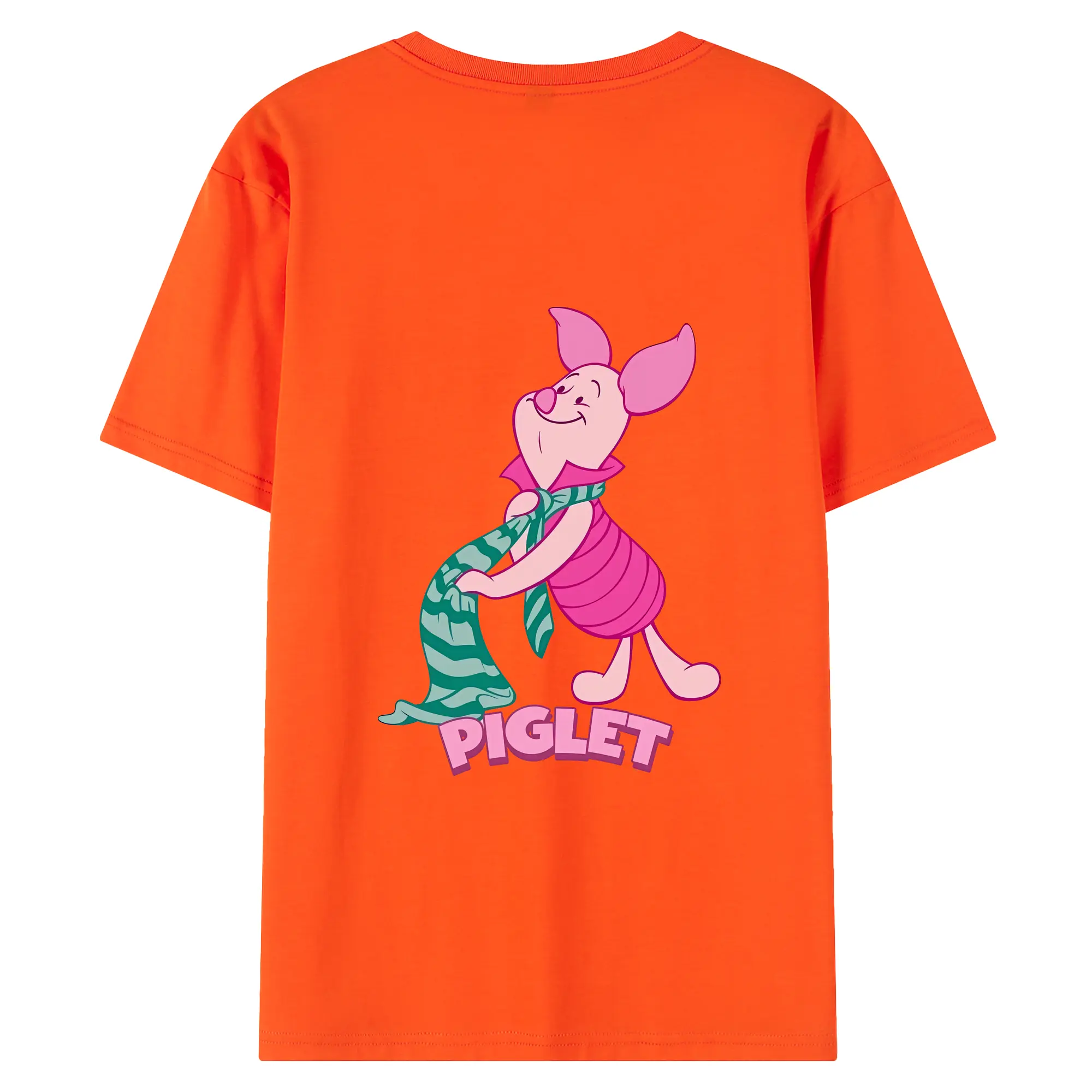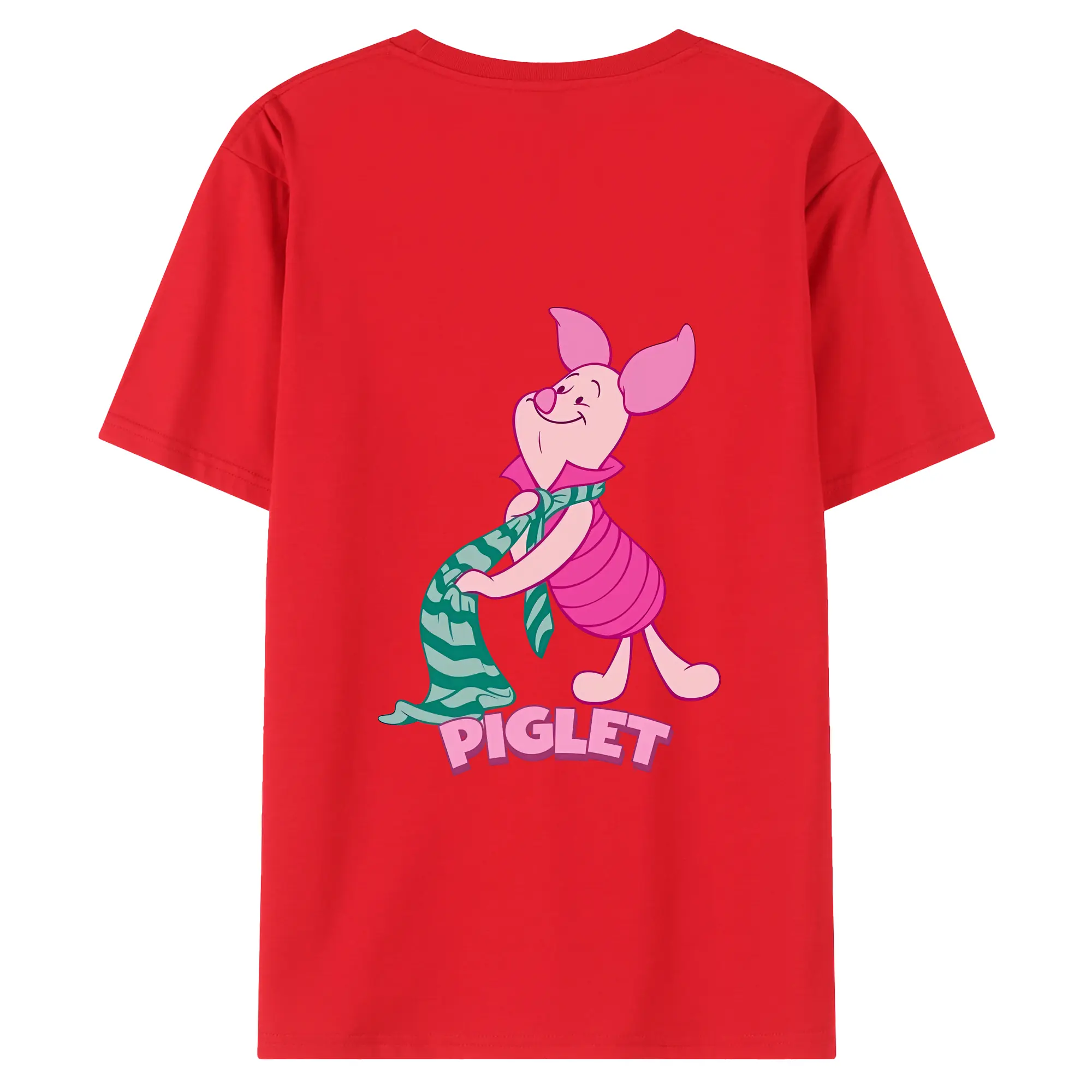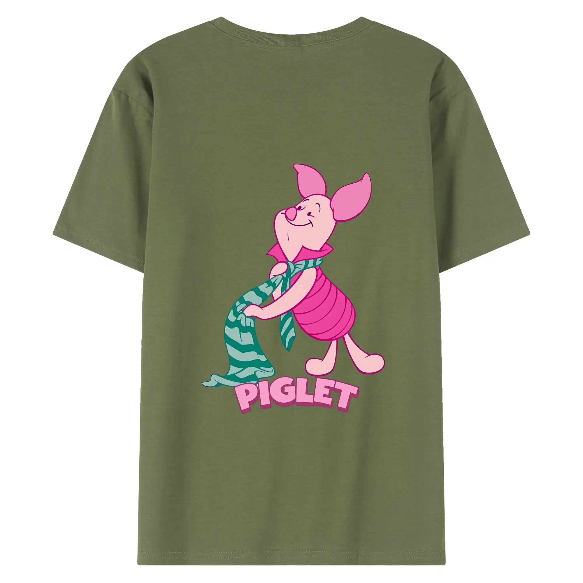 プーさん グッズ ピグレット - 綿100% 半袖Tシャツ ・ フロントプリント ・ 快適 通気性 ・ 日常使い 散歩 スポーツ用