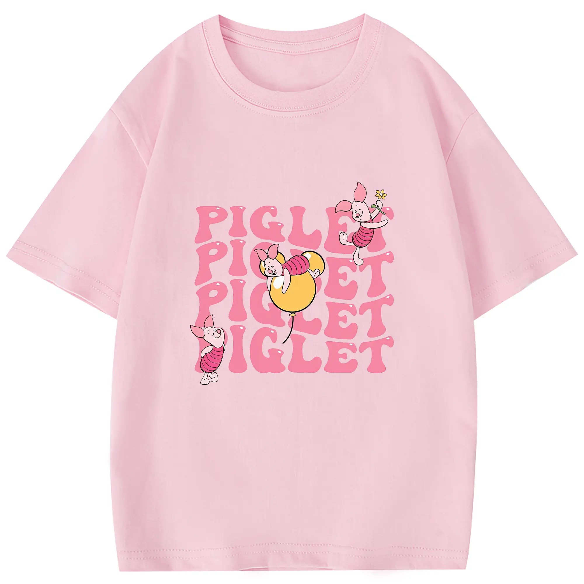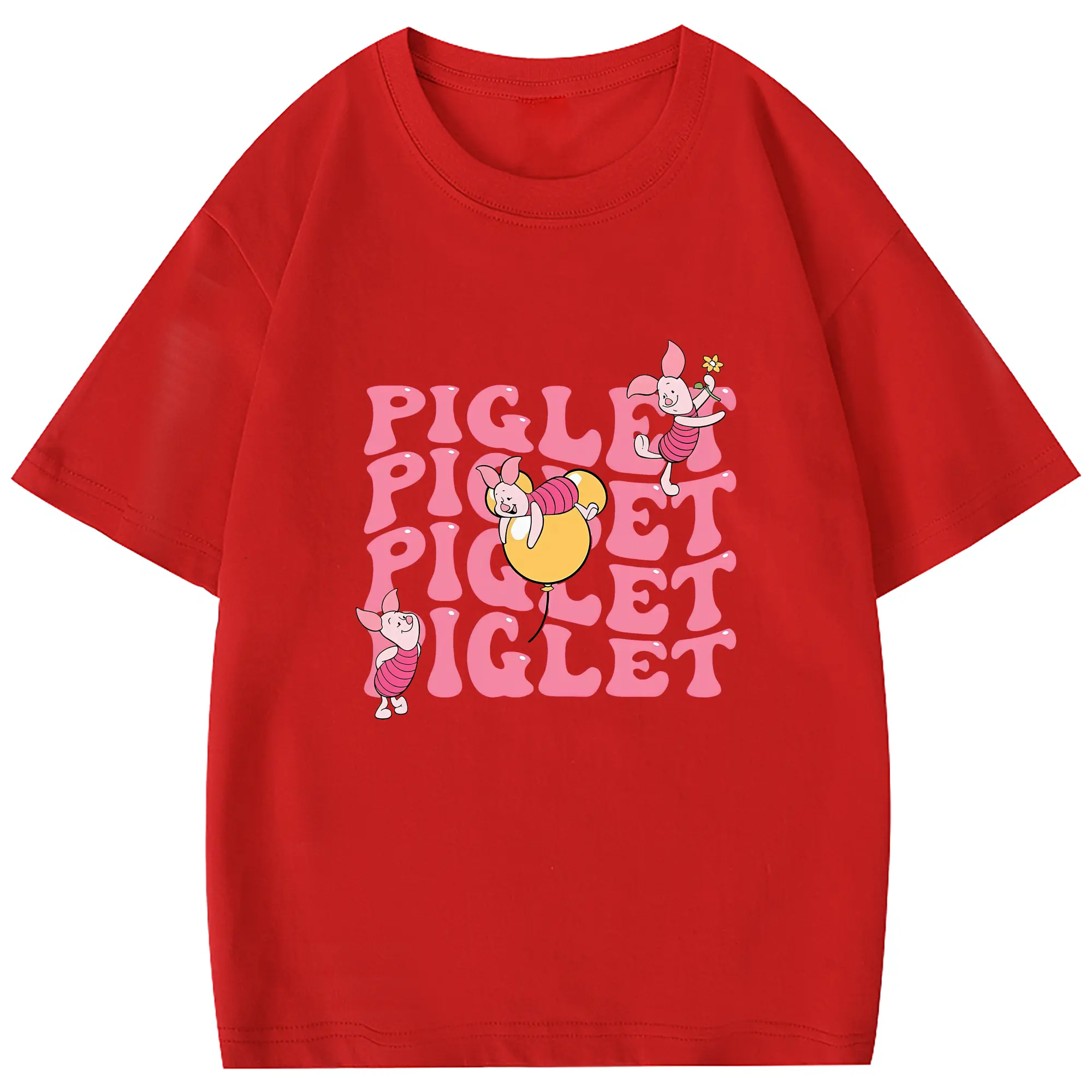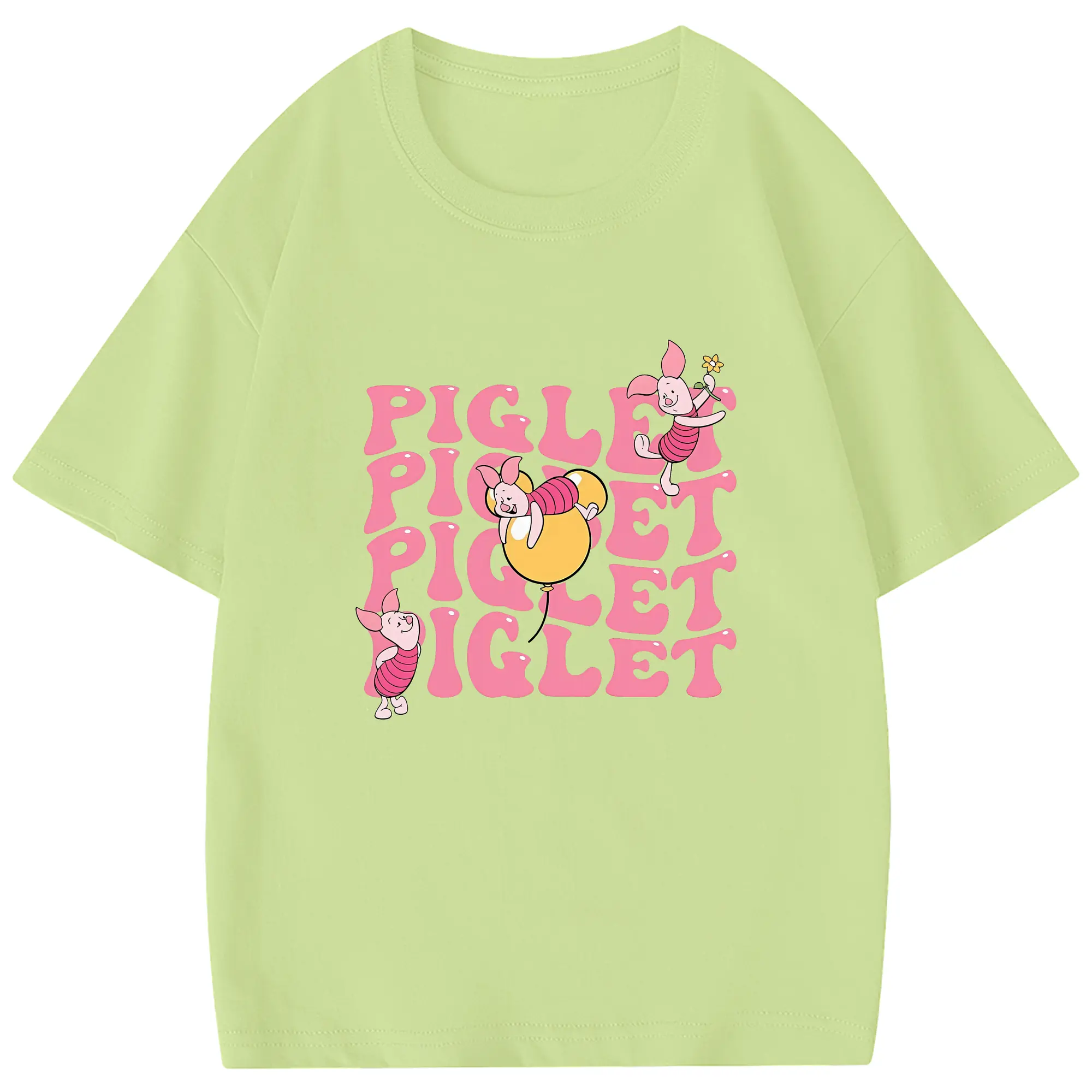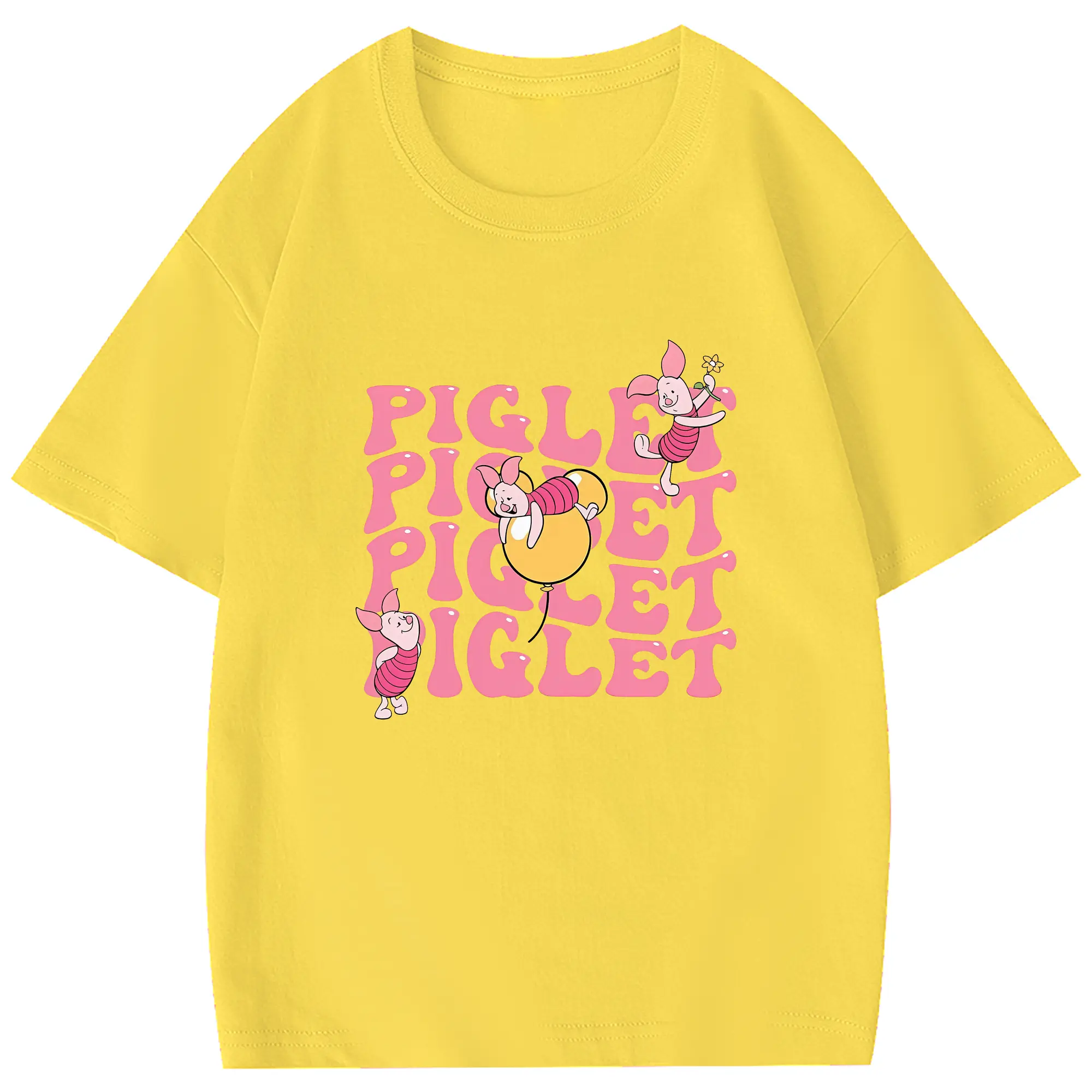 プーさん グッズ ピグレット - 綿100% 半袖Tシャツ ・ フロントプリント ・ 快適 通気性 ・ 日常使い 散歩 スポーツ用