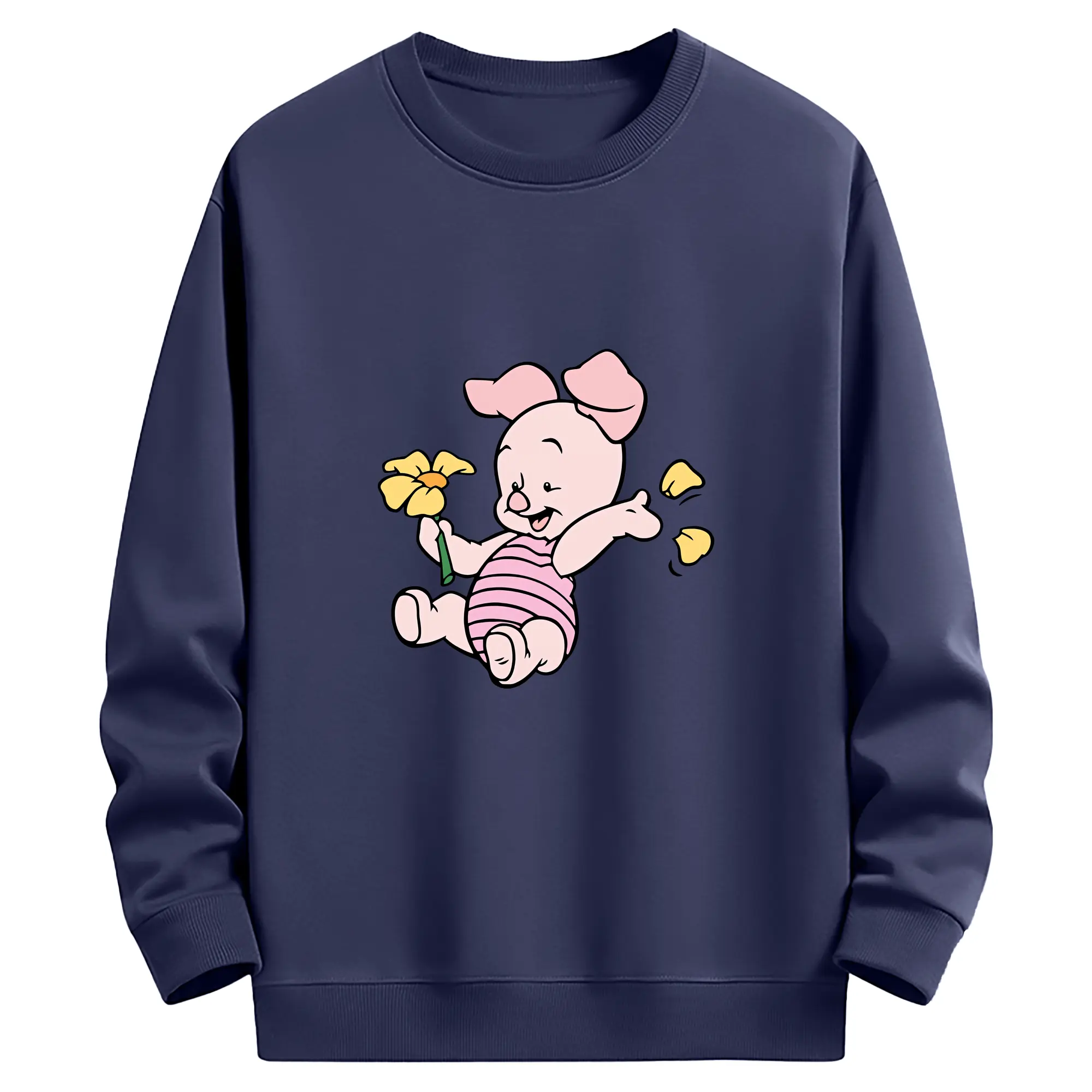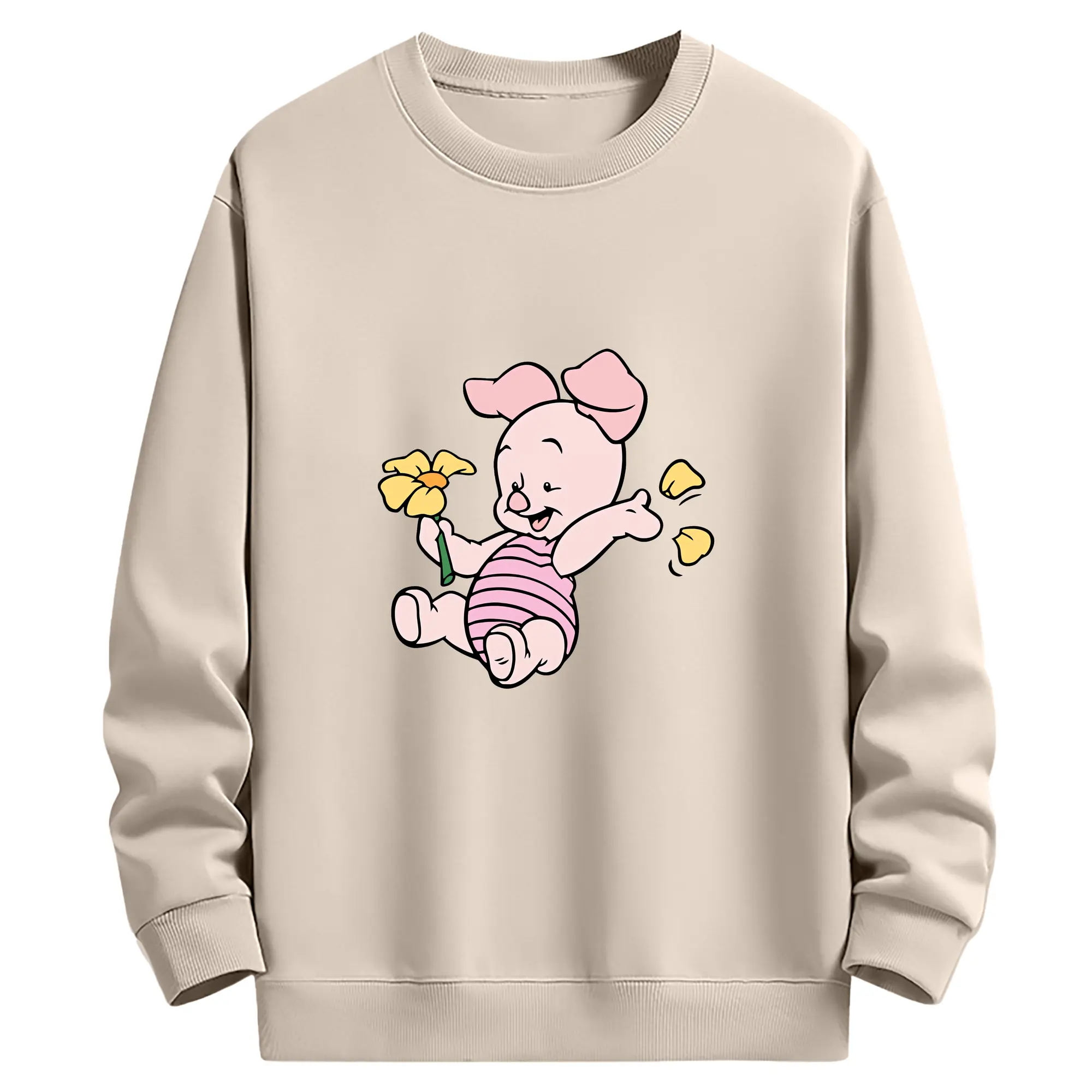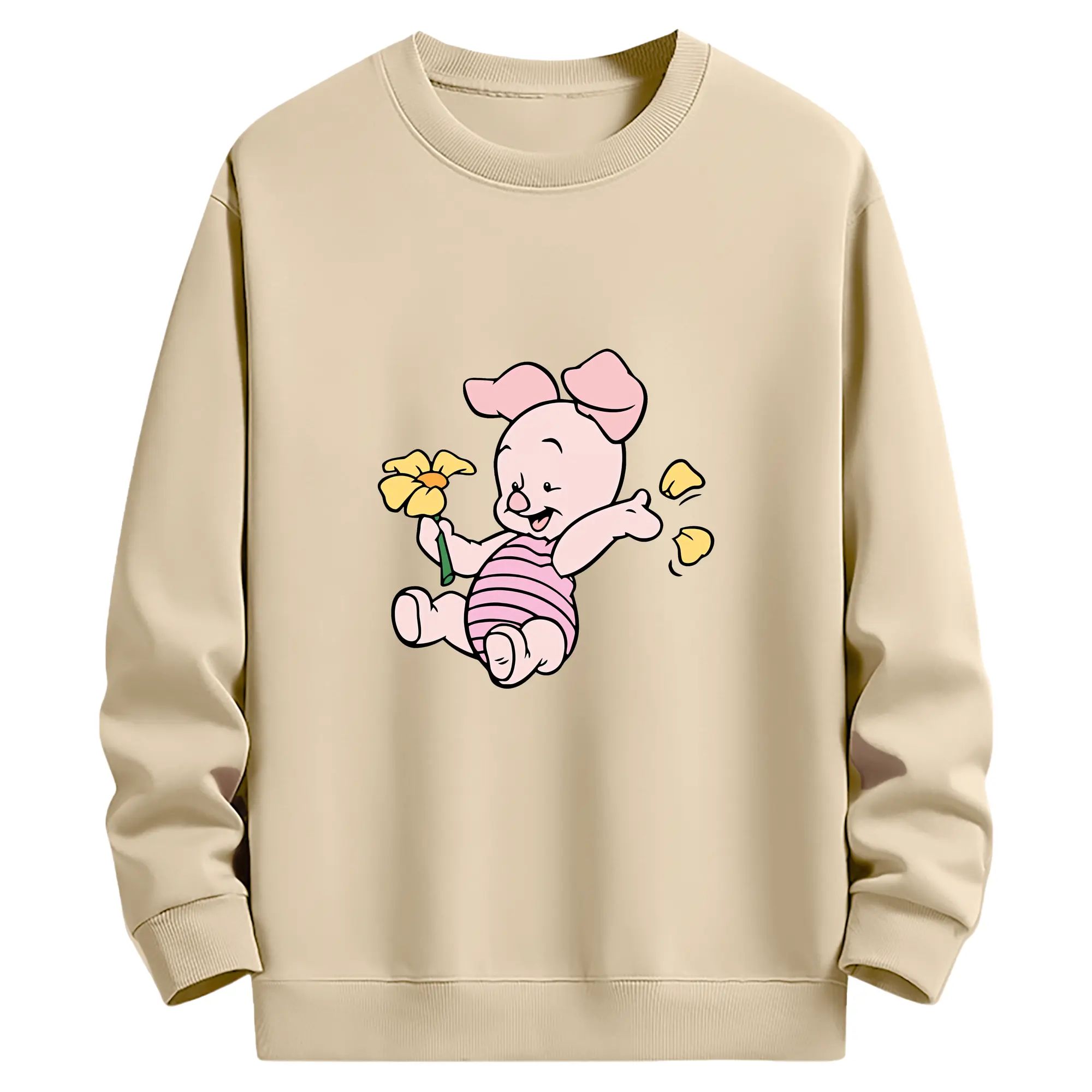 プーさん グッズ ピグレット - 薄手 クルーネック スウェット 裏毛260g · ポリエステル 春秋向け カジュアル 男女兼用 · トレーナー デイリー スポーツ 散歩に最適